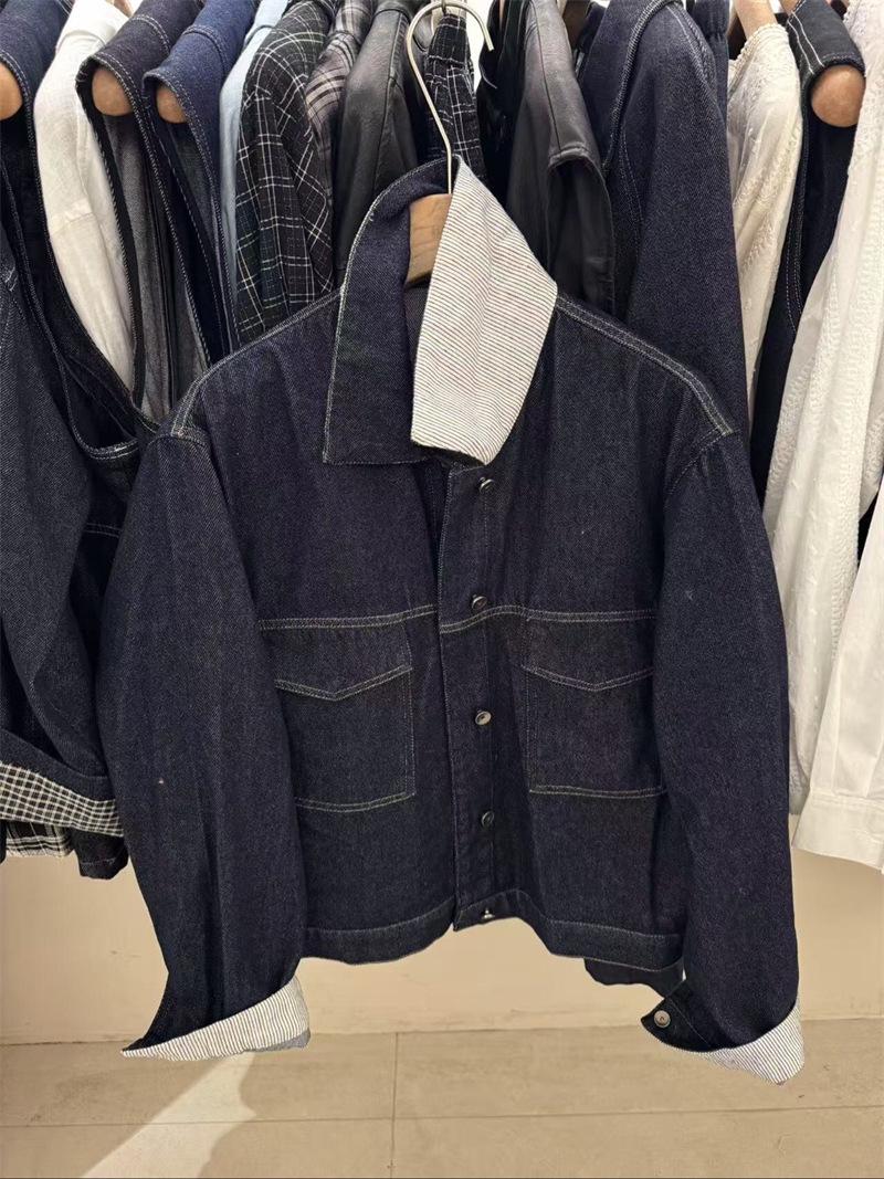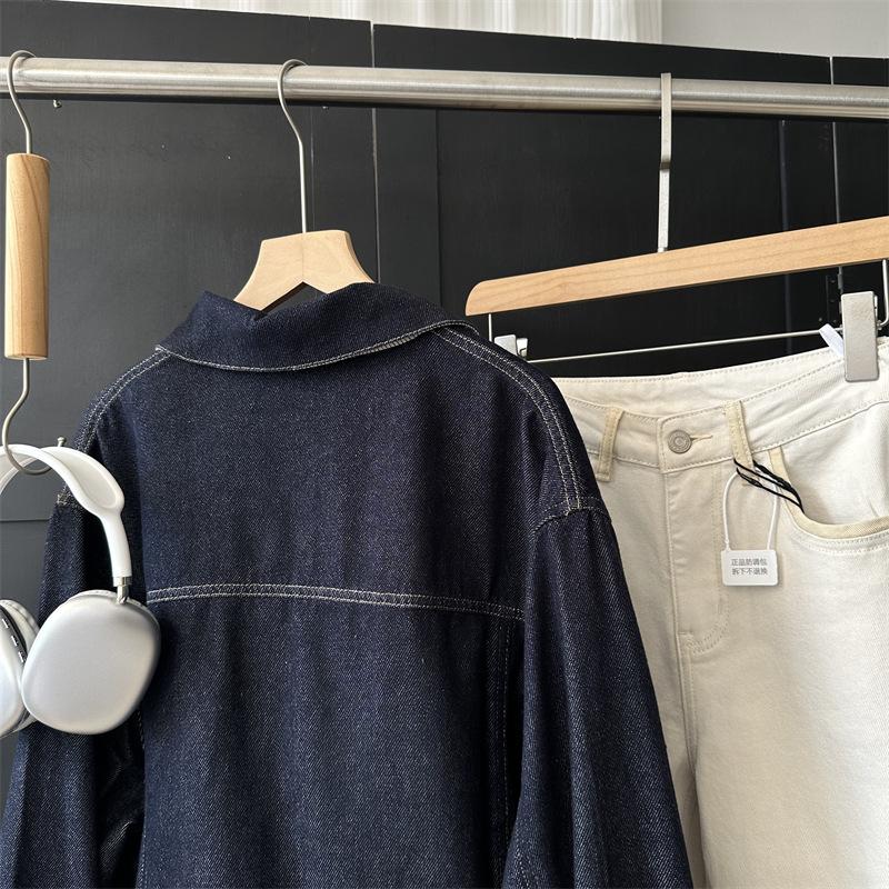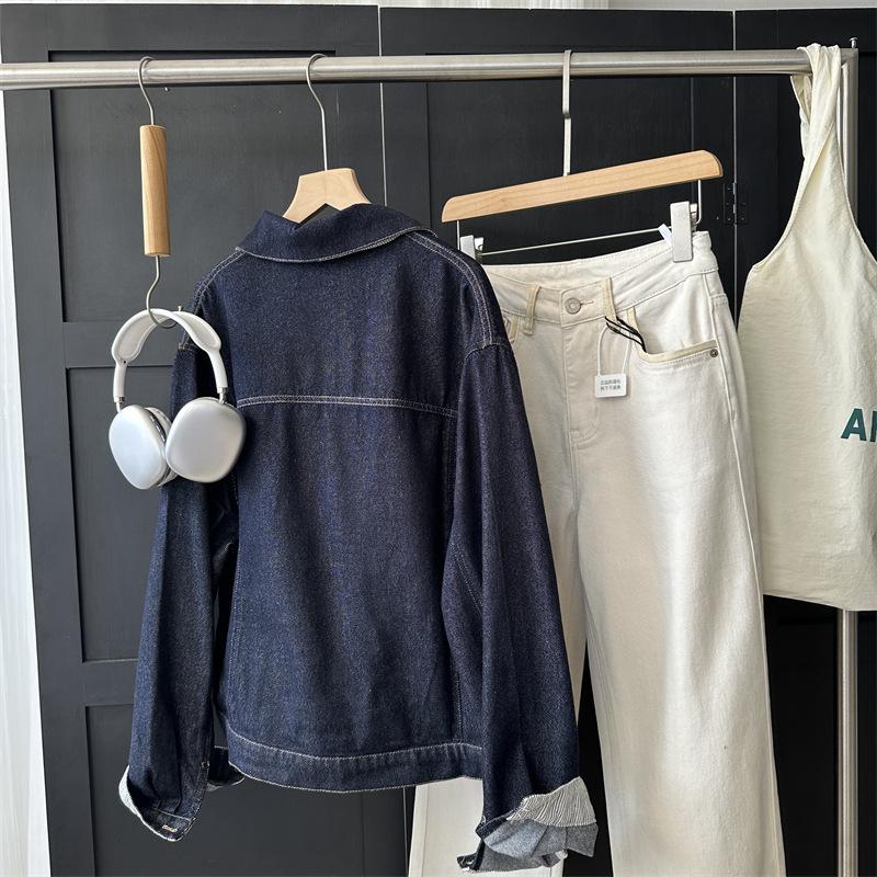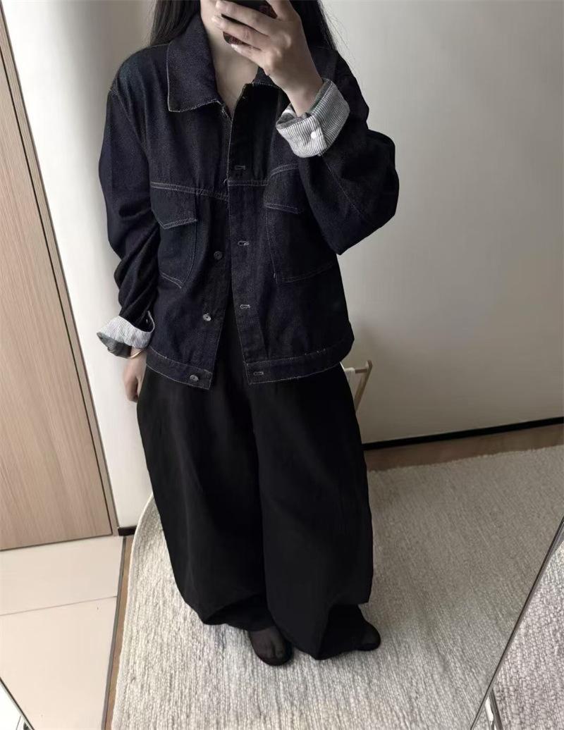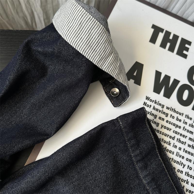 Chaqueta corta básica de mezclilla versátil estilo coreano para mujer, patchwork de cuadros verticales, nueva chaqueta abrigo adelgazante casual para primavera y otoño