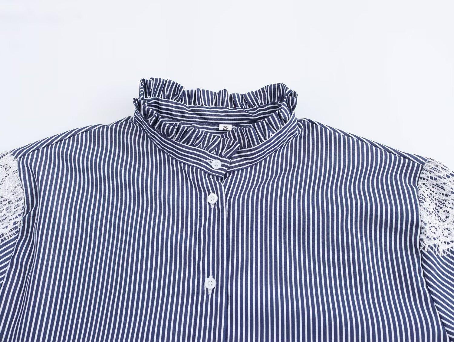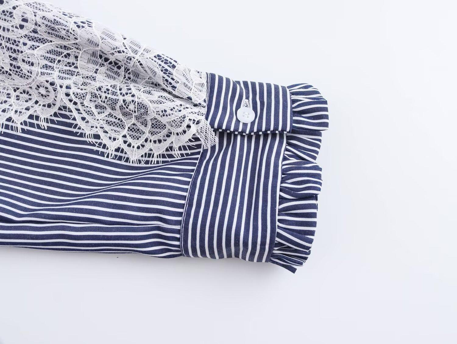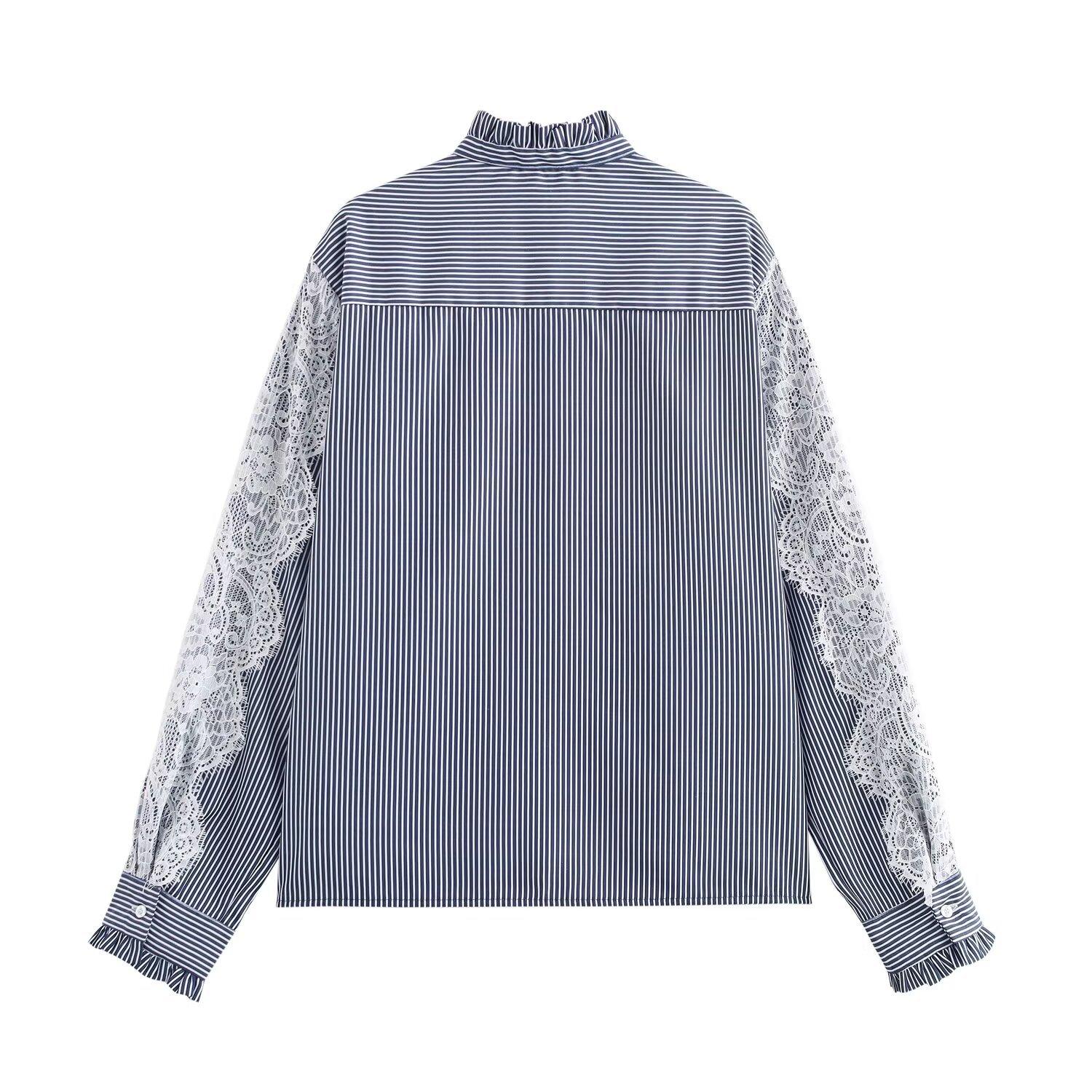 Ropa de Otoño para Mujer 2024 Nuevo Estilo Europeo y Americano Moda Simple Versátil Encaje Moda Camisa a Rayas