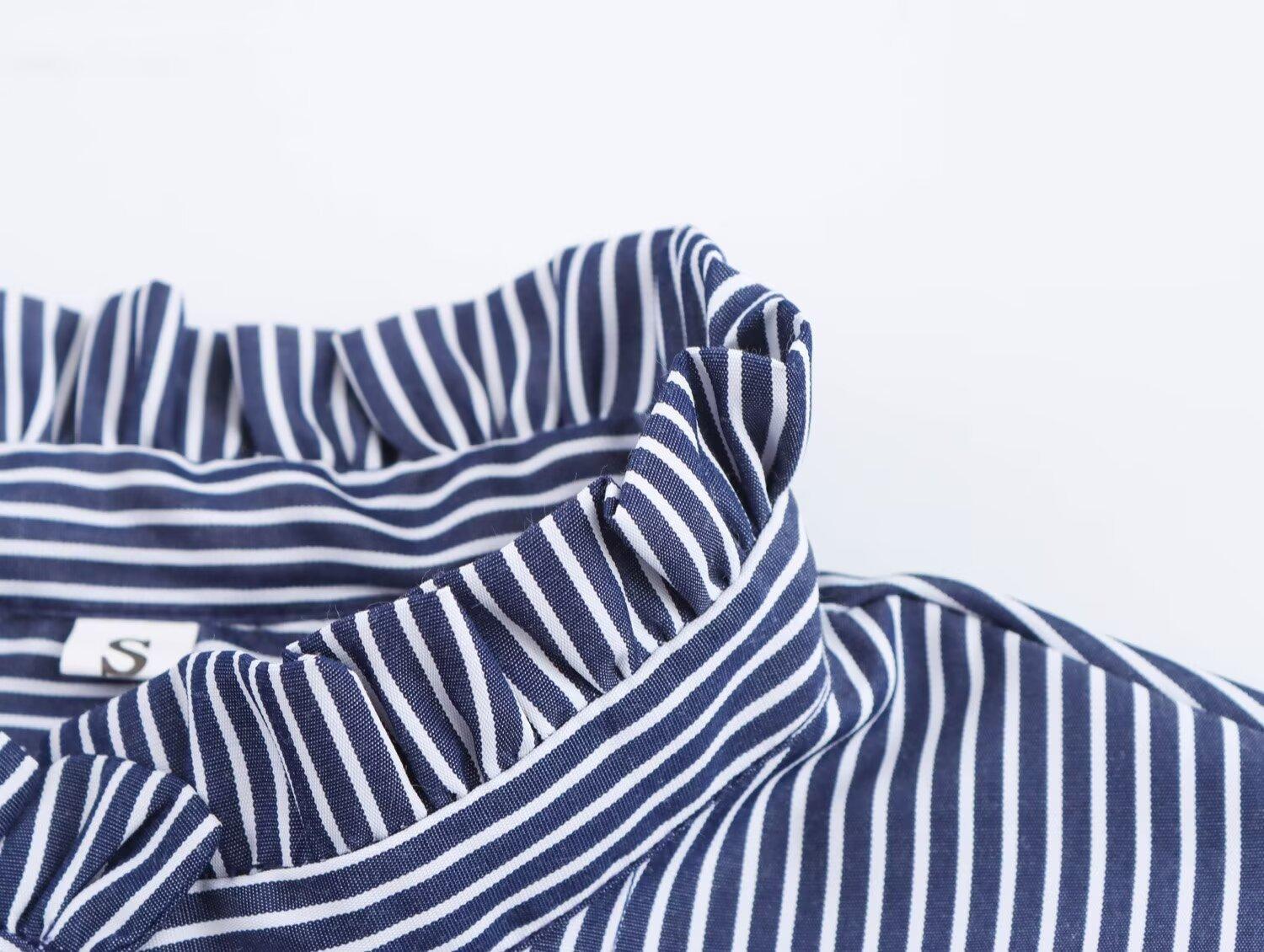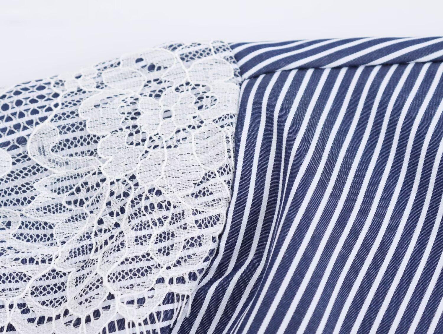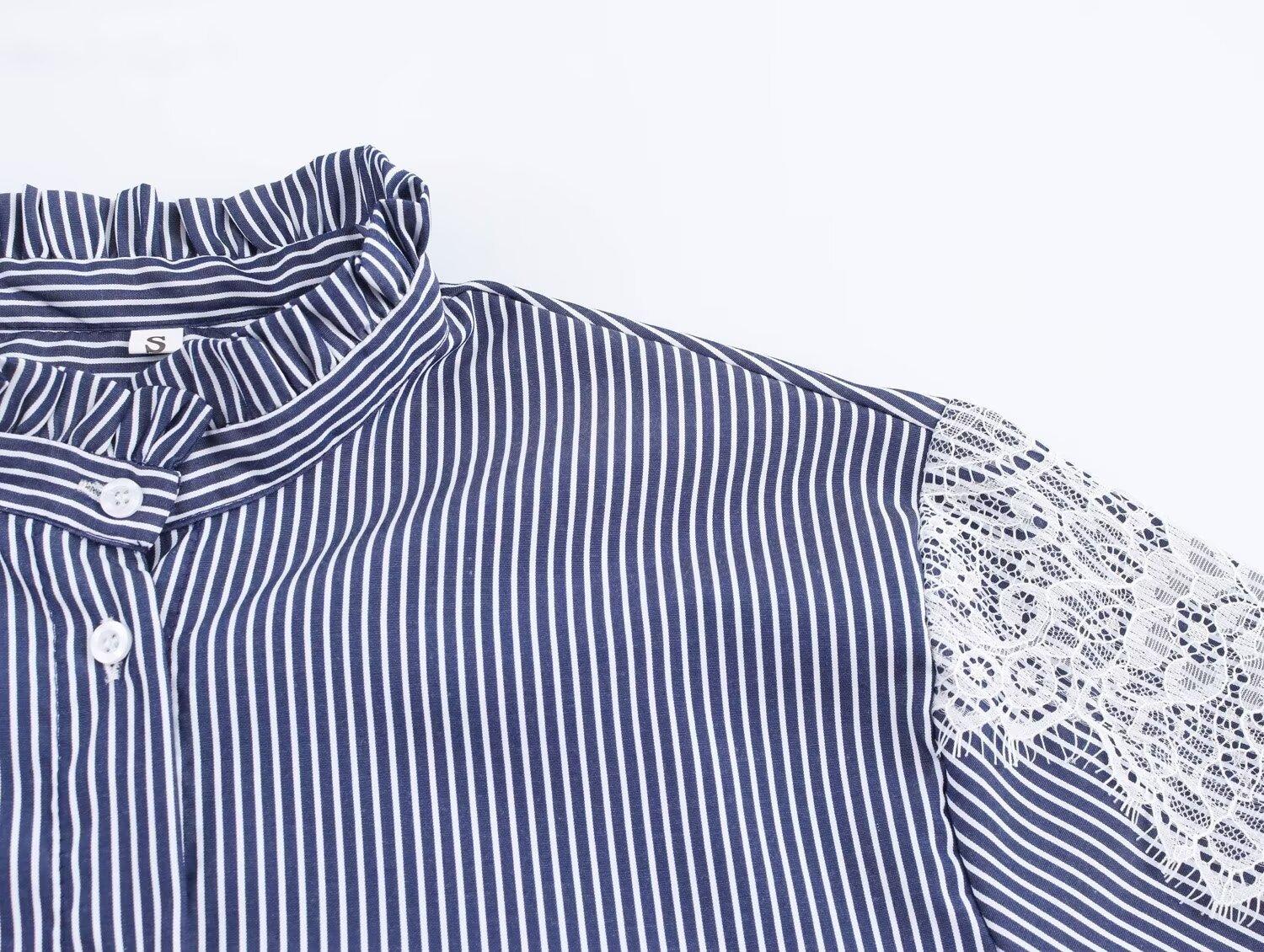 Ropa de Otoño para Mujer 2024 Nuevo Estilo Europeo y Americano Moda Simple Versátil Encaje Moda Camisa a Rayas