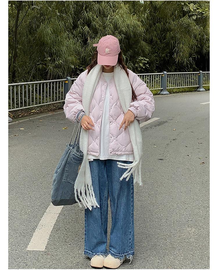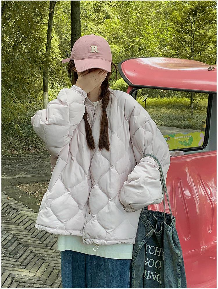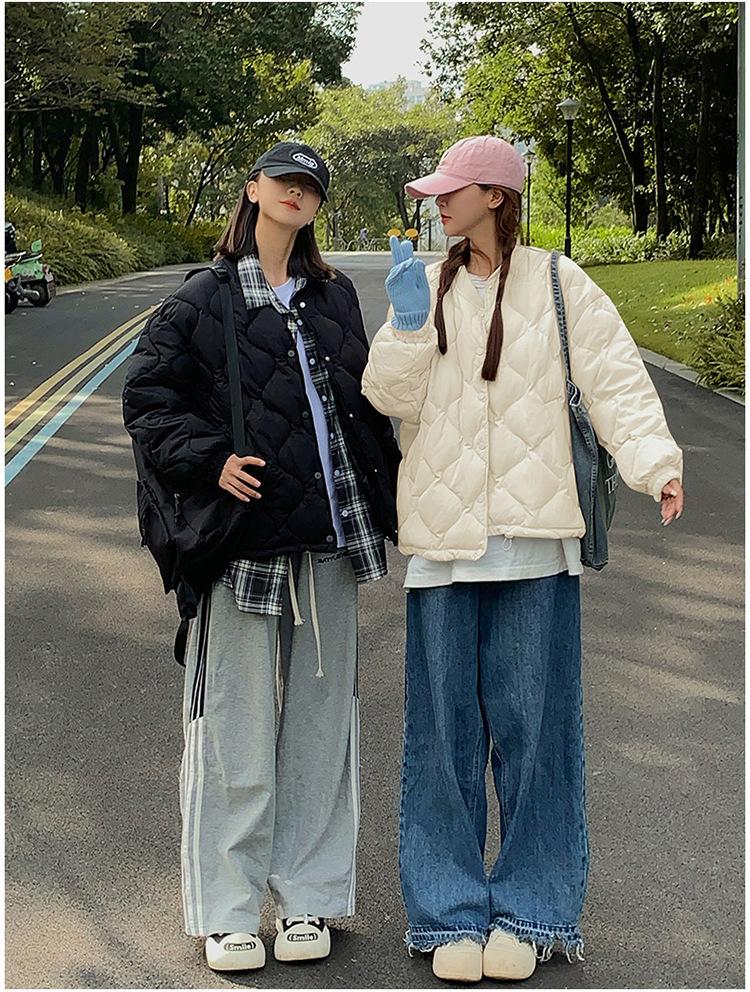 Foto Real de Chaqueta Acolchada de Algodón Bf Holgada Estilo Perezoso de Invierno 2024 para Mujer Chaqueta de Algodón Slim Oversize