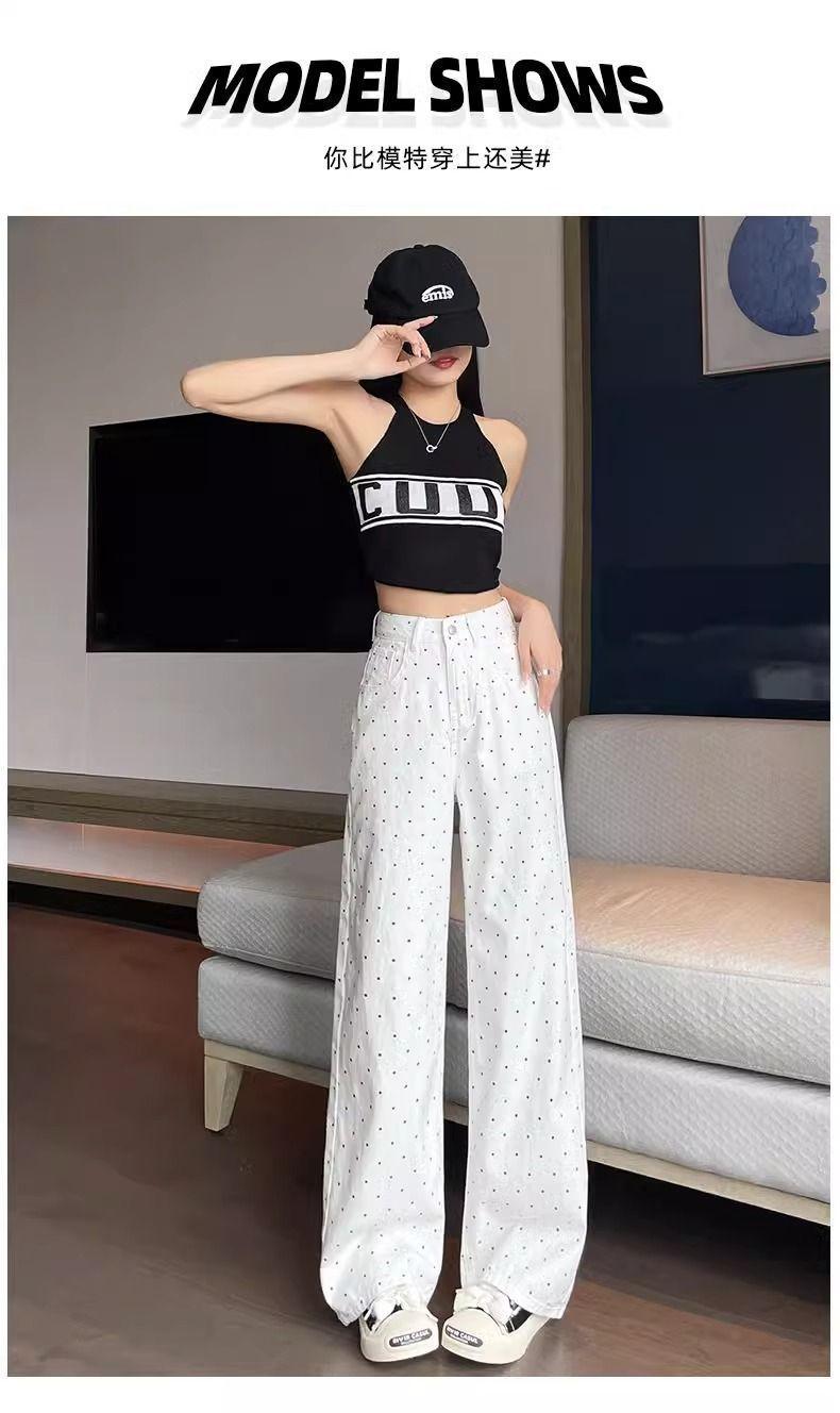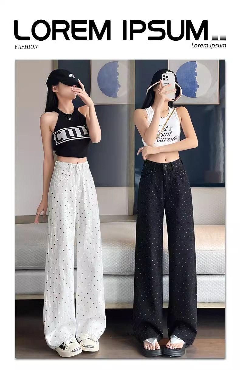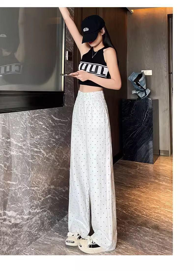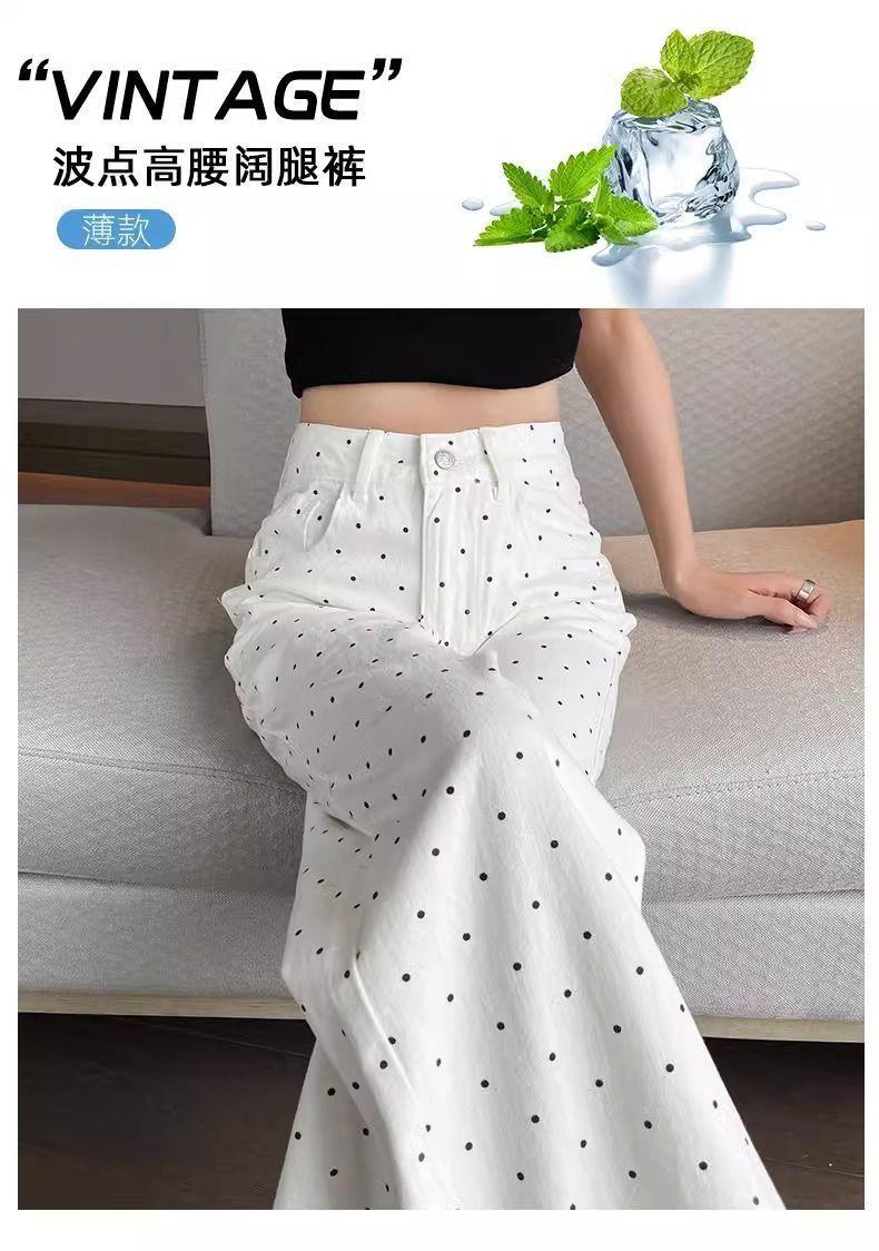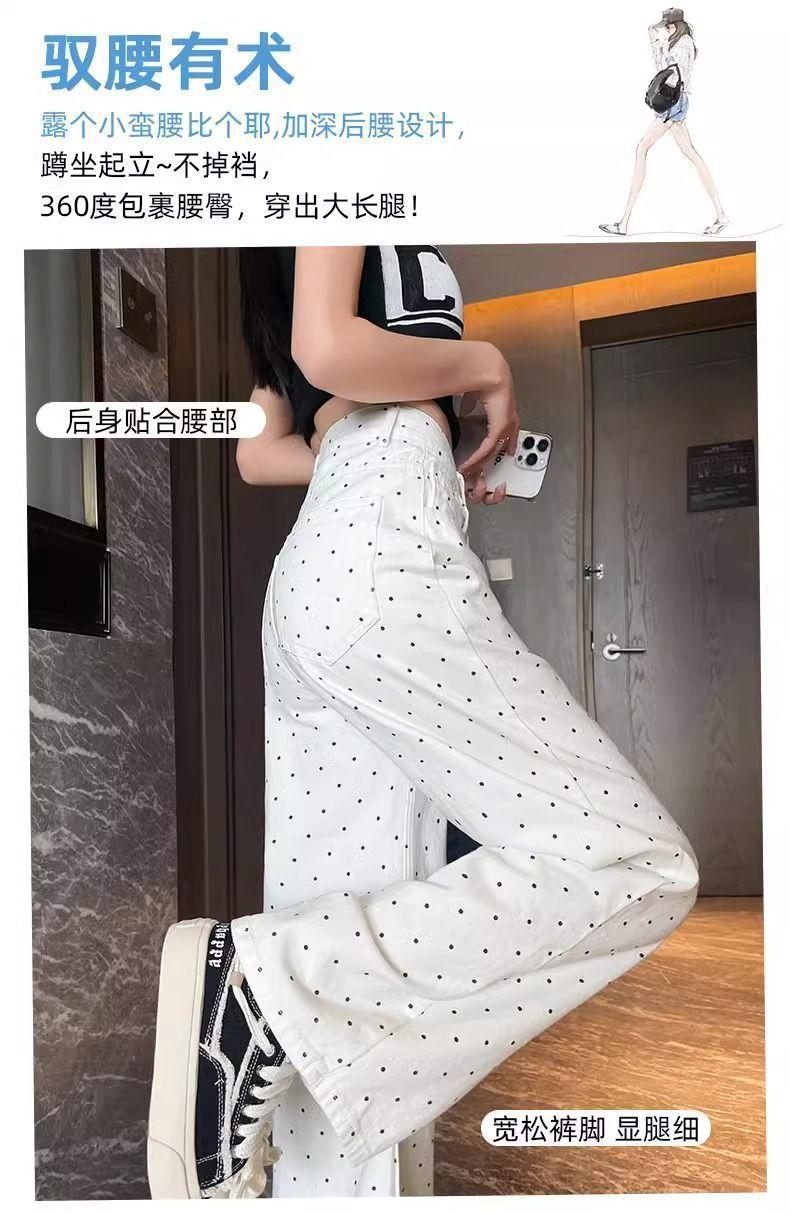 Jeans de pierna ancha florales de lunares para mujer verano delgados 2025 nuevos de cintura alta holgados blancos casuales de pierna recta pantalones largos