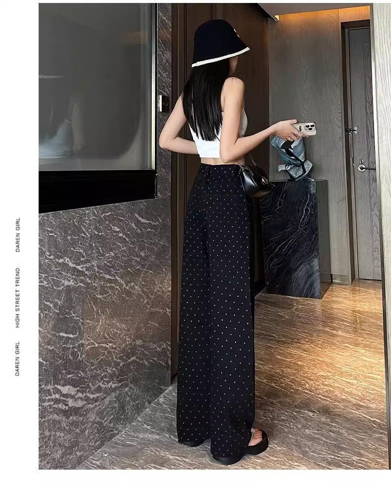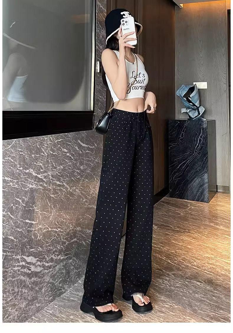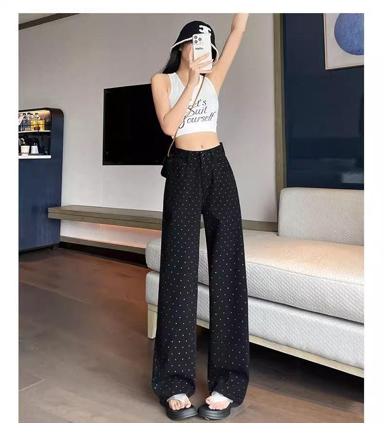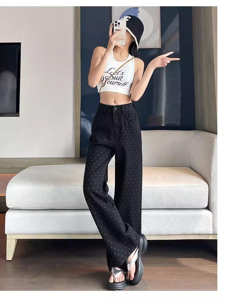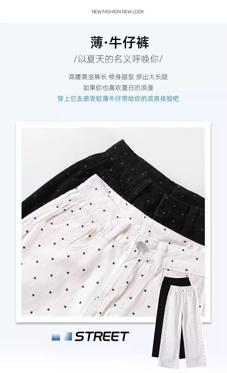 Jeans de pierna ancha florales de lunares para mujer verano delgados 2025 nuevos de cintura alta holgados blancos casuales de pierna recta pantalones largos