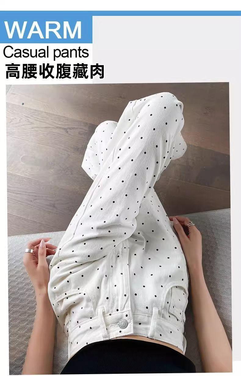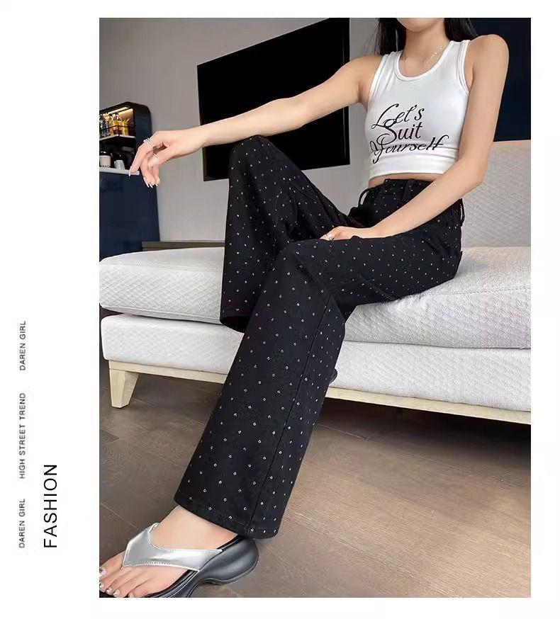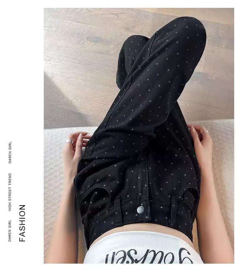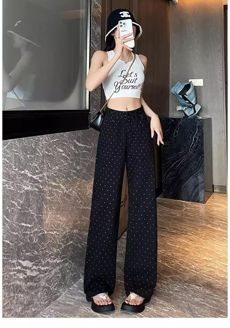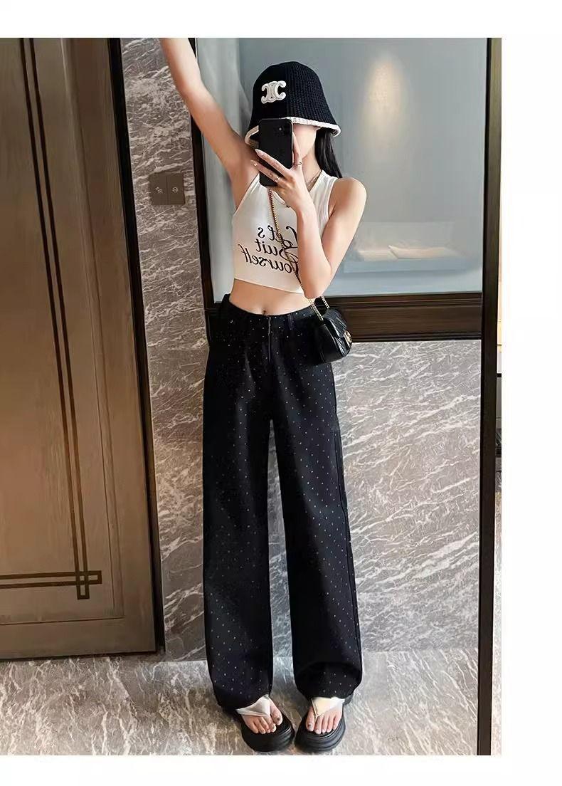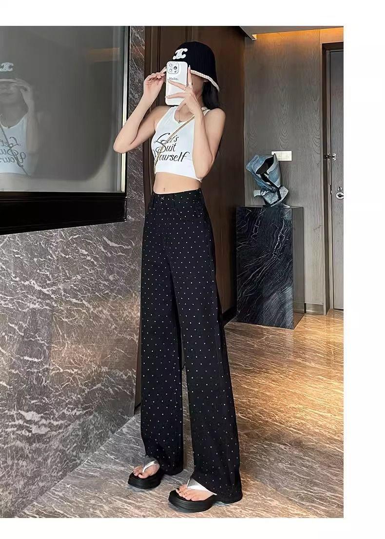 Jeans de pierna ancha florales de lunares para mujer verano delgados 2025 nuevos de cintura alta holgados blancos casuales de pierna recta pantalones largos