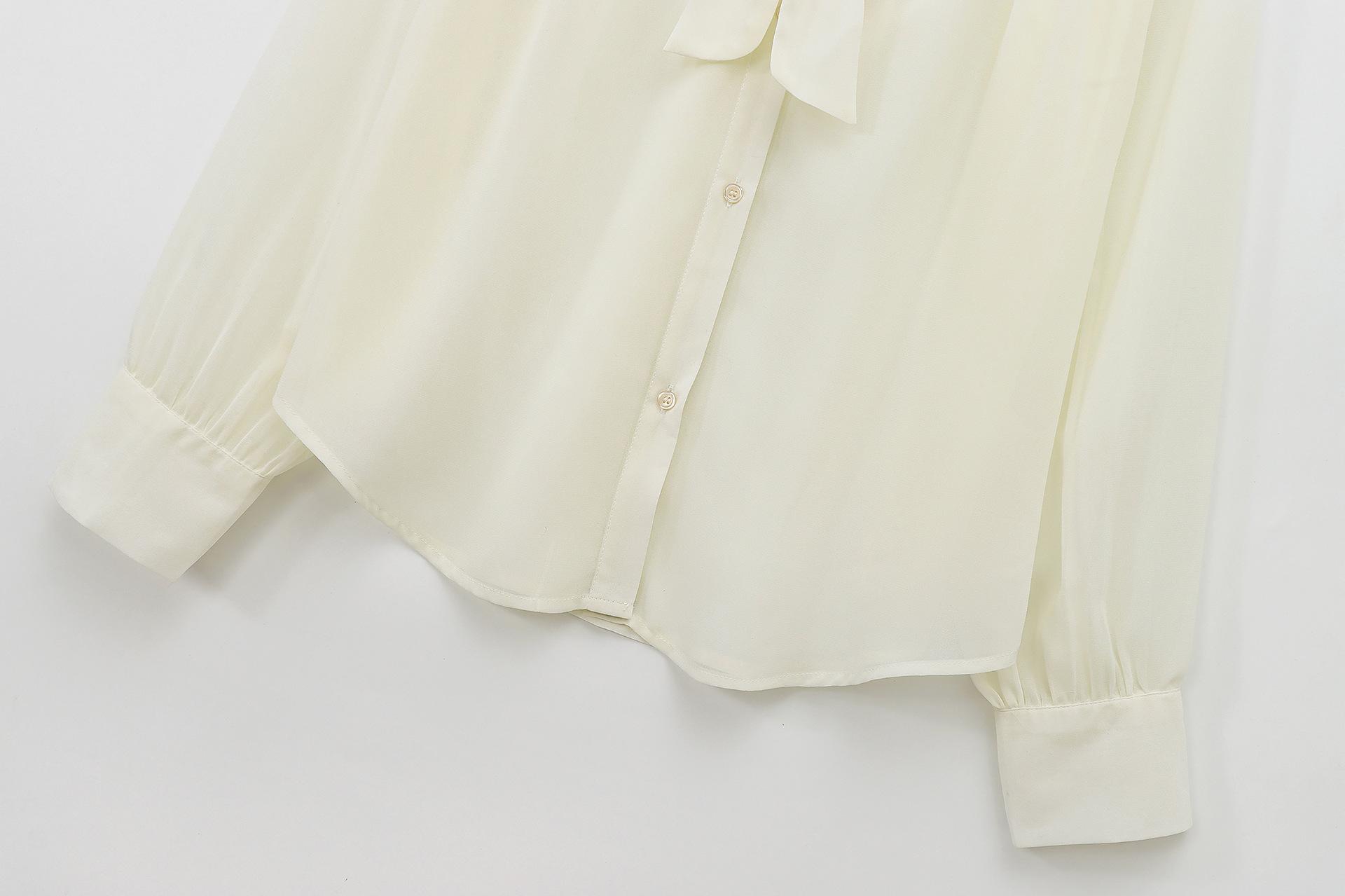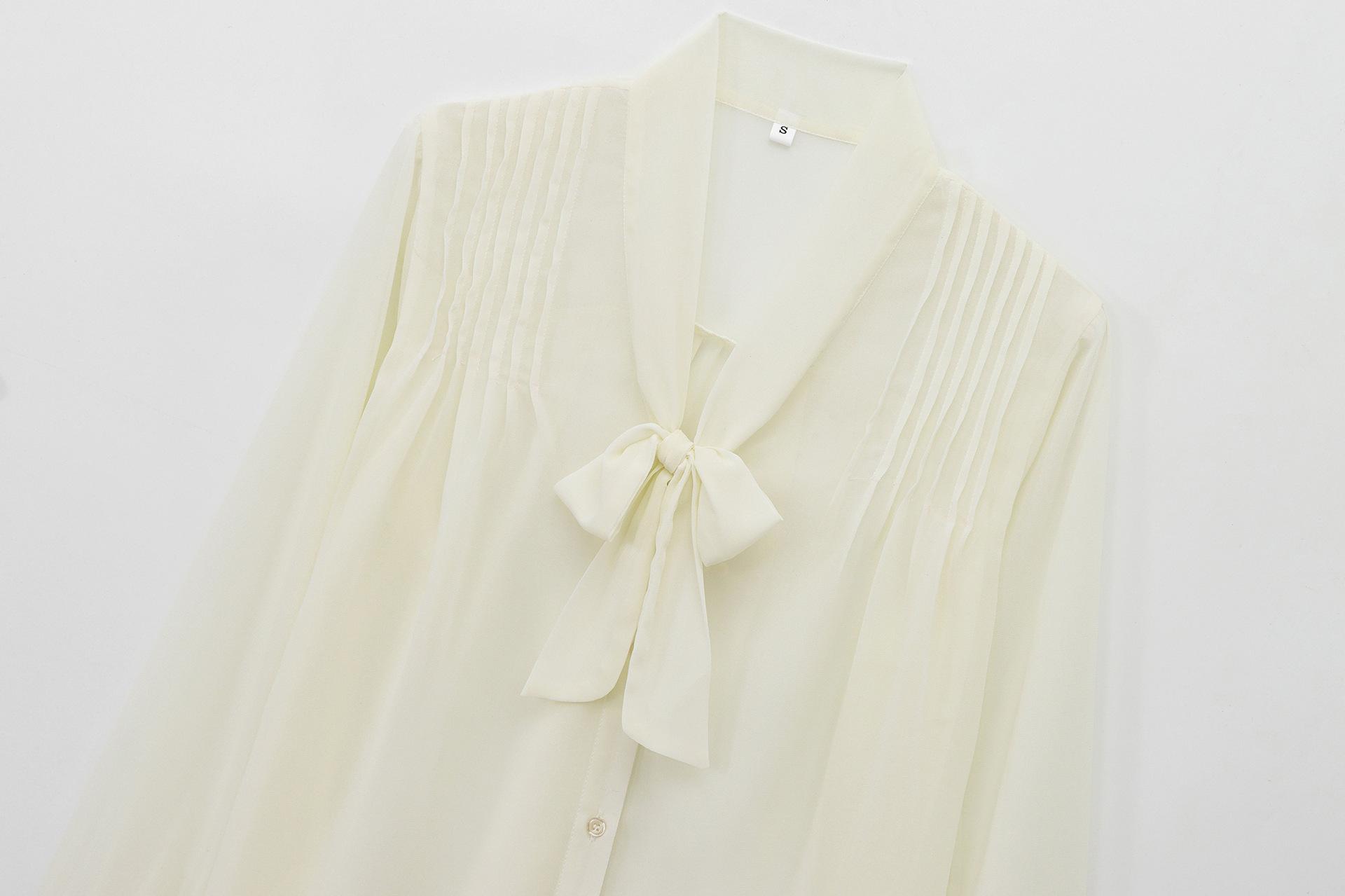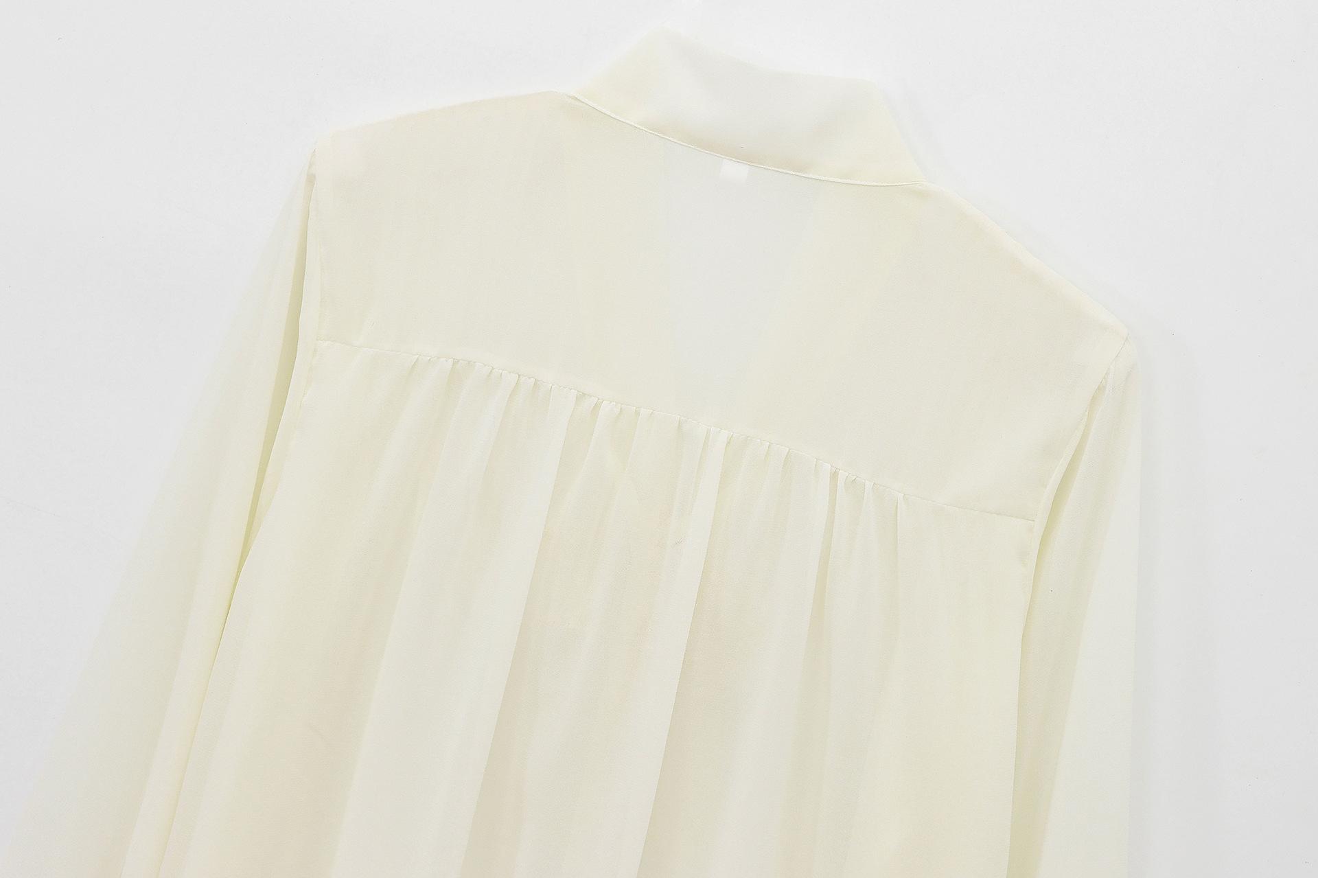 Venta al por mayor de comercio exterior estilo europeo y americano primavera 2025 arrugado cuello V lazo dulce camisa translúcida mujer K52545