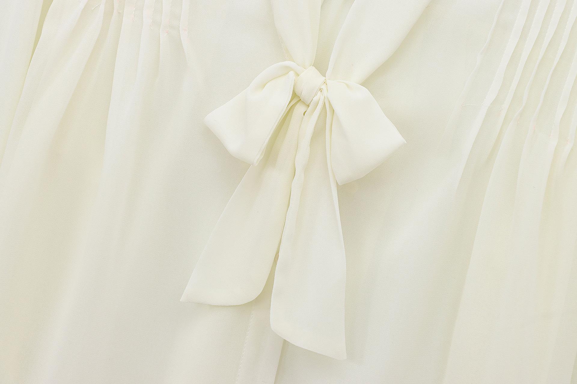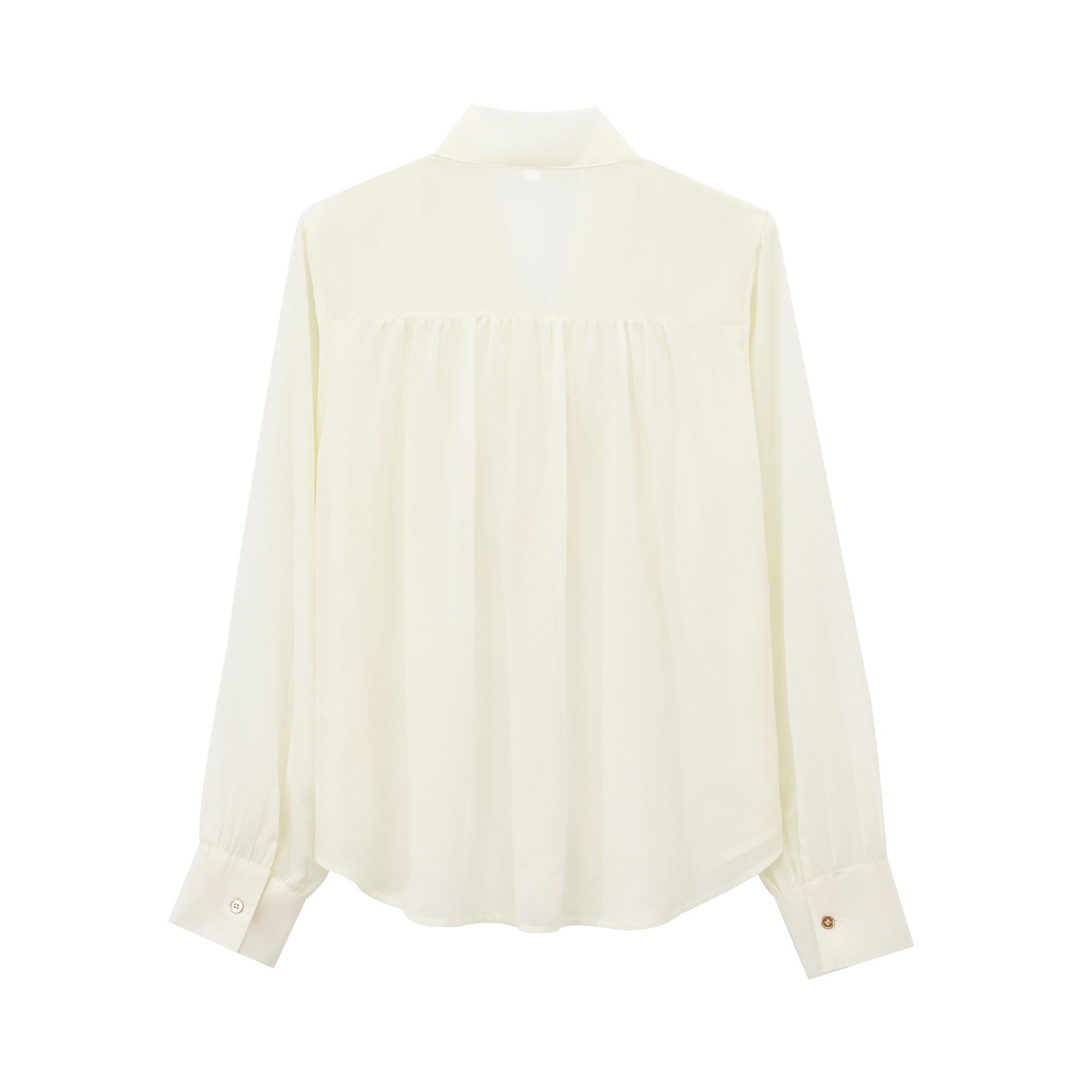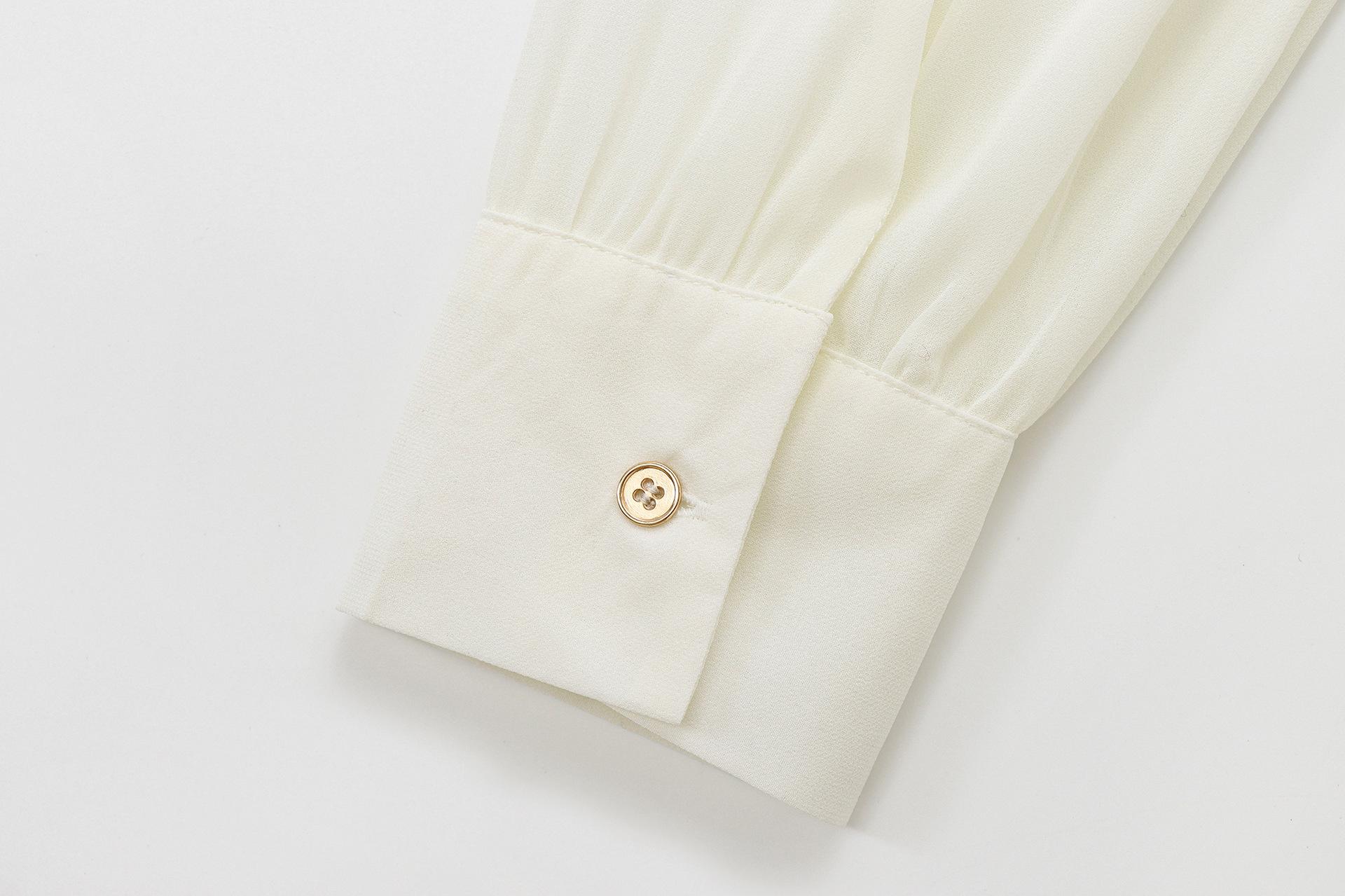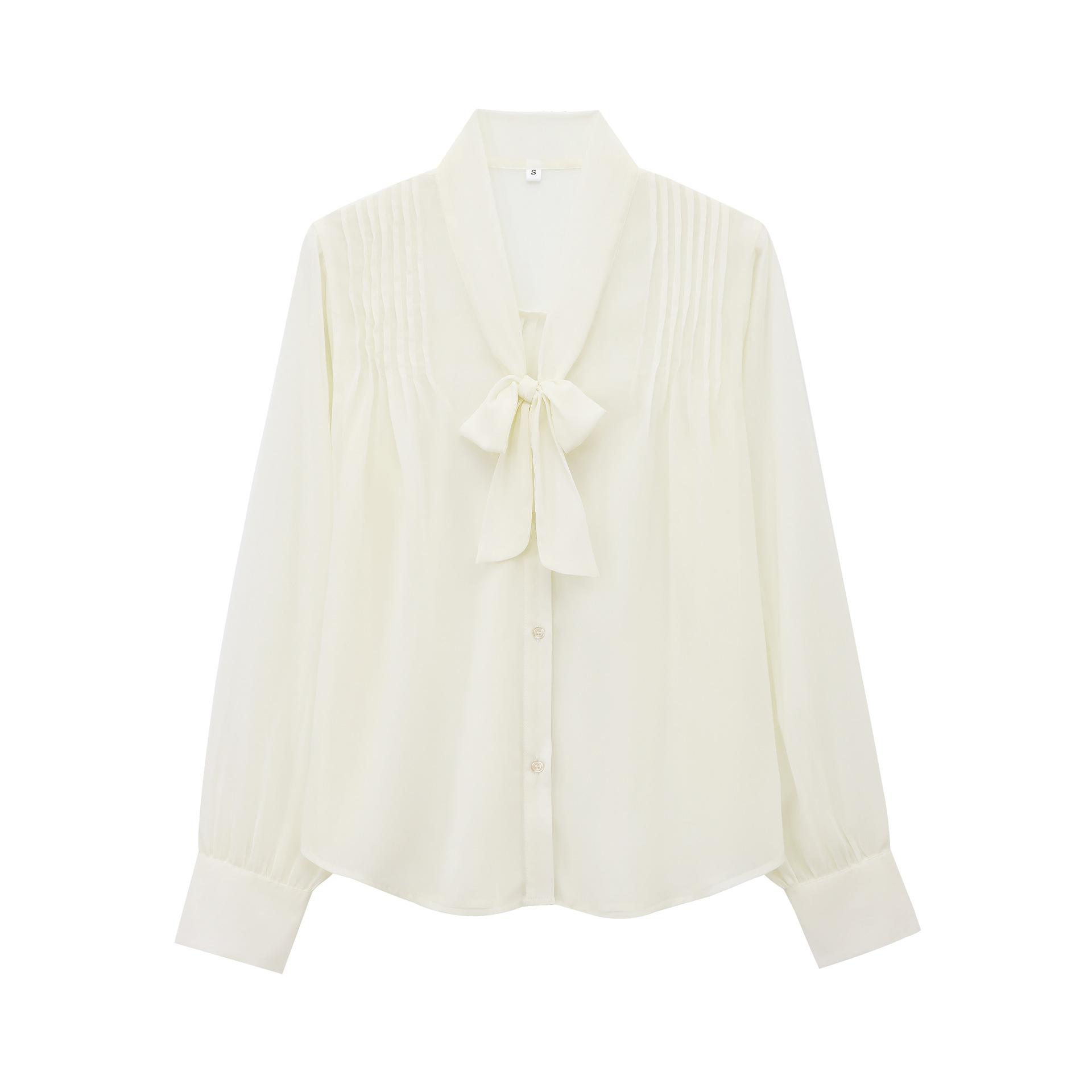 Venta al por mayor de comercio exterior estilo europeo y americano primavera 2025 arrugado cuello V lazo dulce camisa translúcida mujer K52545