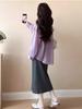 Gray slip dress [single piece] Jly155462, Violet shirt [single piece] Jwc155463, Violet shirt + grey suspender...