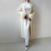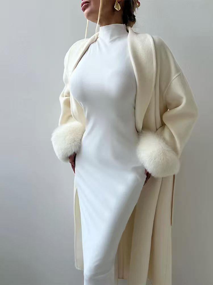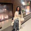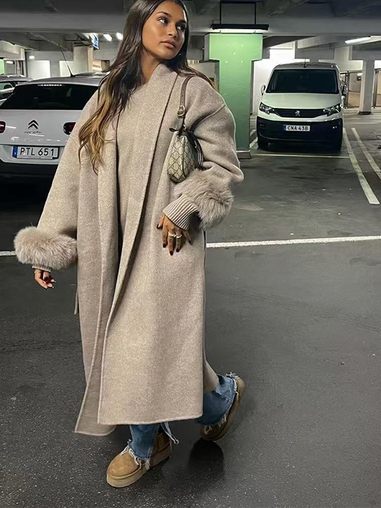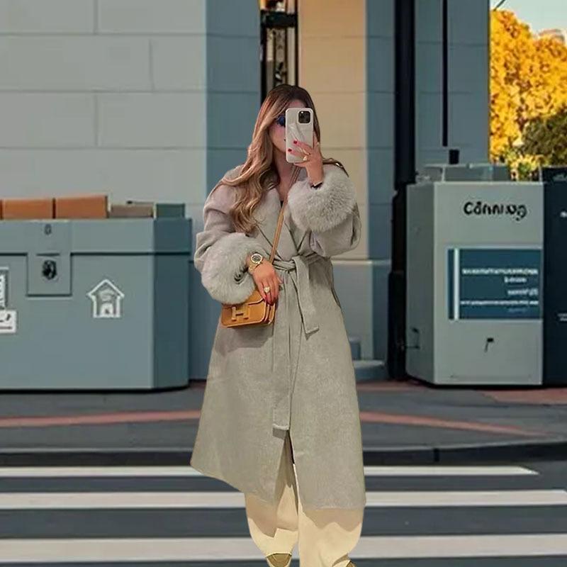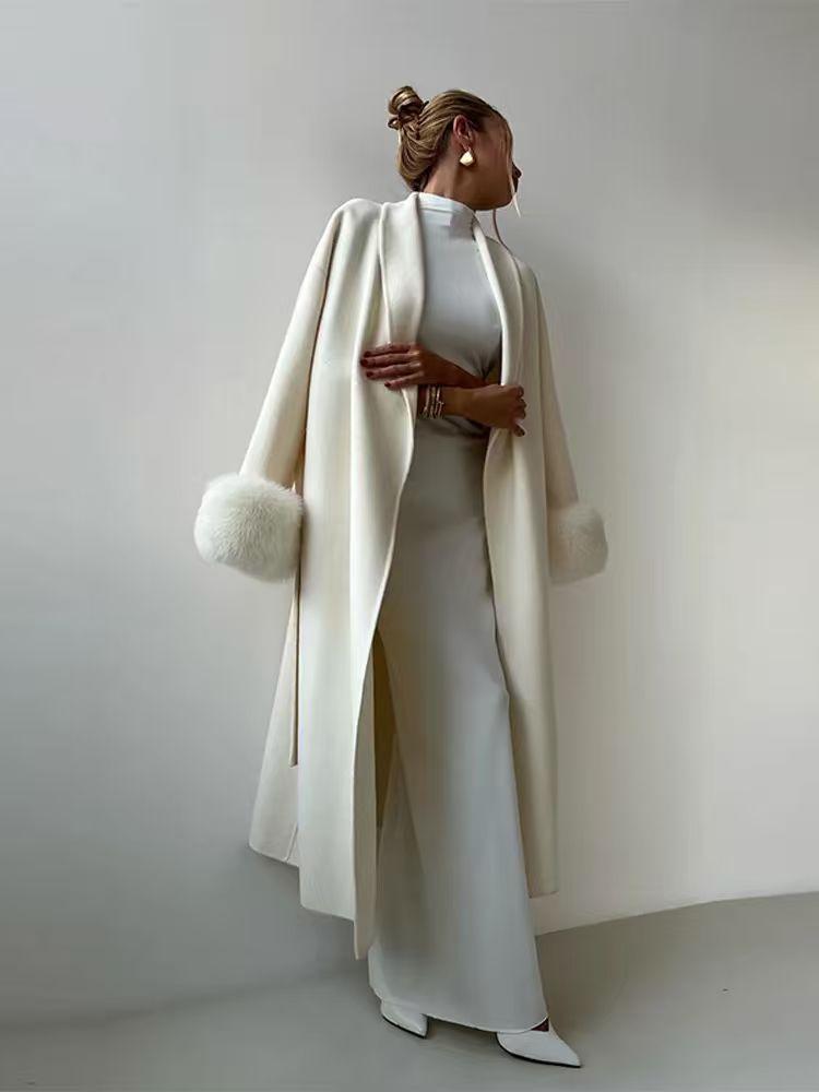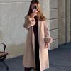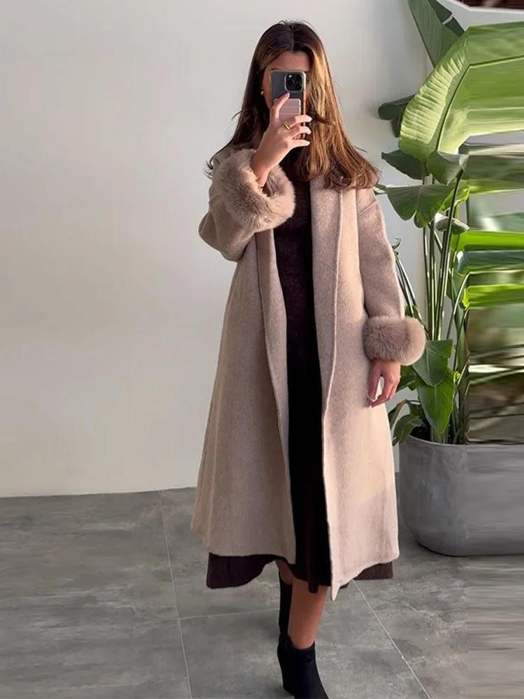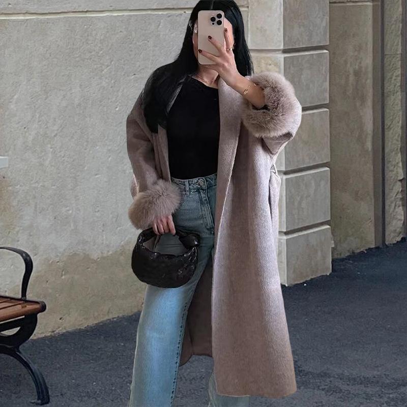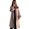 Abrigo de lana casual largo y suelto de color sólido, moda transfronteriza 2025 nuevo otoño e invierno con puños largos y esponjosos