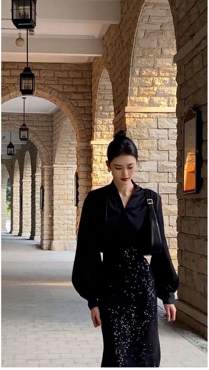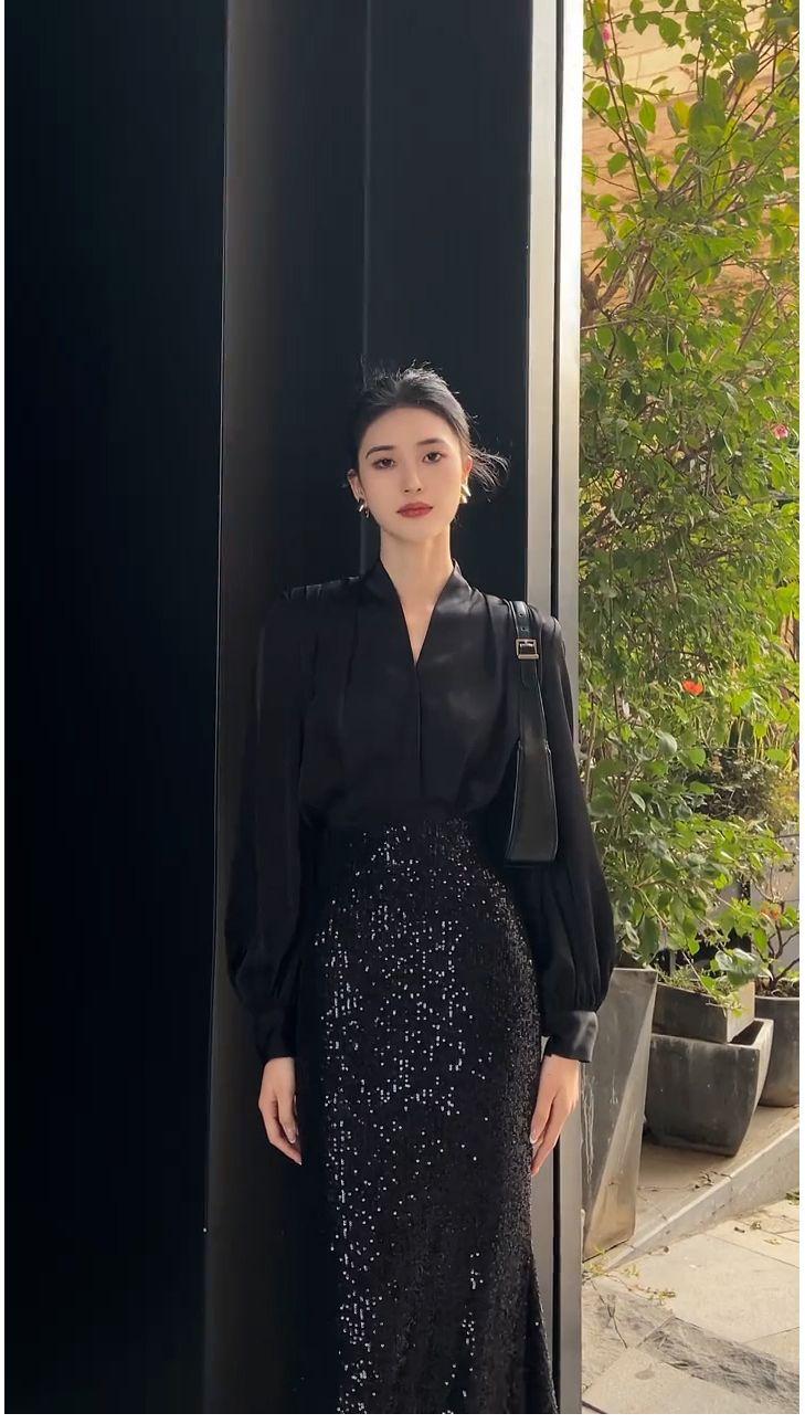 Conjunto de Moda Estilo Coreano 2025 Otoño Nuevo Camisa Adelgazante de Alta Gama Falda Midi de Cola de Pez Temperamento Conjunto de Dos Piezas