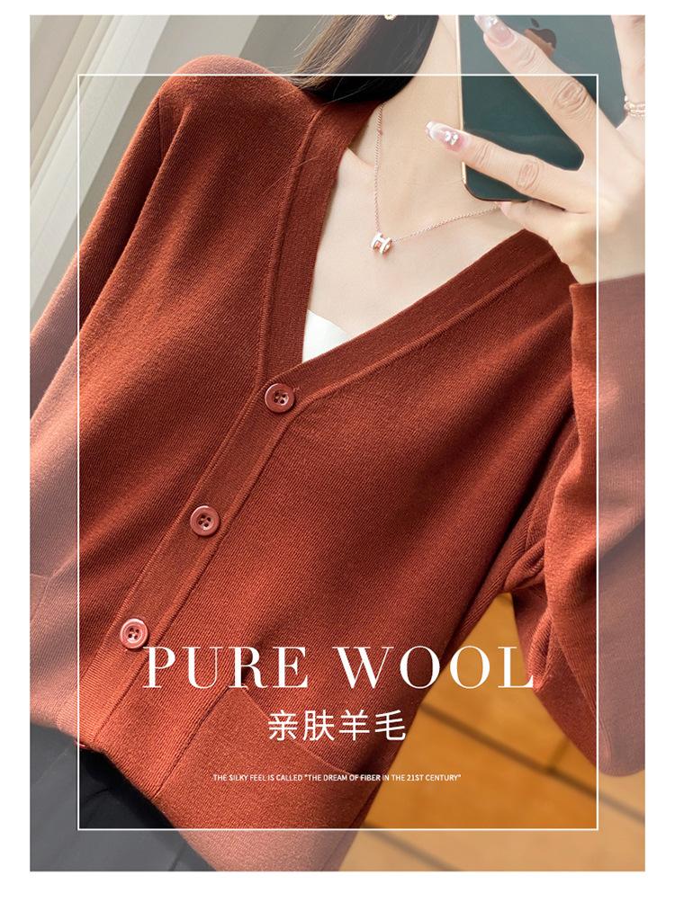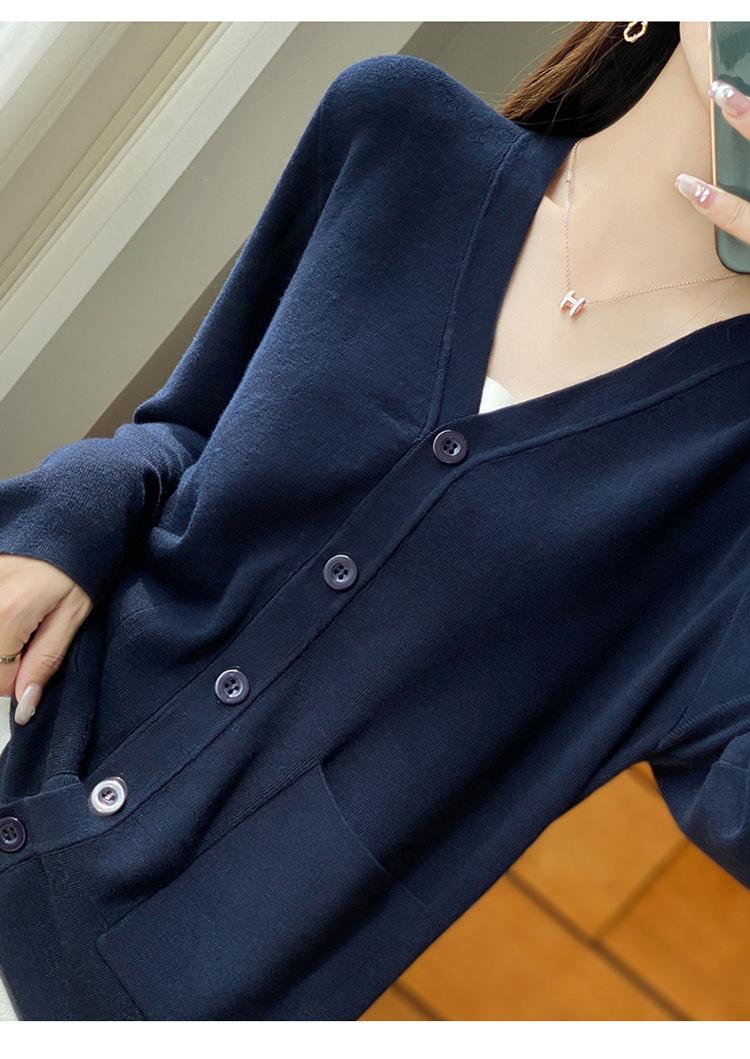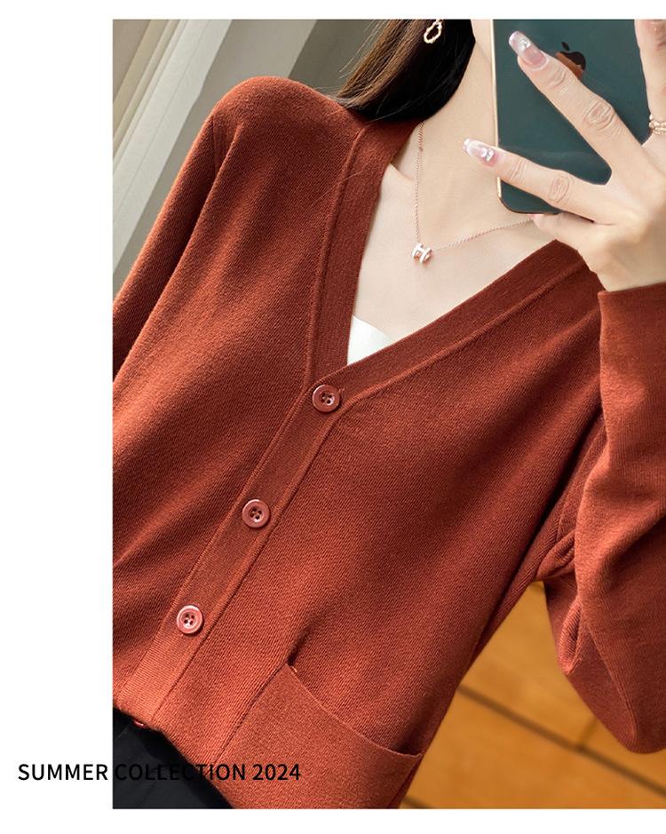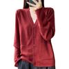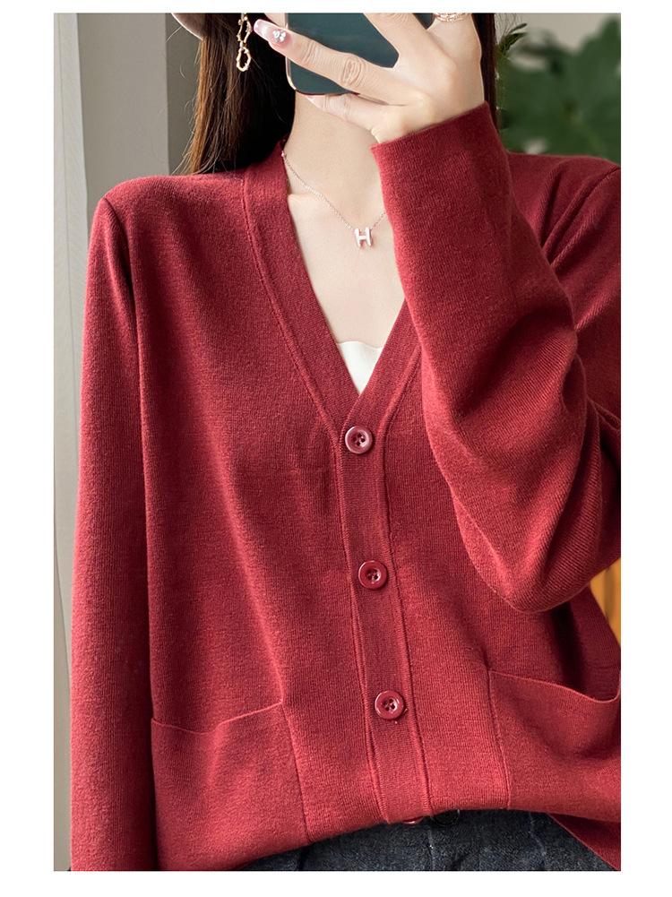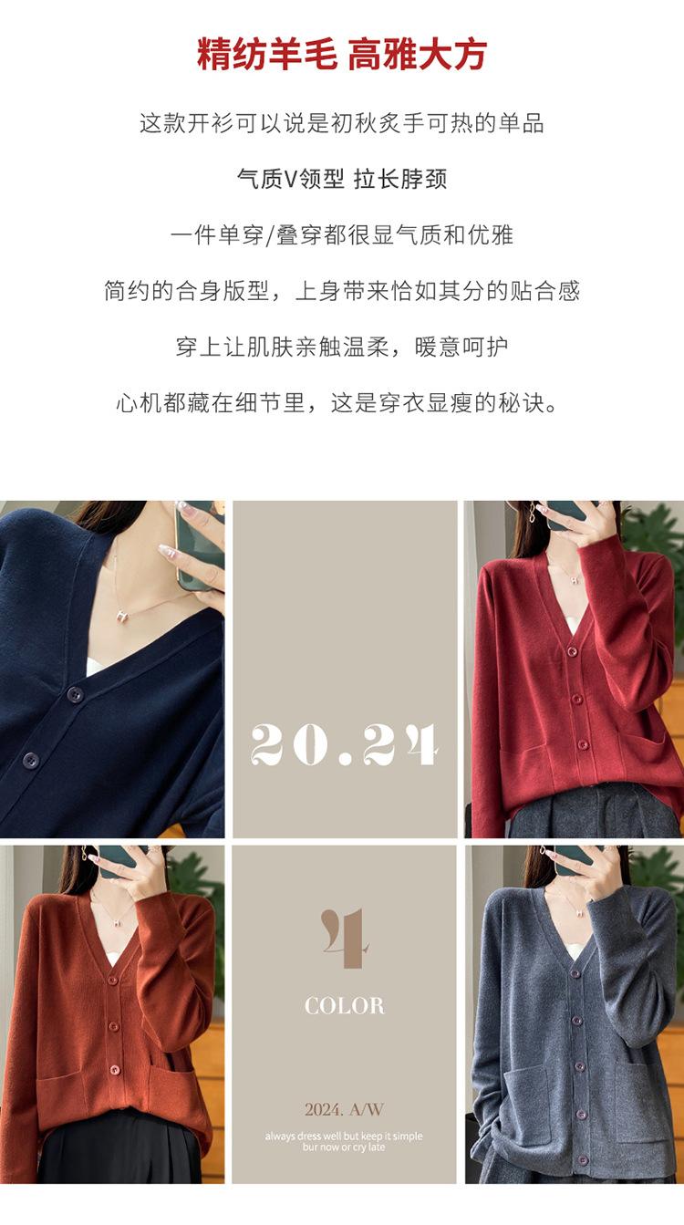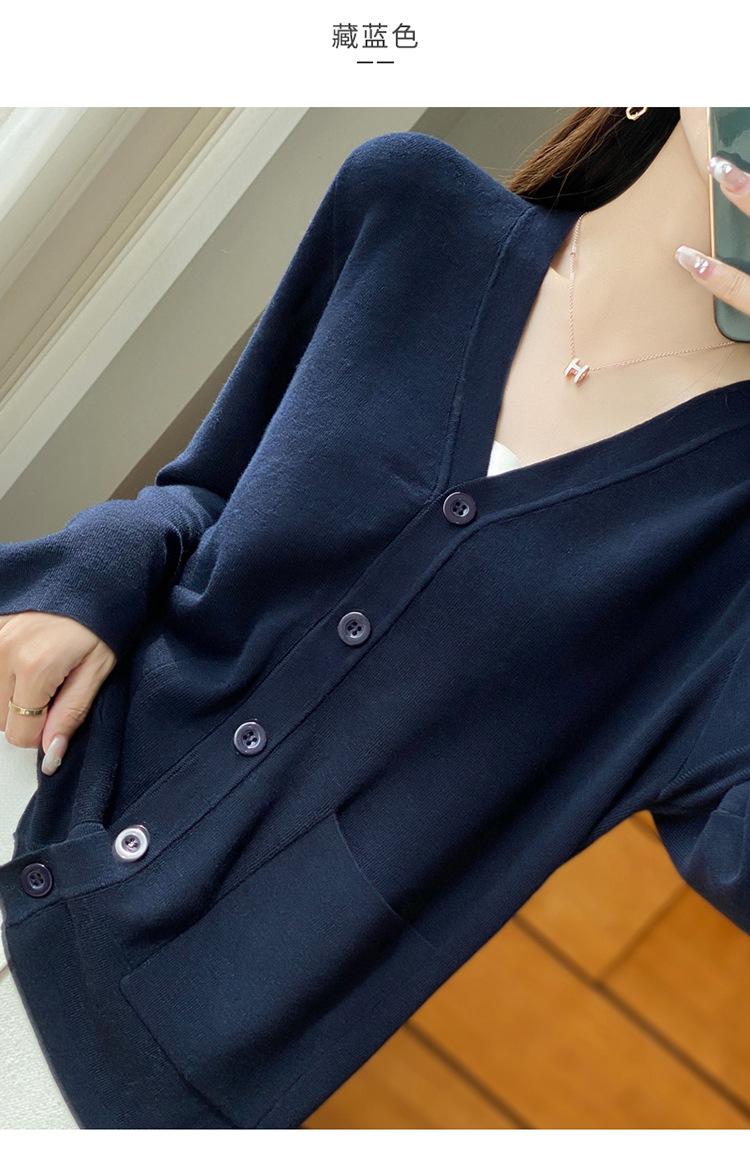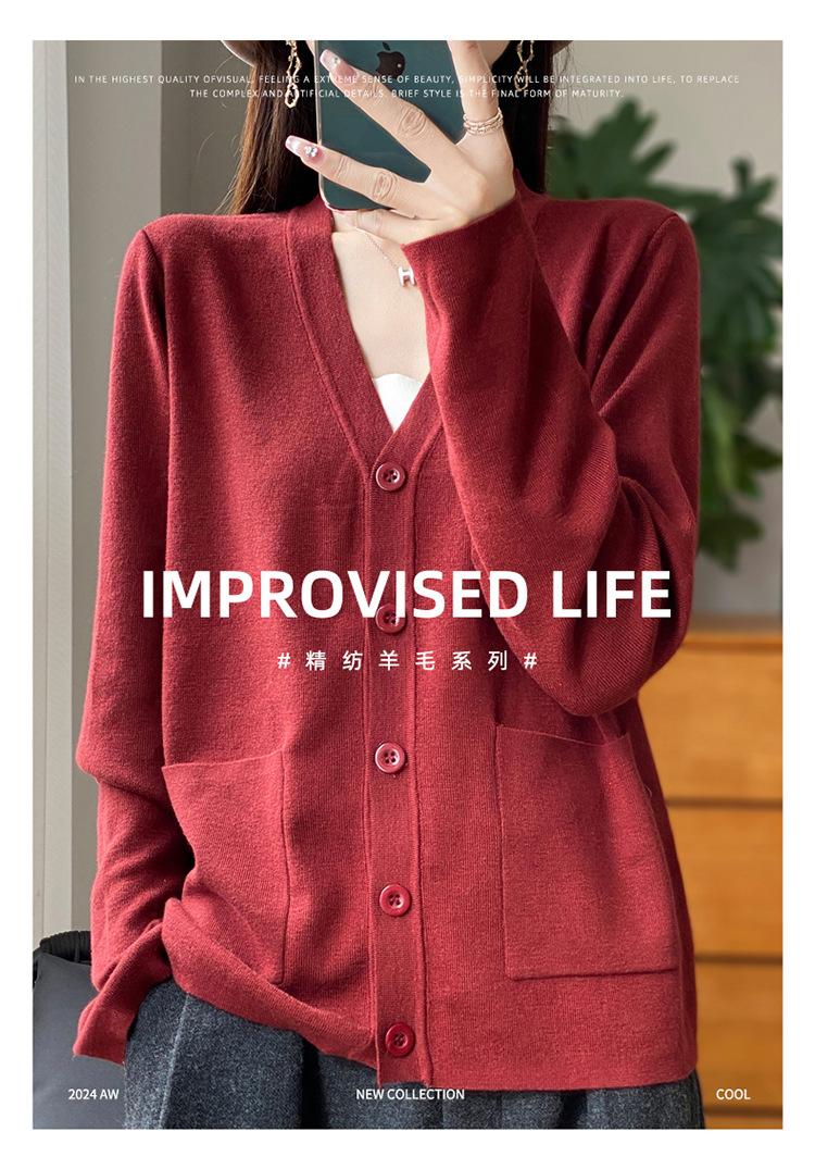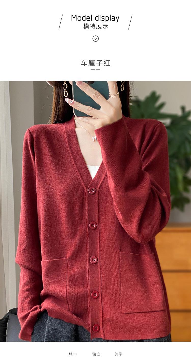 Otoño/Invierno 24 Nuevo Cárdigan de Punto de Lana Peinada Simple con Cuello en V y Bolsillo Chaqueta de Manga Larga Suelta de Color Sólido