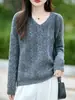 Compra Novedad Otoño e Invierno 2025 Tejidos 100% Lana Pura para Mujer Sueltos Retorcidos Cuello en V Superpuestos Engrosados Tejidos de Cachemira al por mayor en Joom.pro