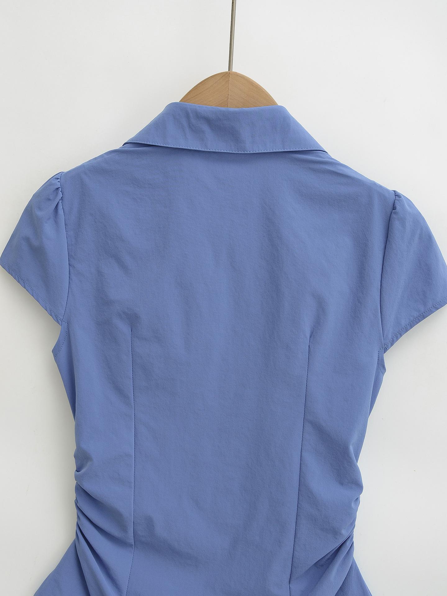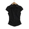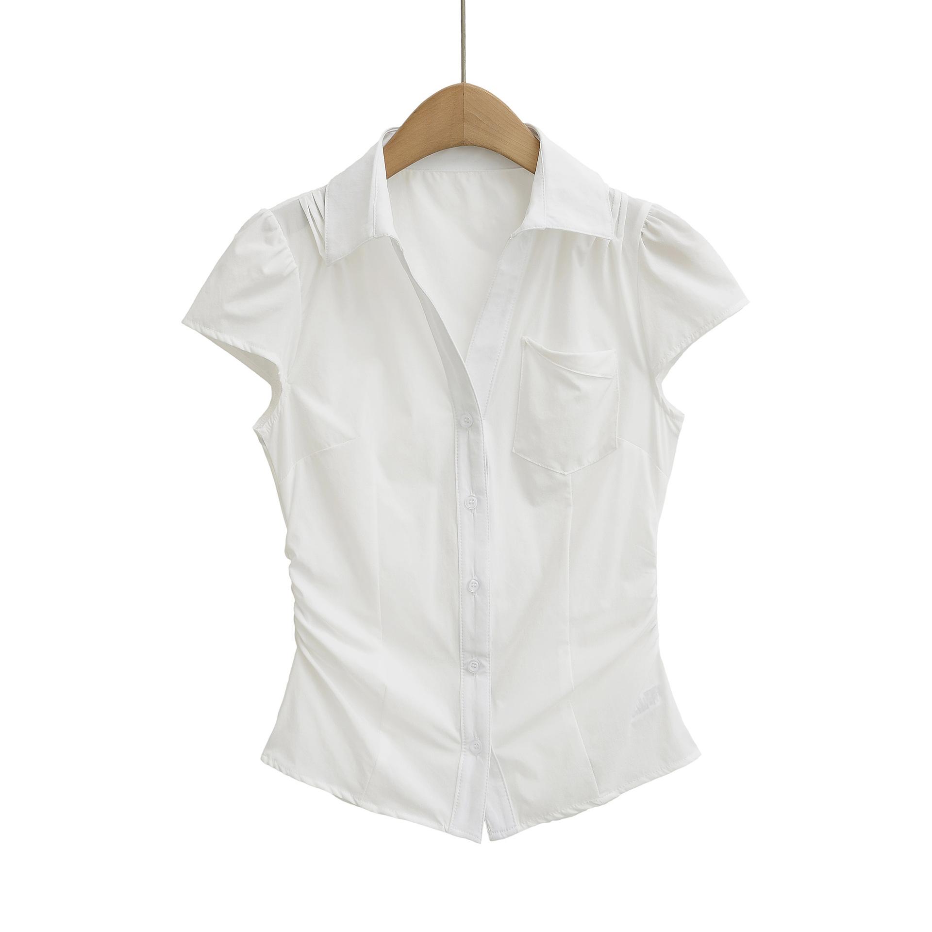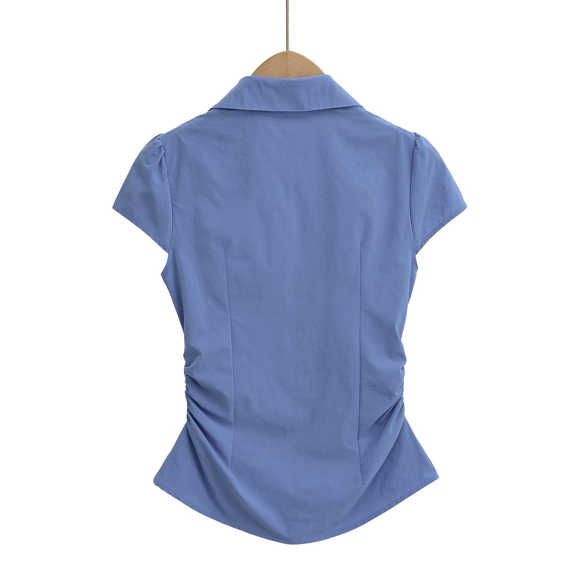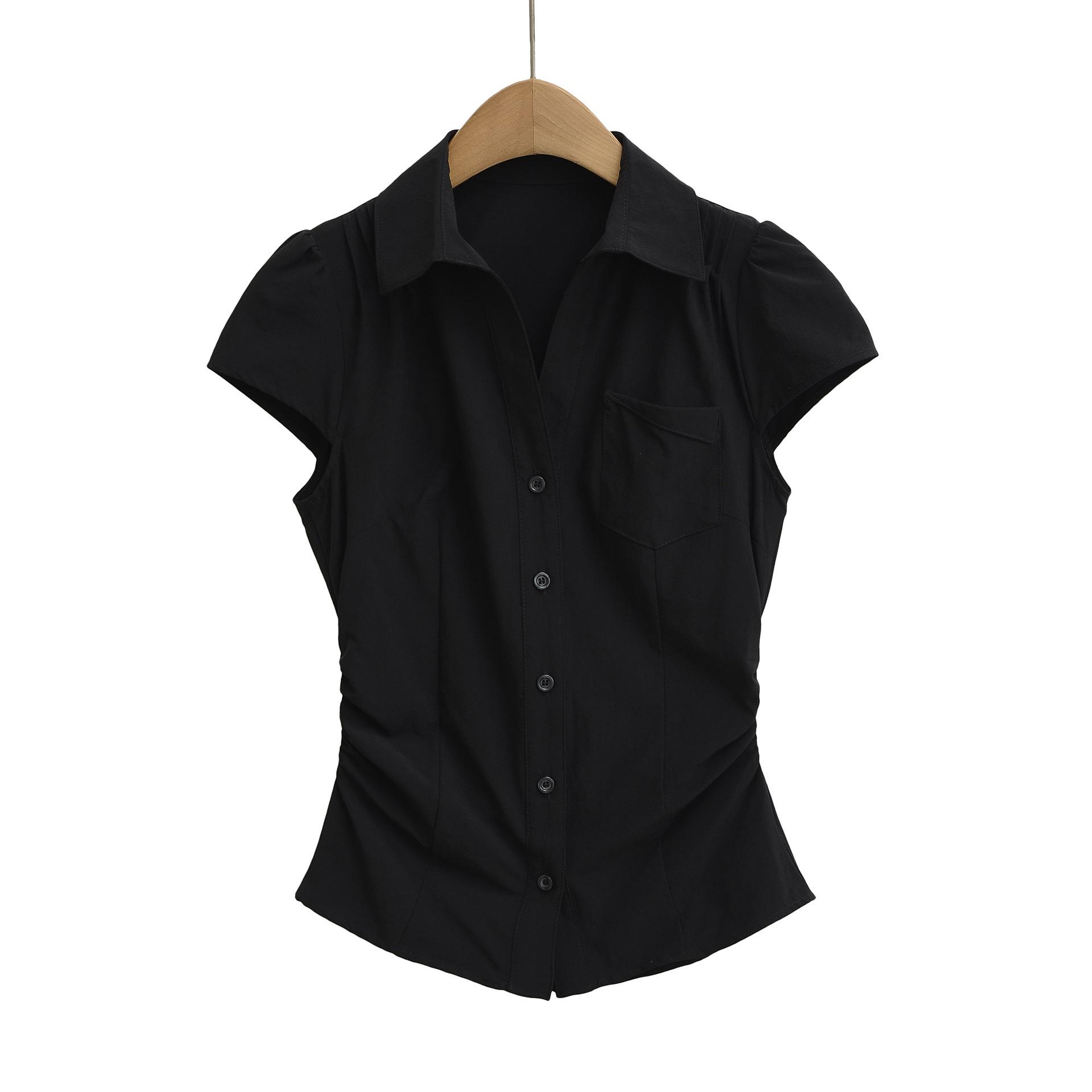 671-2025 Estilo Deseo Puro Top de Mujer Entallado con Pliegues de un Solo Botón Europeo y Americano Sexy Chica Caliente Camisa de Manga Corta