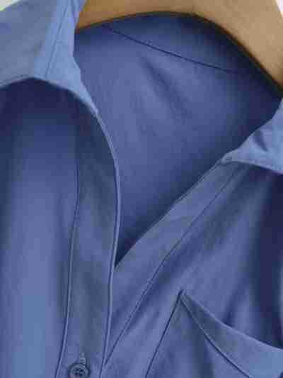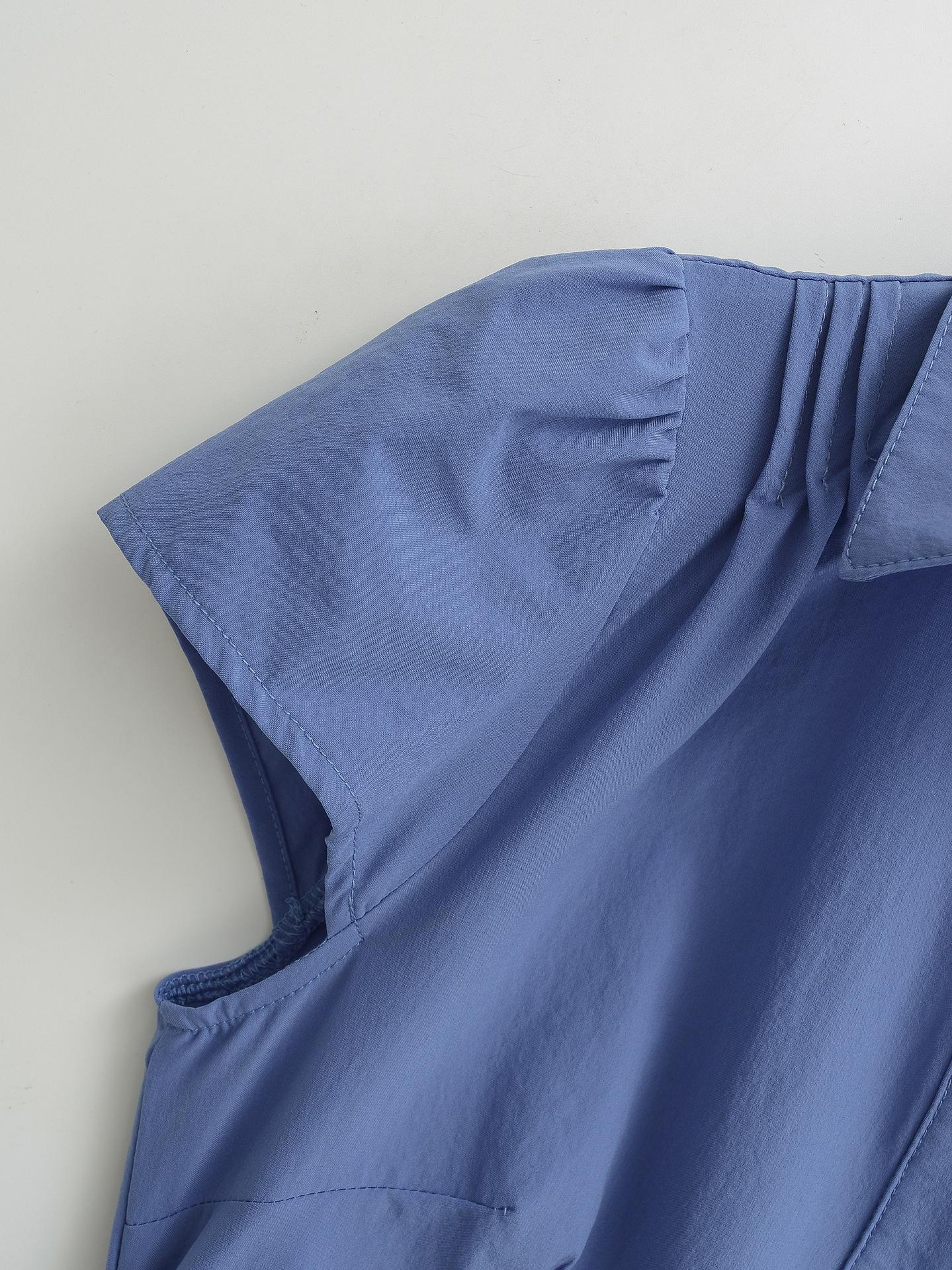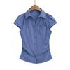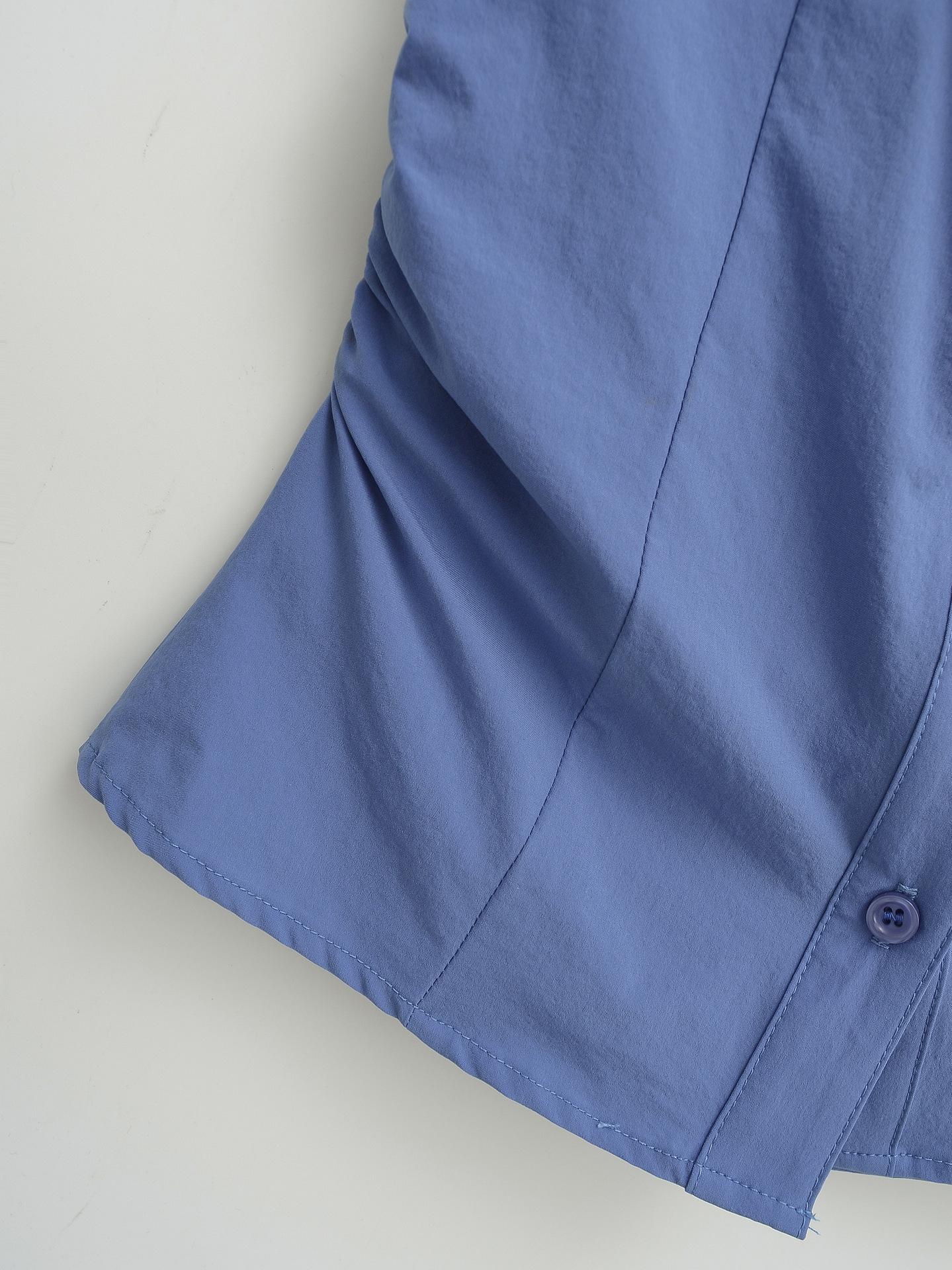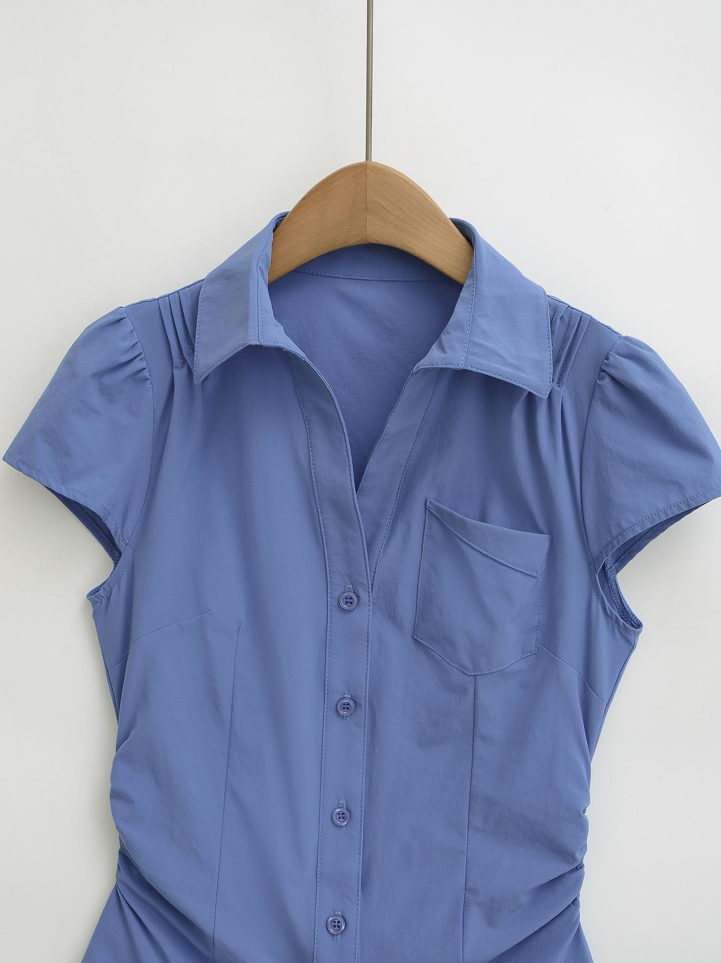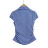 671-2025 Estilo Deseo Puro Top de Mujer Entallado con Pliegues de un Solo Botón Europeo y Americano Sexy Chica Caliente Camisa de Manga Corta