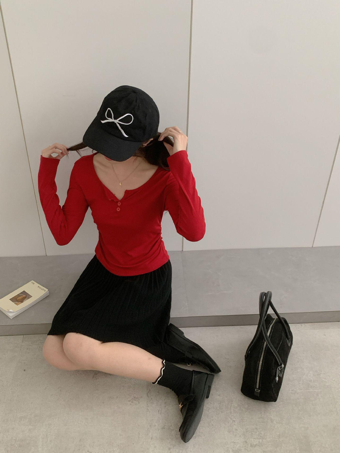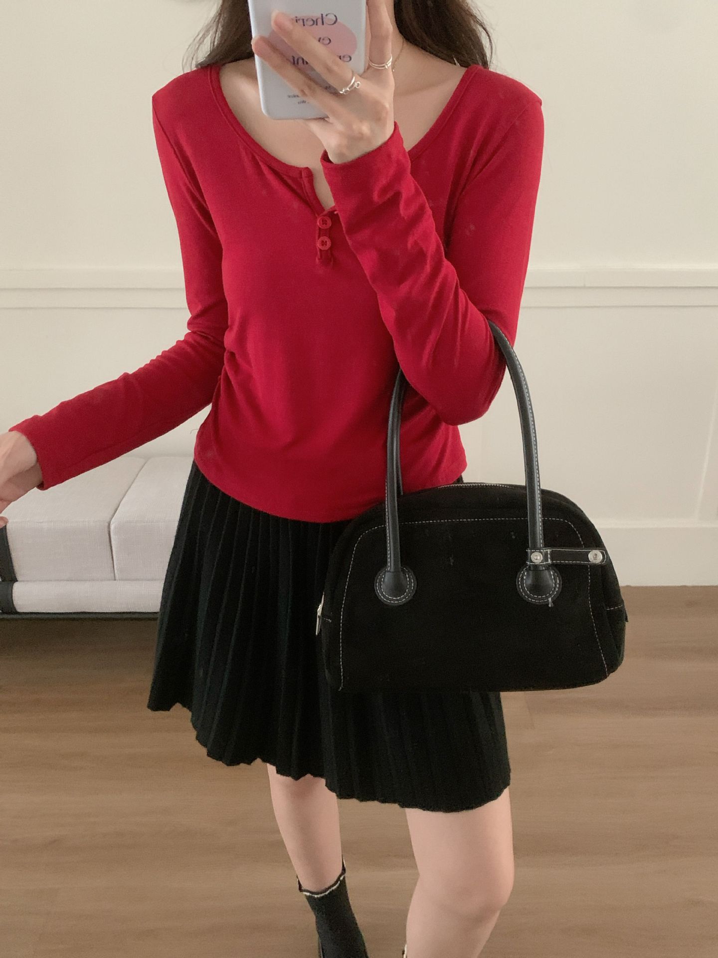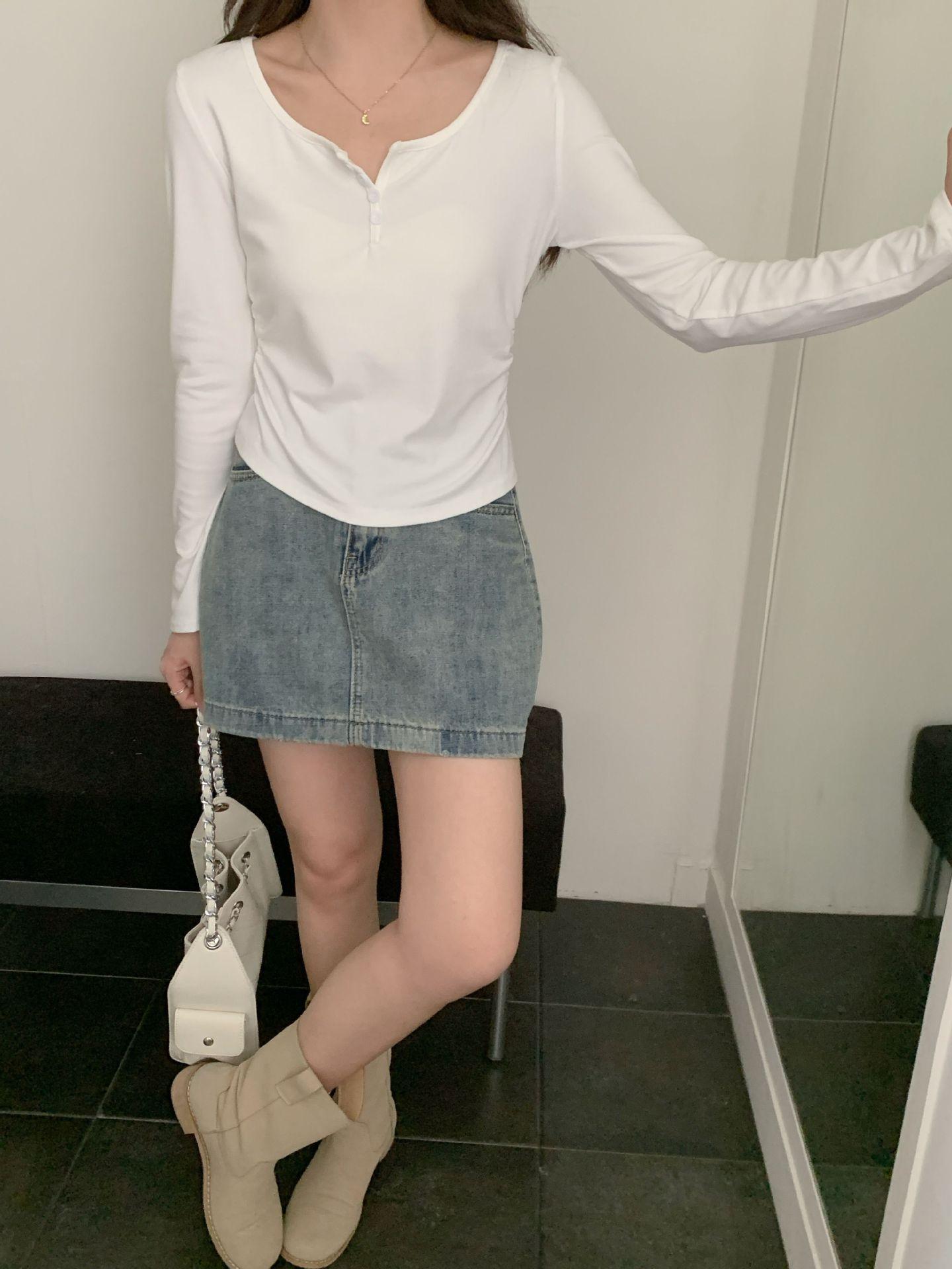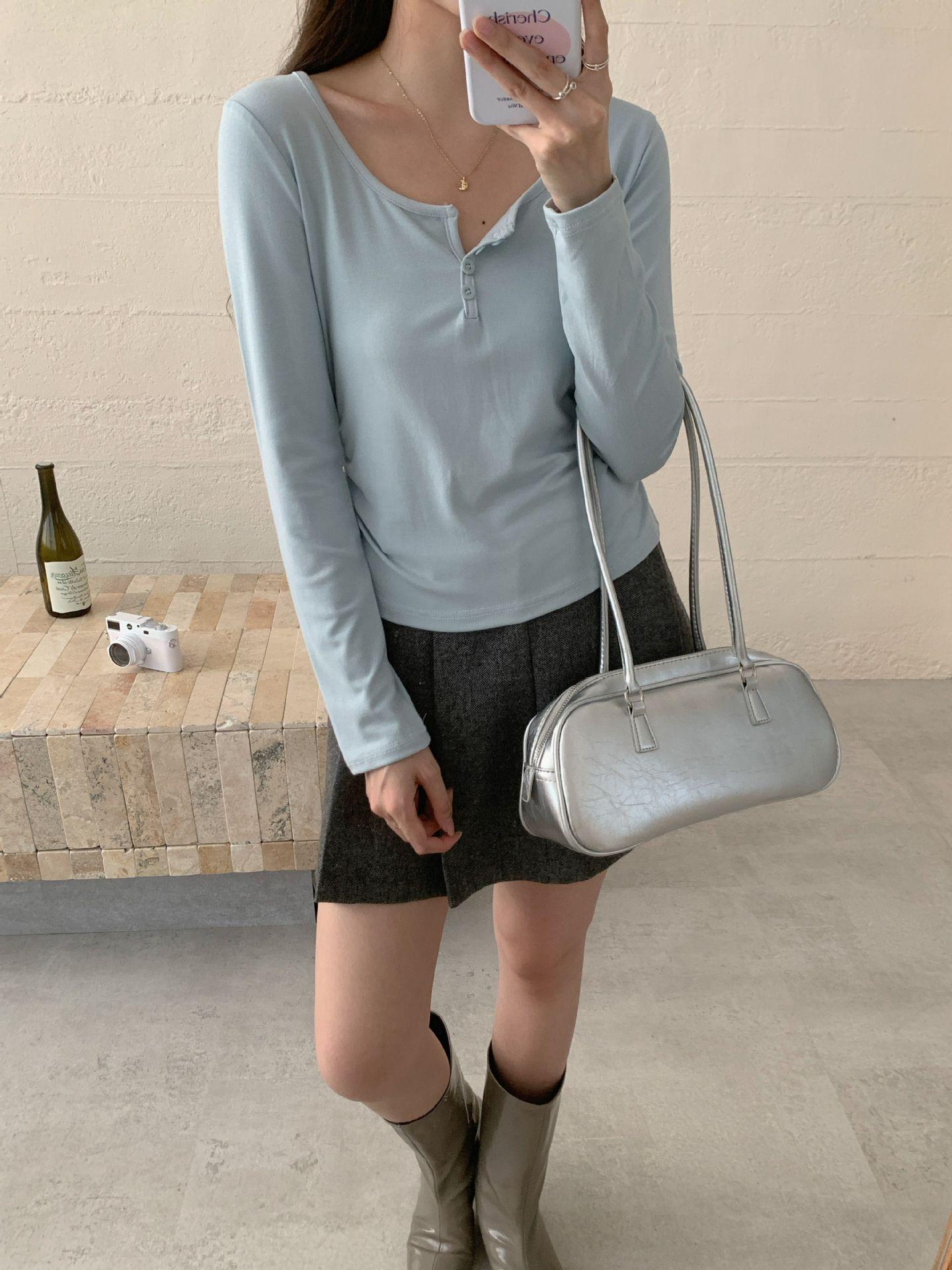 Nueva Camiseta de Manga Larga para Primavera y Otoño para Mujer con Cuello Medio Abierto y Diseño de Botones, Camiseta Base Adelgazante y para Afinar para Chica Hot, Top para Ropa Interior