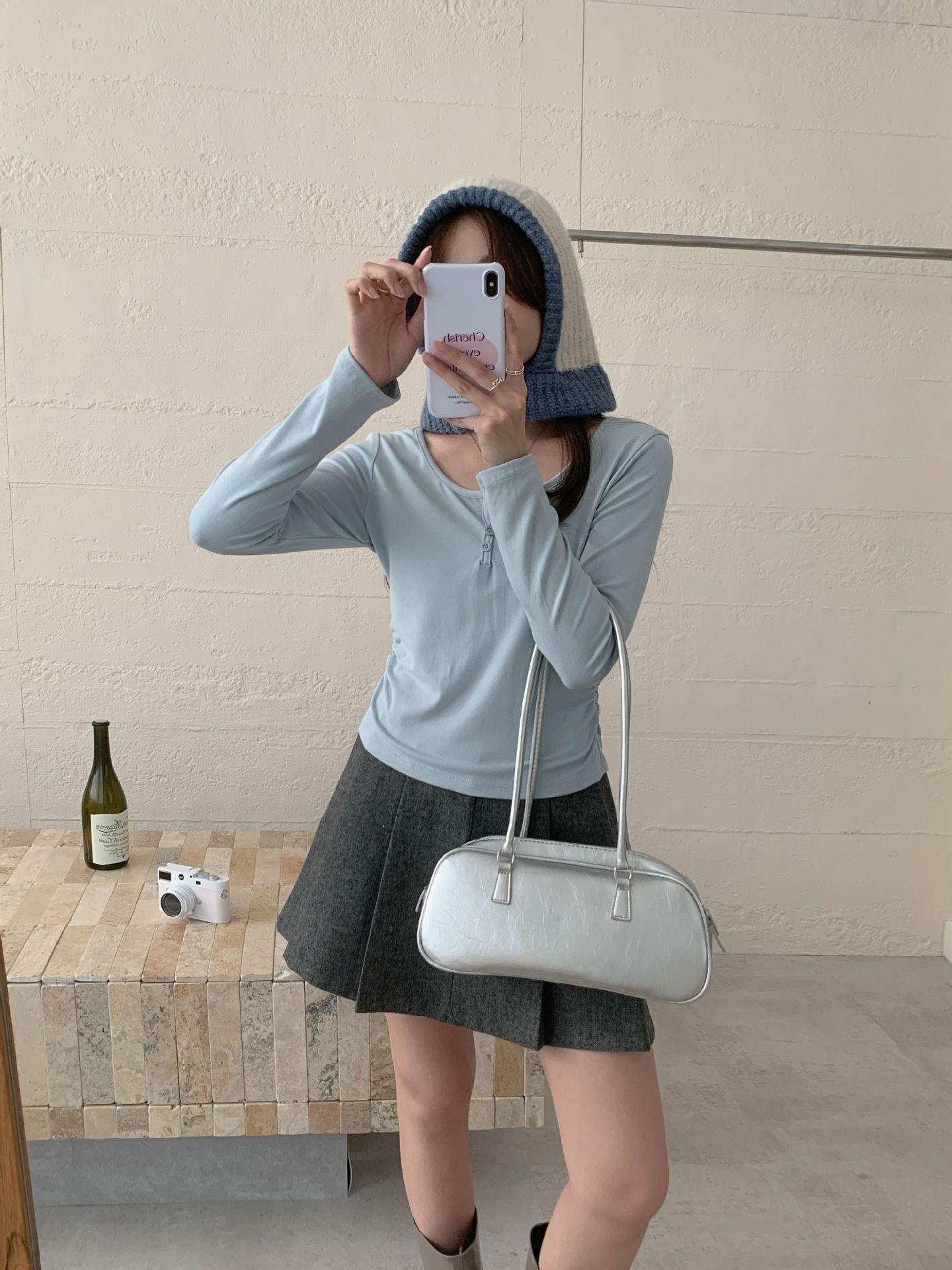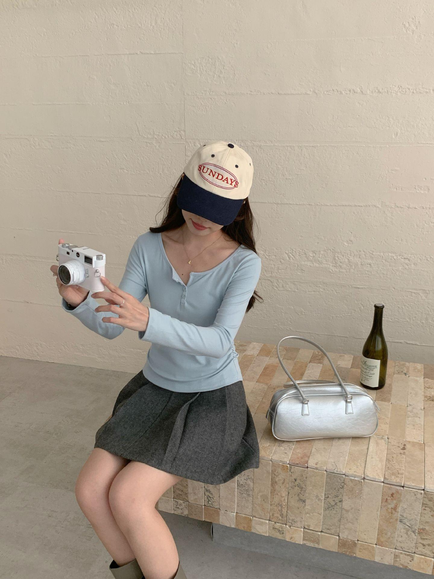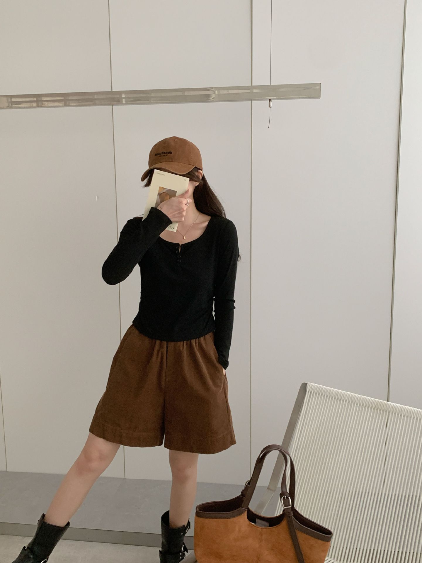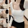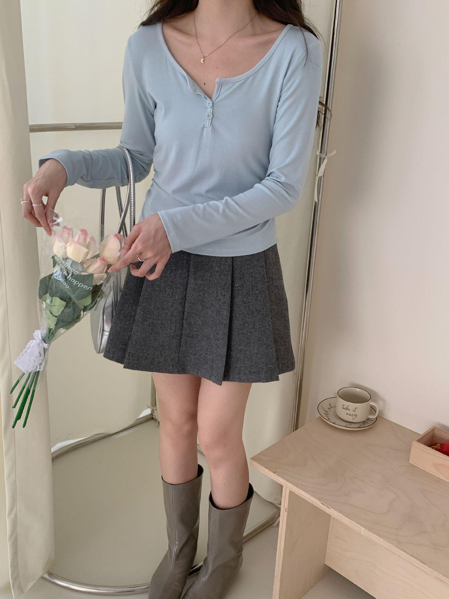 Nueva Camiseta de Manga Larga para Primavera y Otoño para Mujer con Cuello Medio Abierto y Diseño de Botones, Camiseta Base Adelgazante y para Afinar para Chica Hot, Top para Ropa Interior