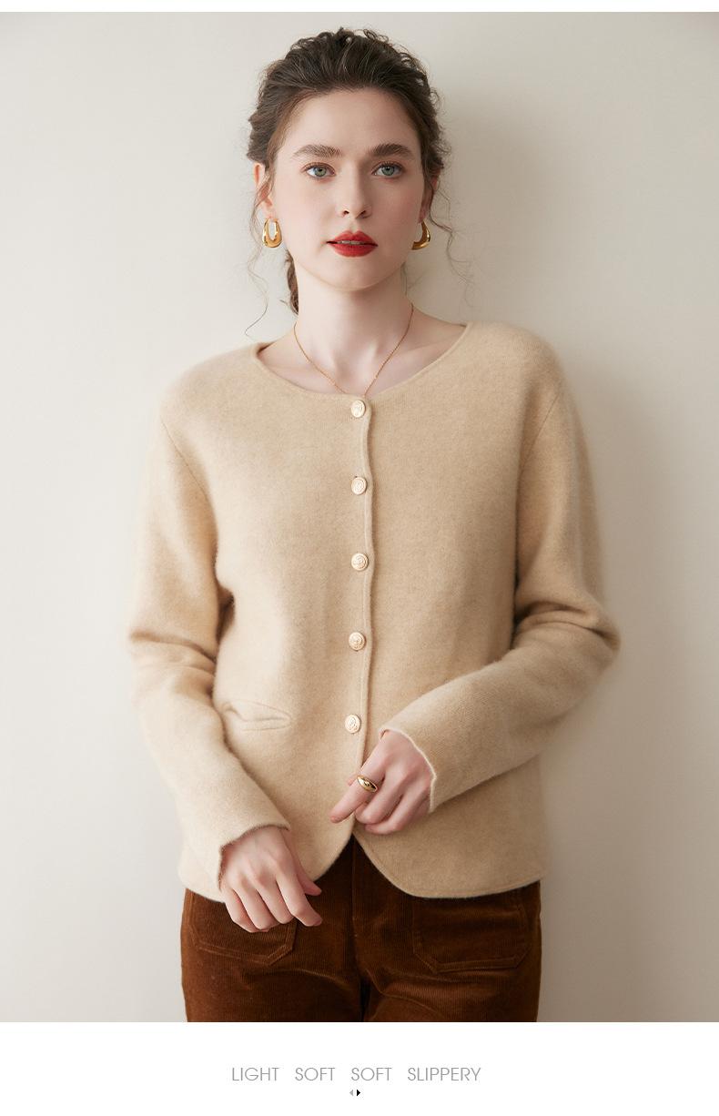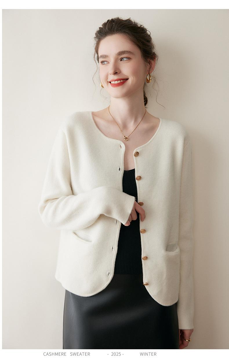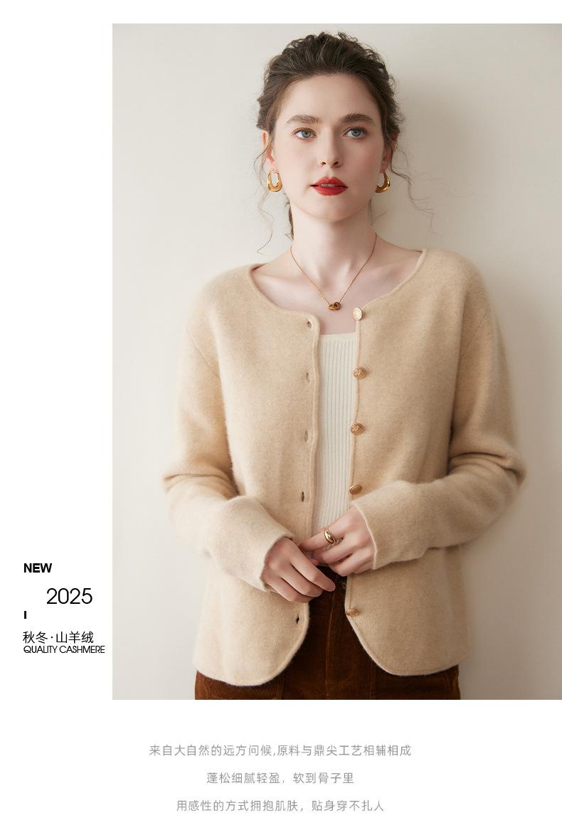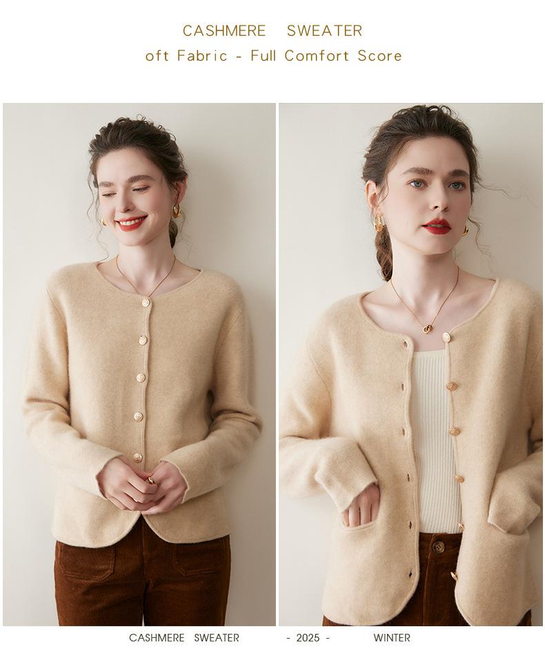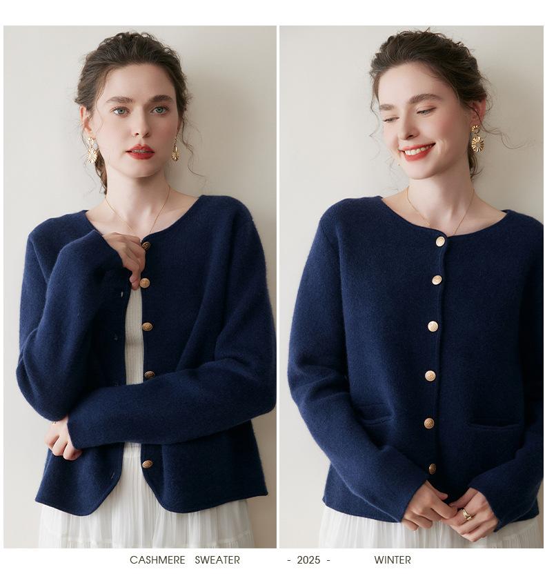 2025 Otoño/Invierno Nuevo Estilo Cachemira Moda Cárdigan de Punto para Mujer Manga Larga Abrigo Suéter Versátil Suelto Cómodo Cálido