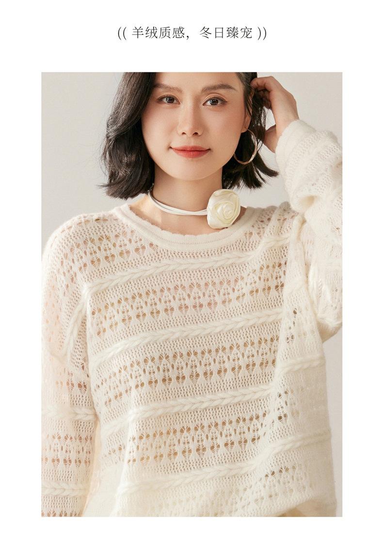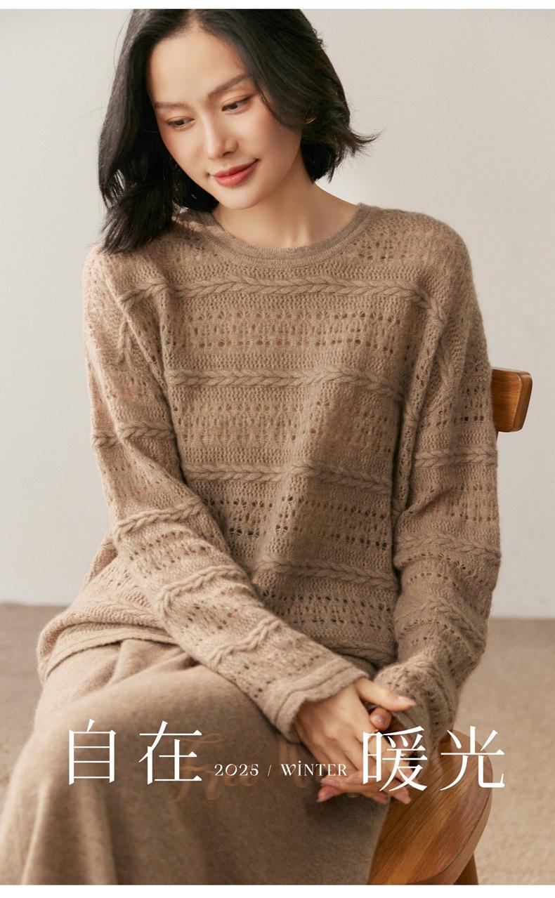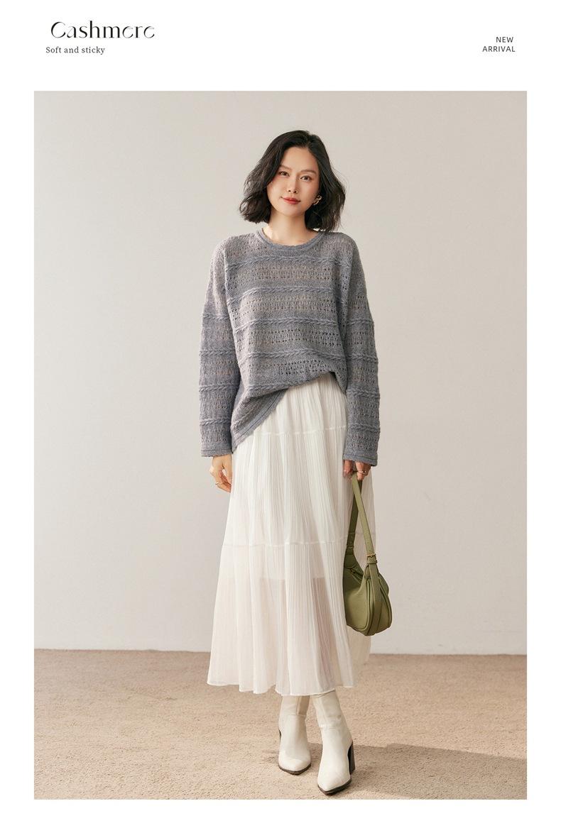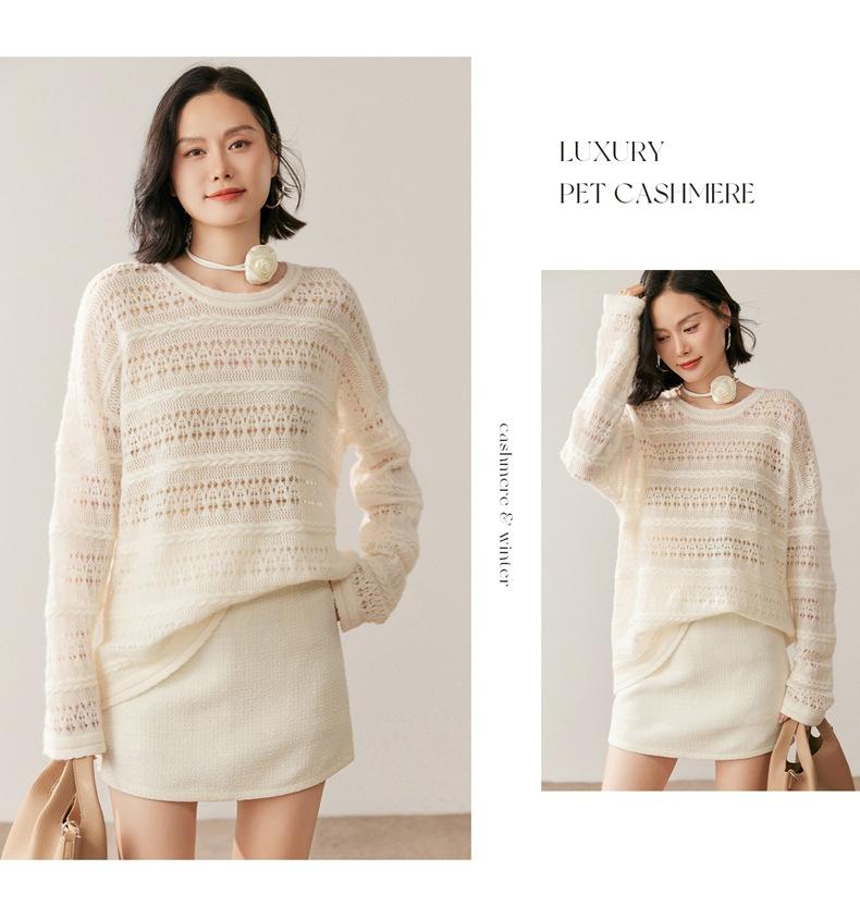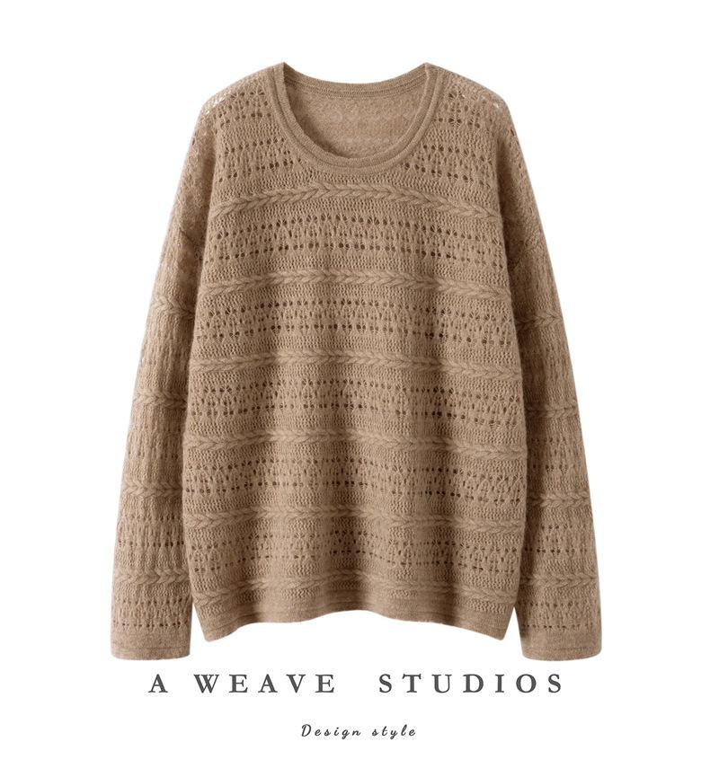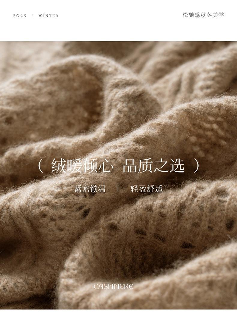 Otoño/Invierno 2025 Nuevo Tejido de Cachemira Capa Base Calado Color Sólido Suave y Cómodo Holgado Commute de Mujer