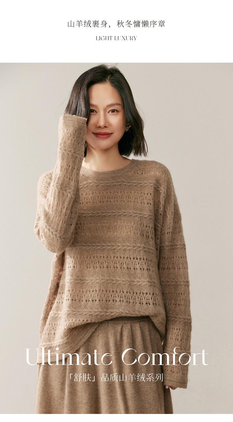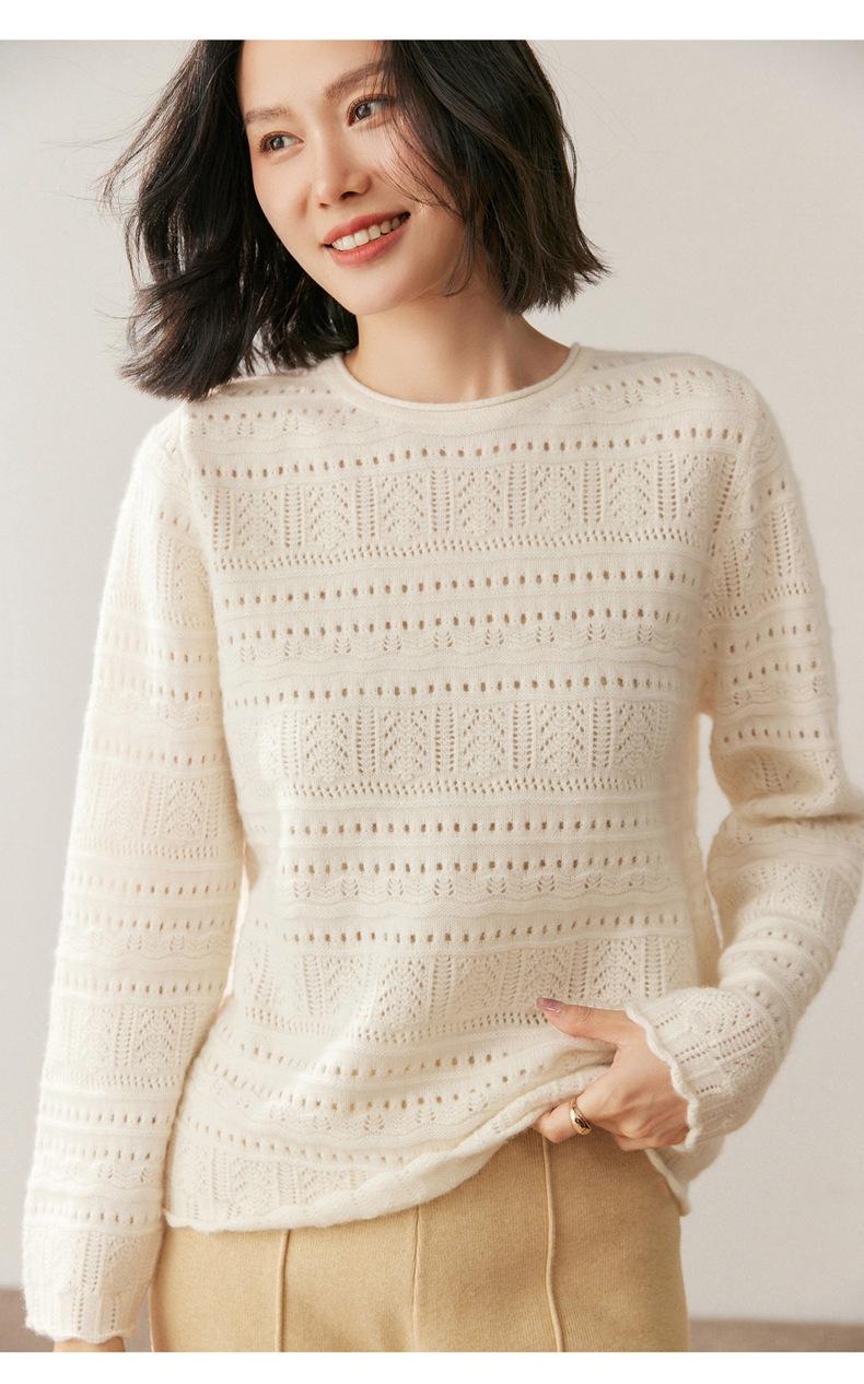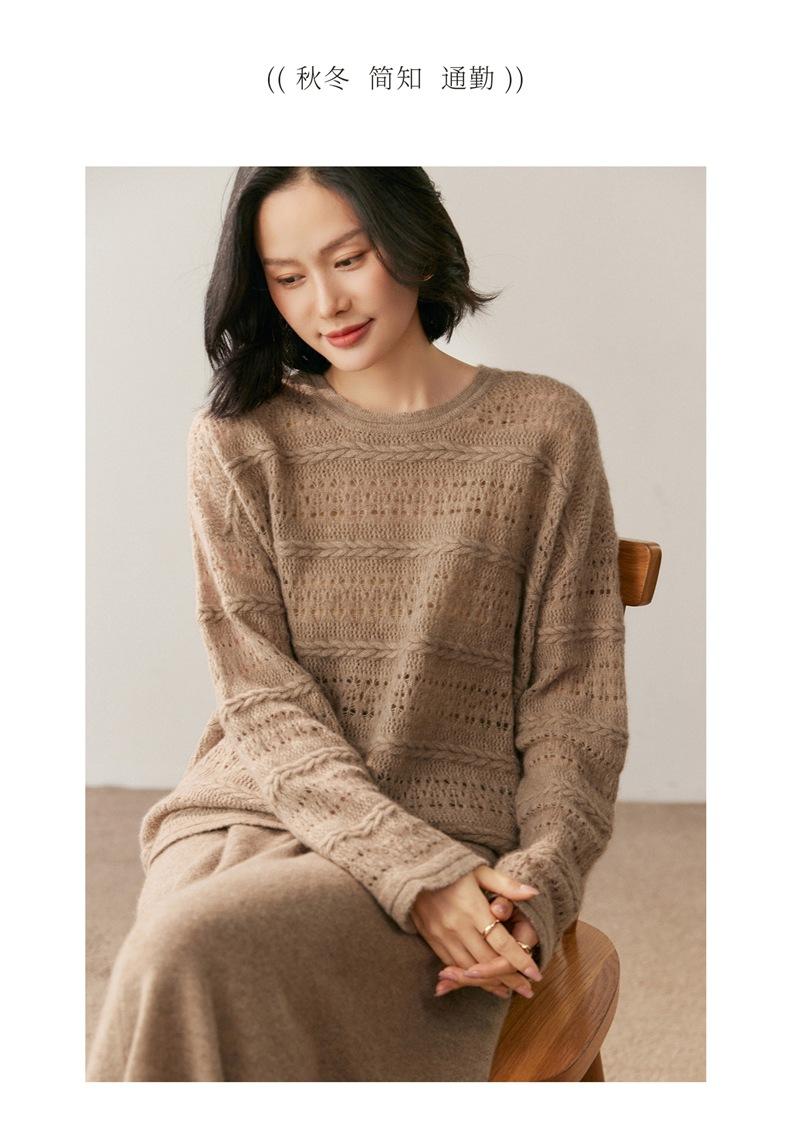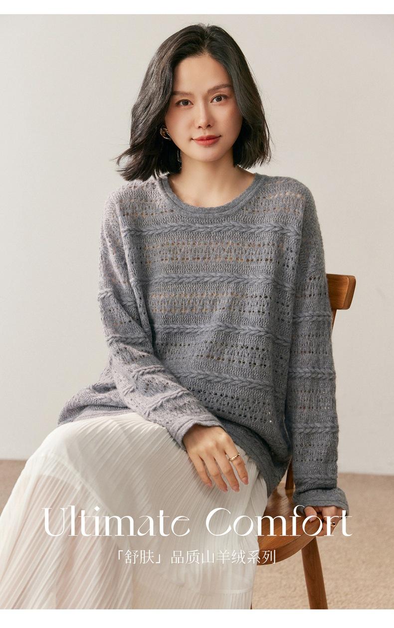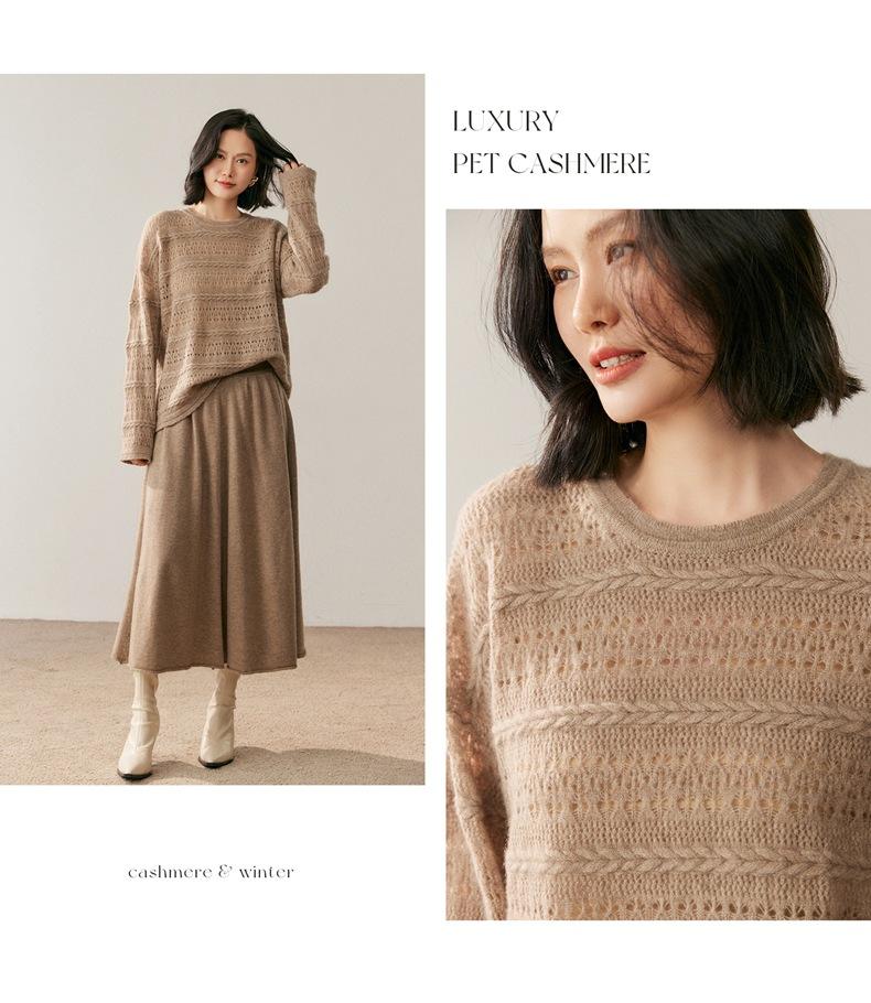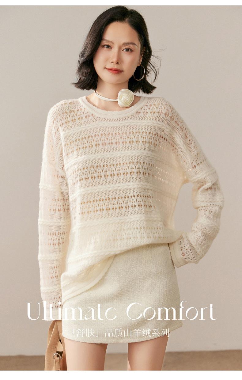 Otoño/Invierno 2025 Nuevo Tejido de Cachemira Capa Base Calado Color Sólido Suave y Cómodo Holgado Commute de Mujer