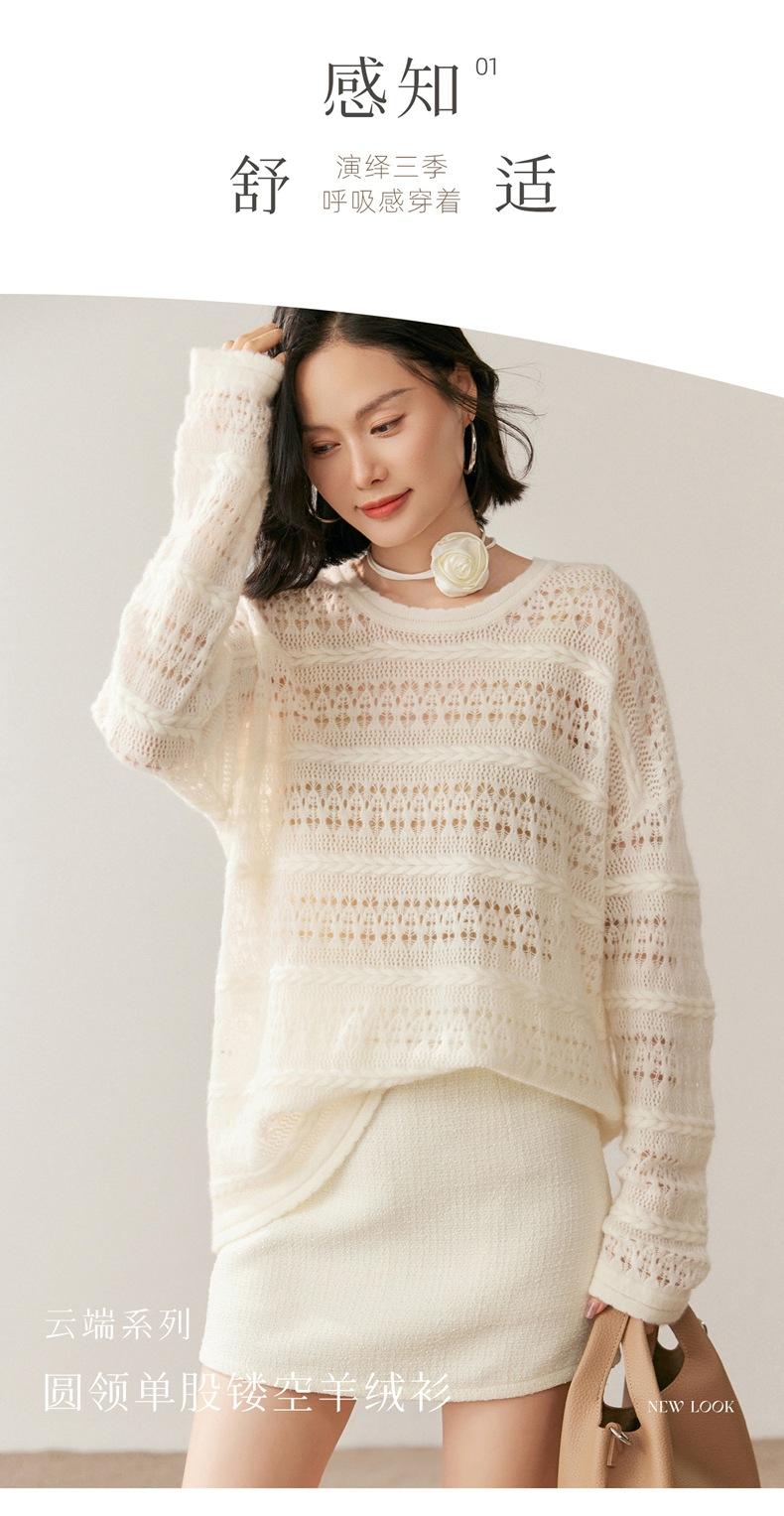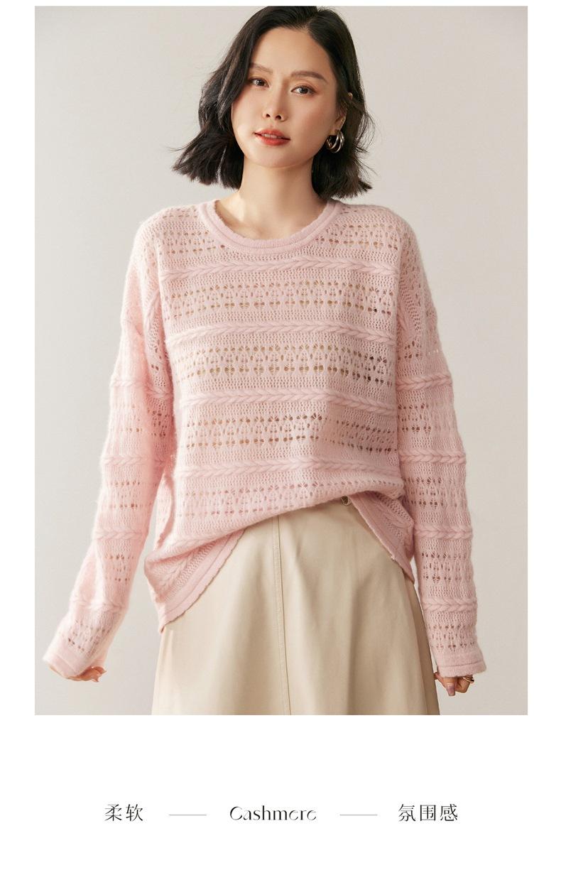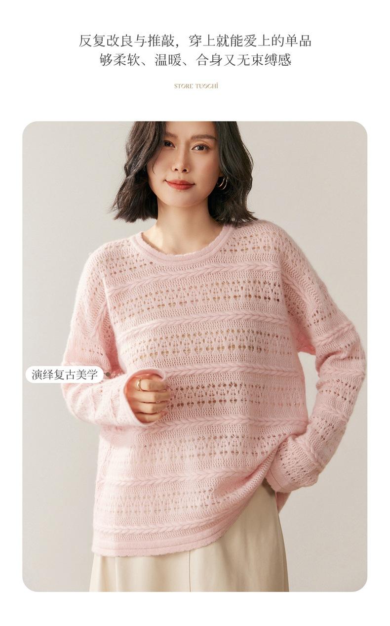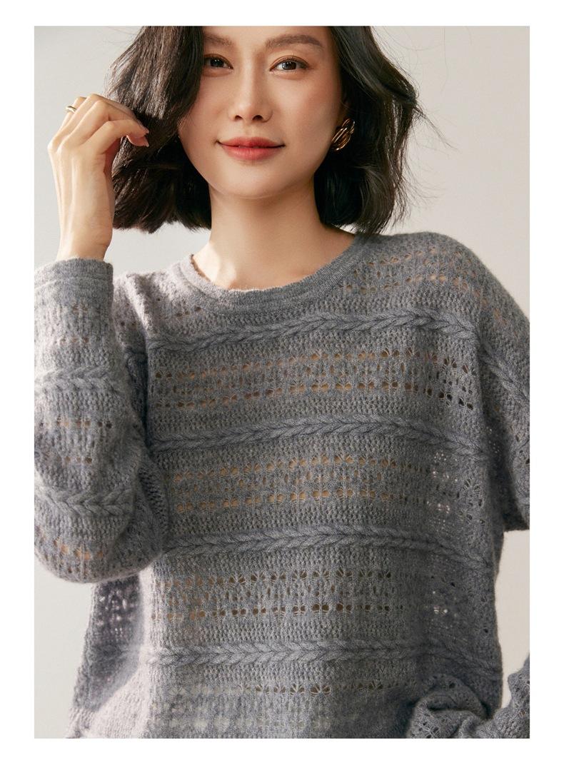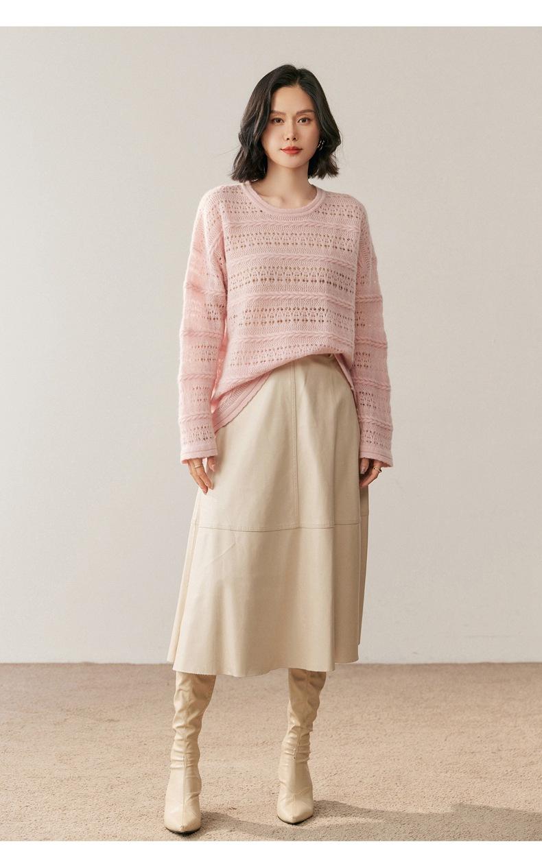 Otoño/Invierno 2025 Nuevo Tejido de Cachemira Capa Base Calado Color Sólido Suave y Cómodo Holgado Commute de Mujer