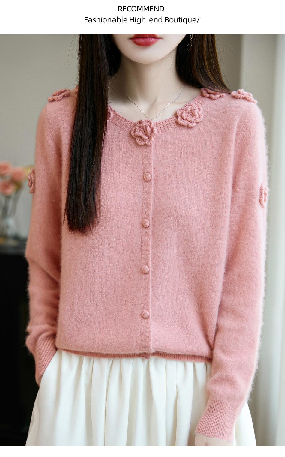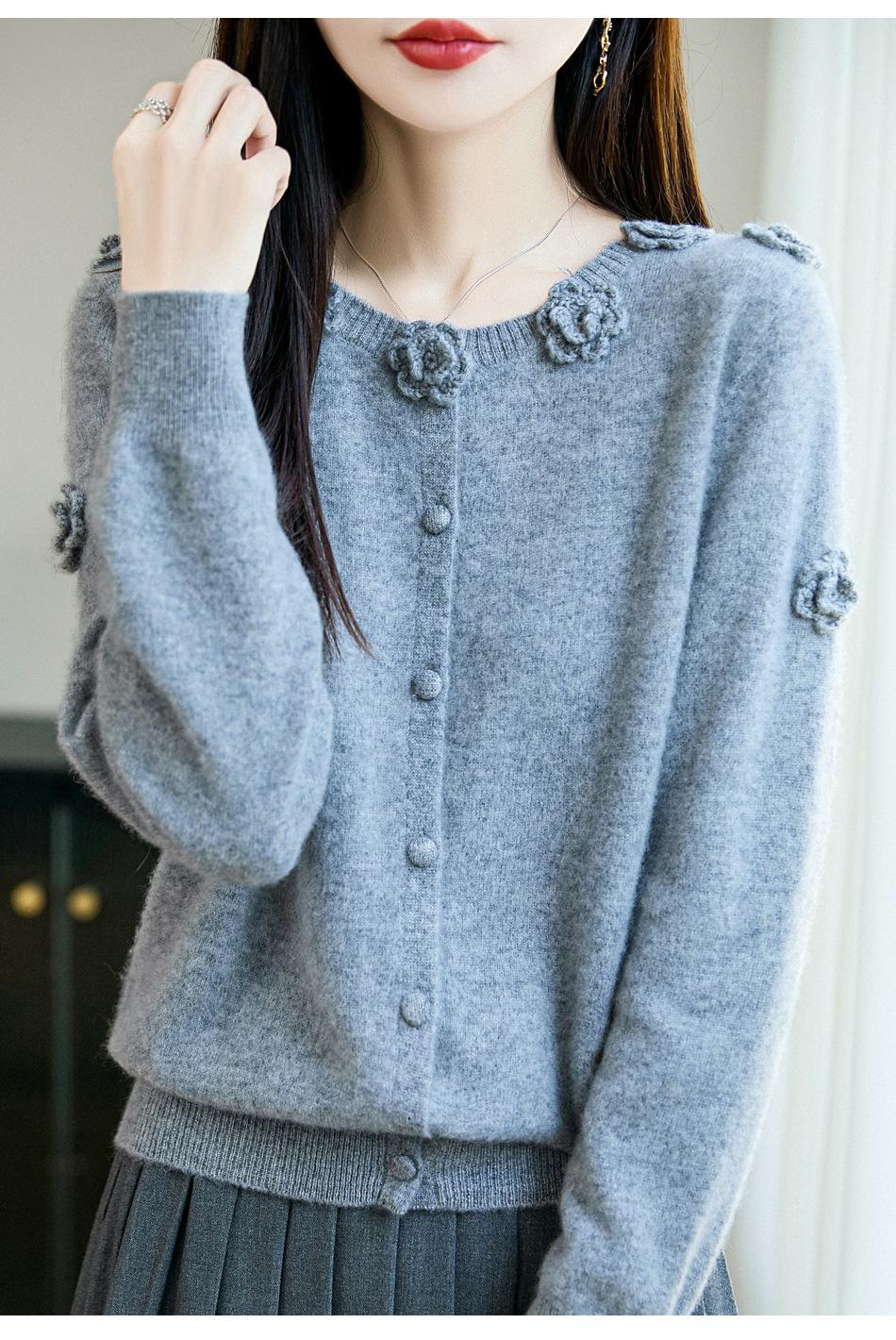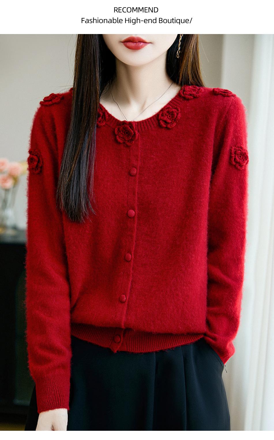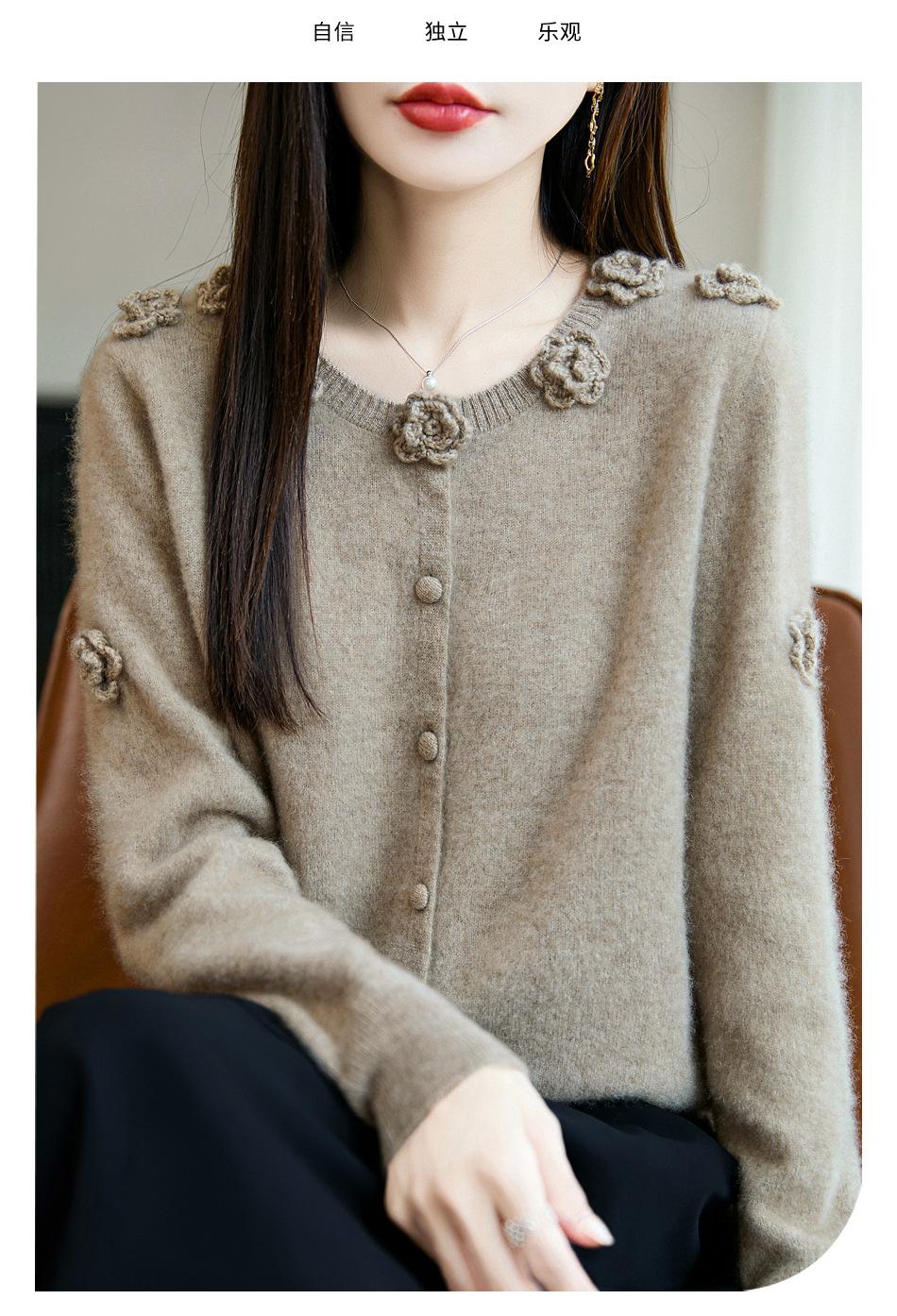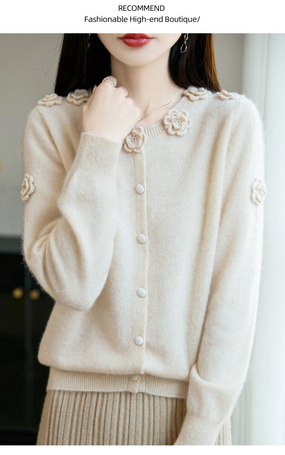 Suéter 100% Lana Pura Cuello Redondo Tejido Cárdigan para Mujer Nueve Rosas Hecho a Mano Crochet Suéter Abrigo Otoño e Invierno Nuevo