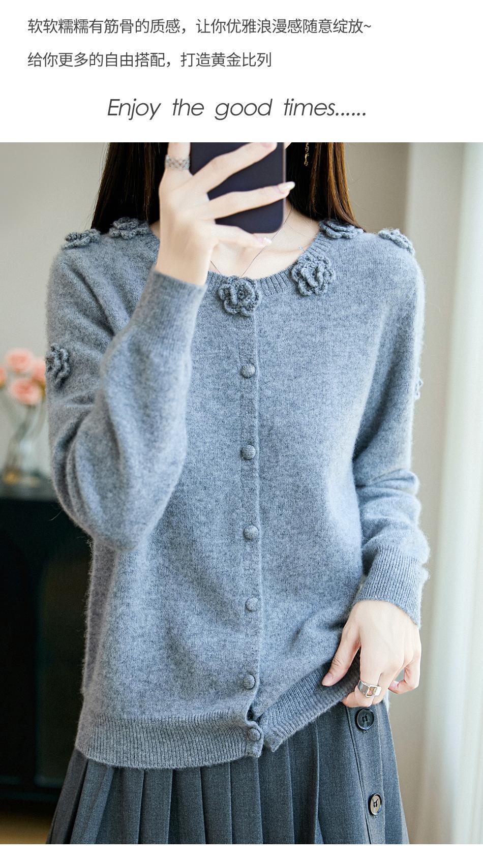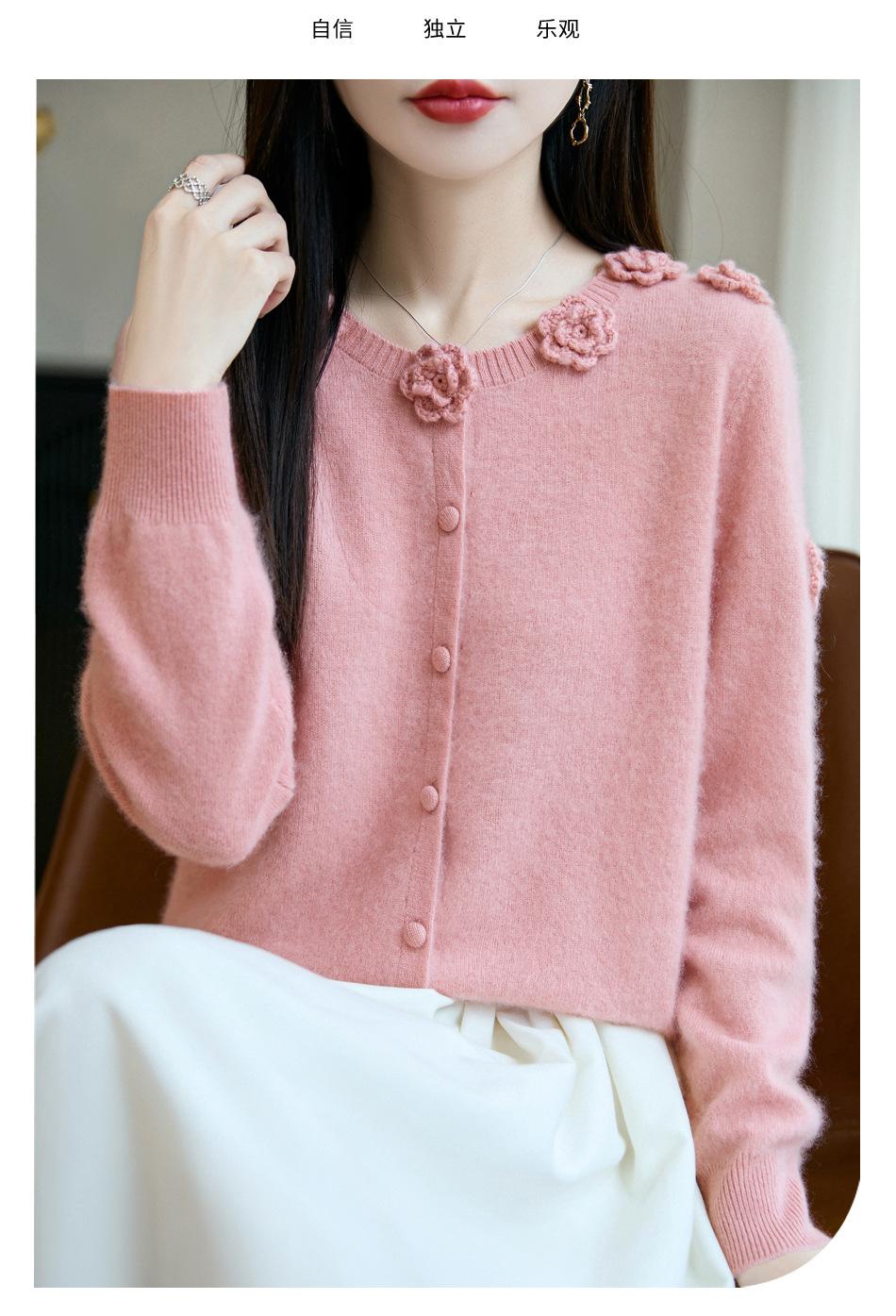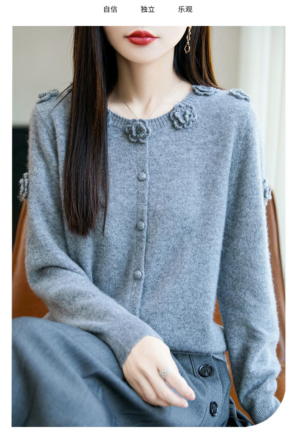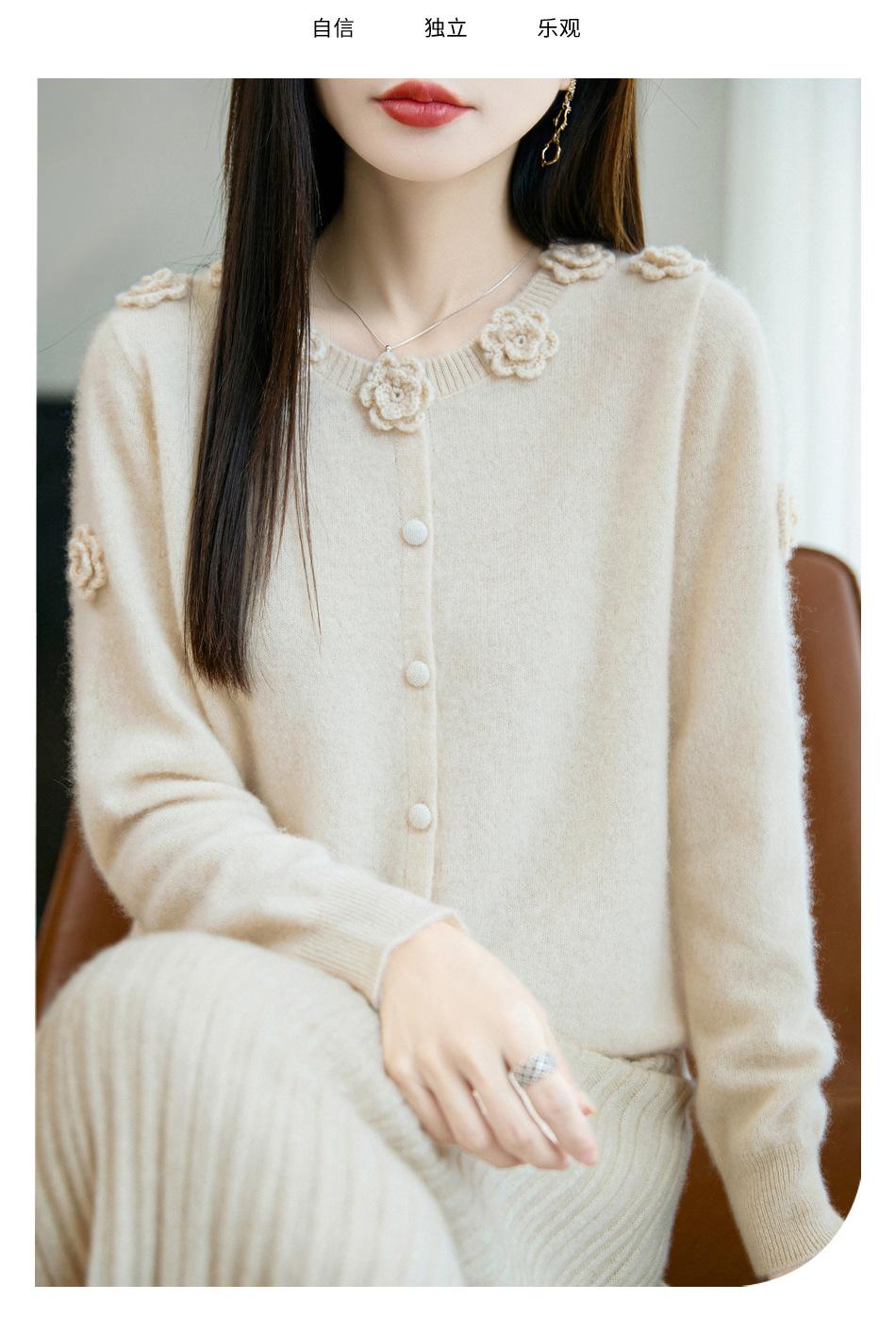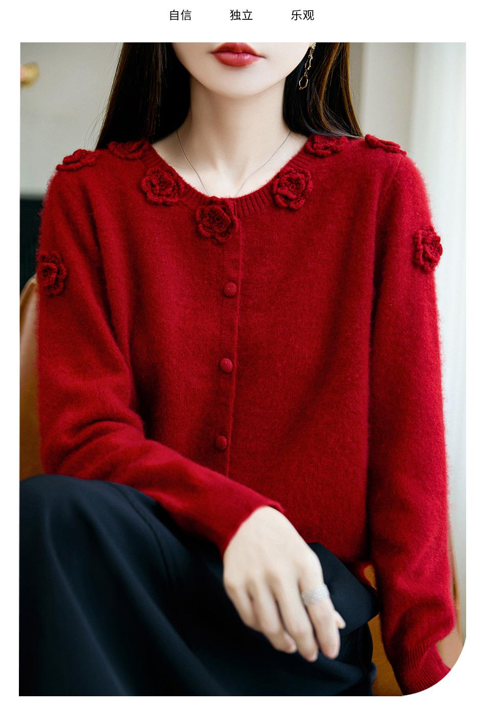 Suéter 100% Lana Pura Cuello Redondo Tejido Cárdigan para Mujer Nueve Rosas Hecho a Mano Crochet Suéter Abrigo Otoño e Invierno Nuevo