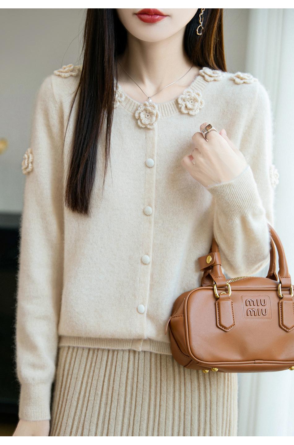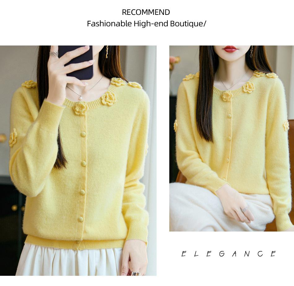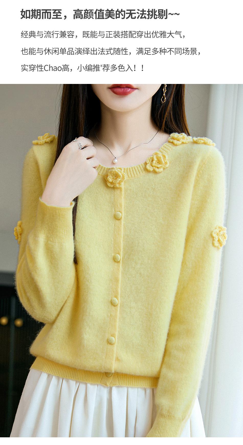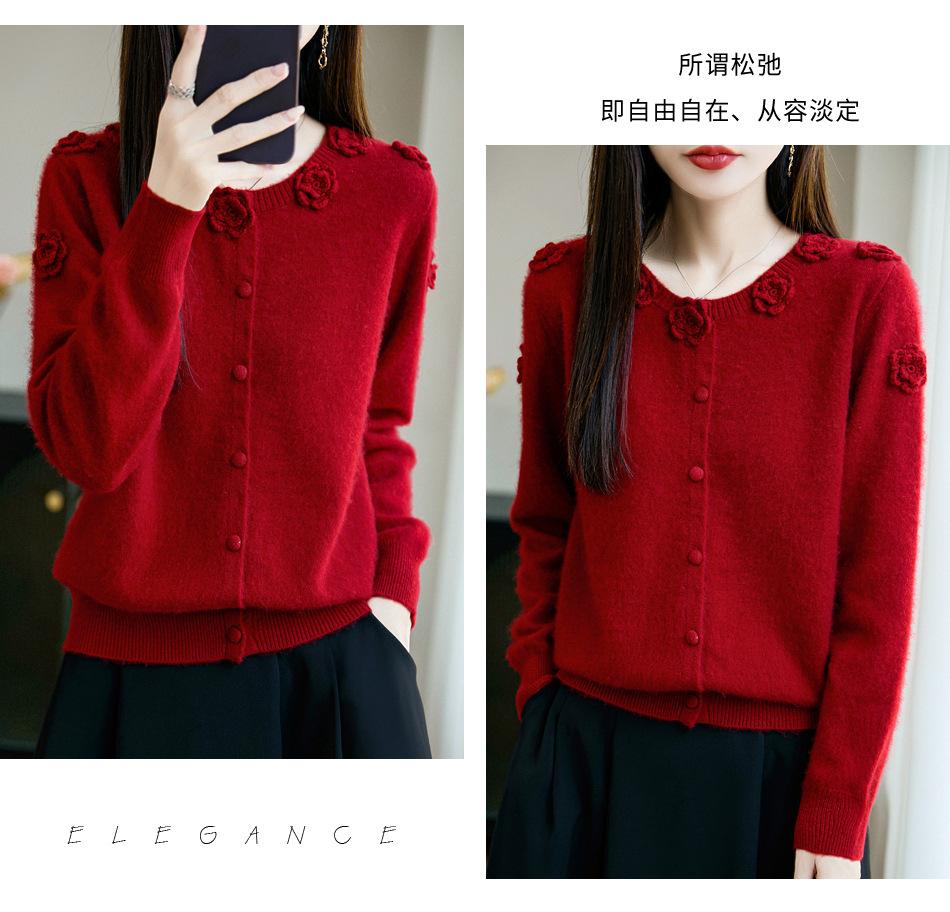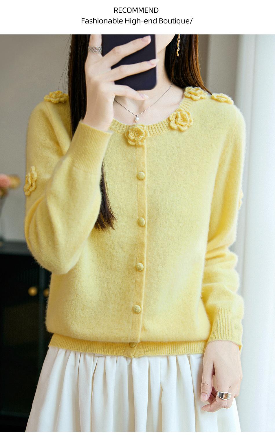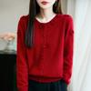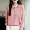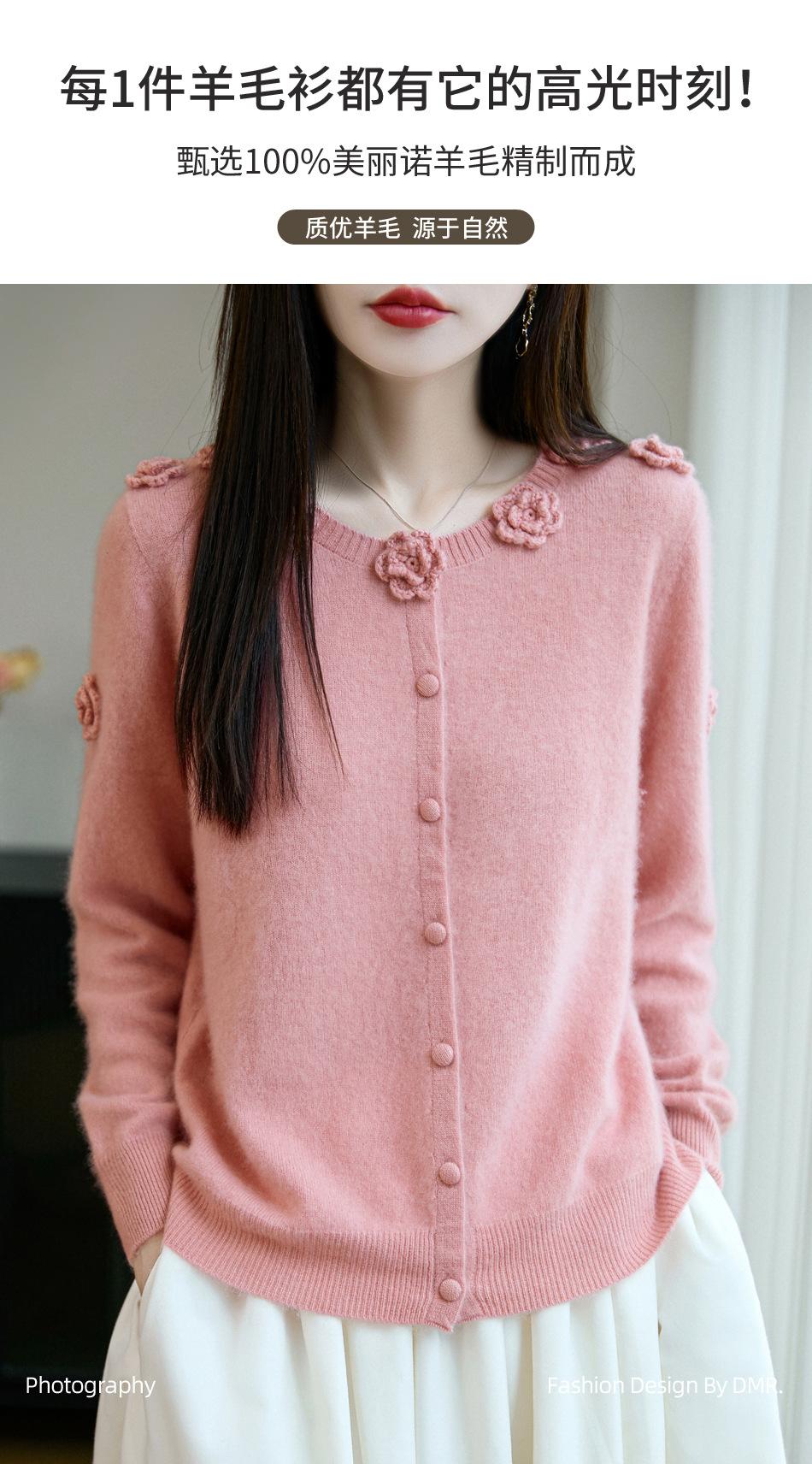 Suéter 100% Lana Pura Cuello Redondo Tejido Cárdigan para Mujer Nueve Rosas Hecho a Mano Crochet Suéter Abrigo Otoño e Invierno Nuevo