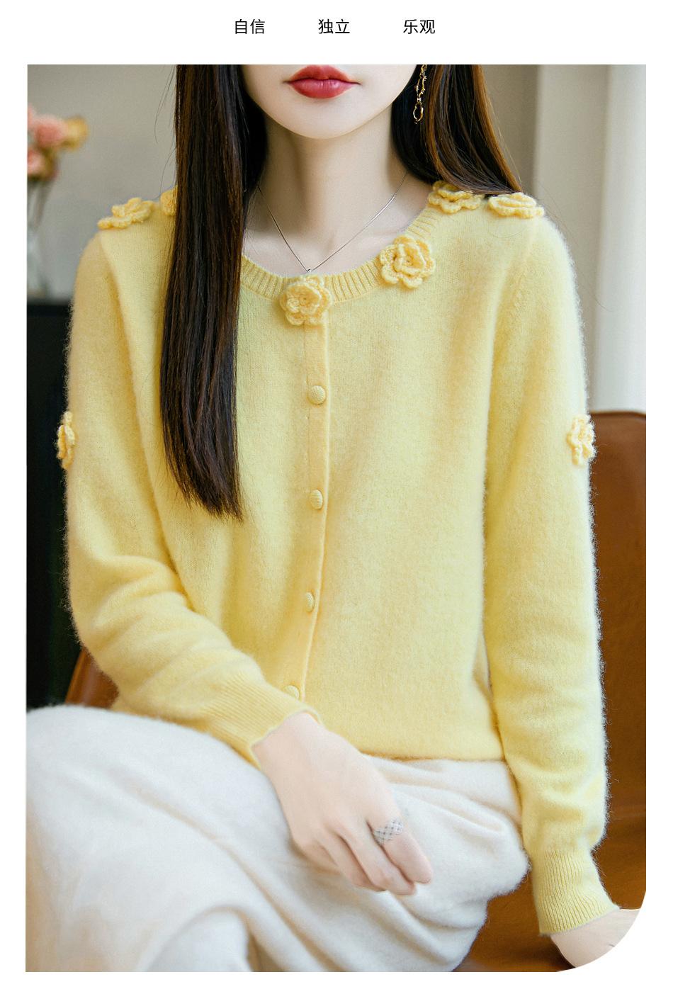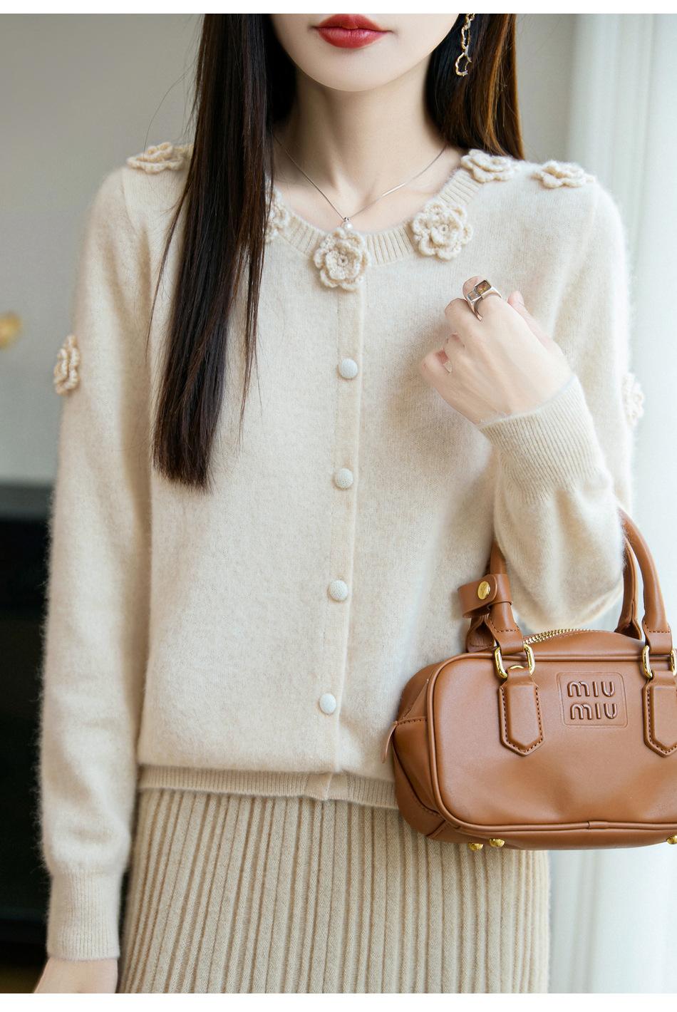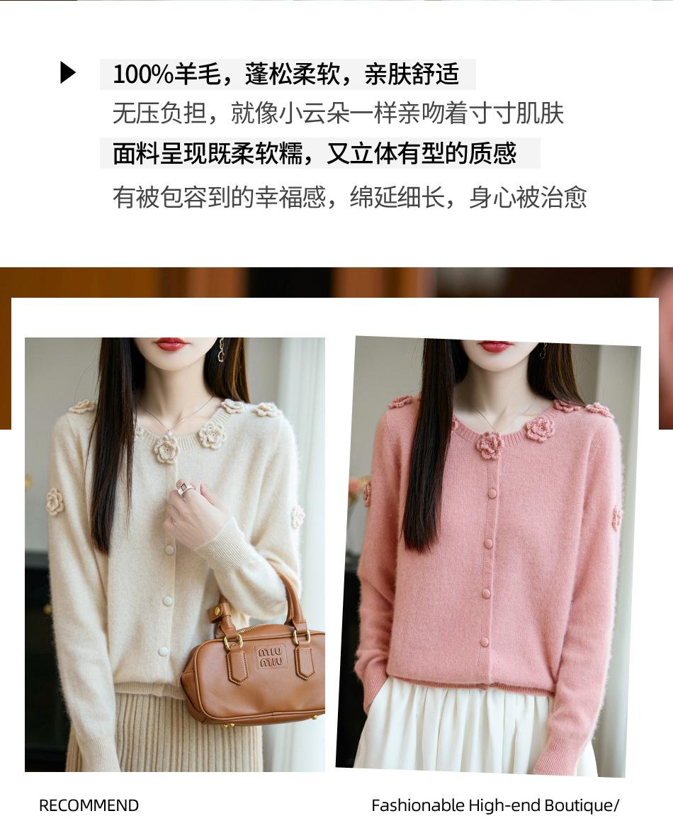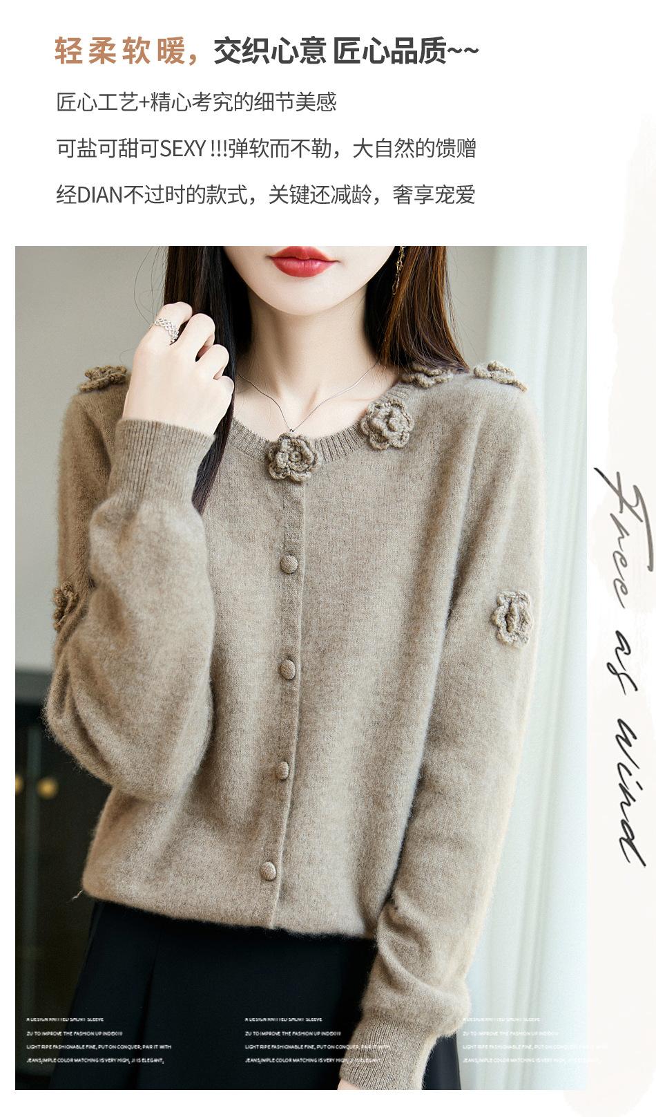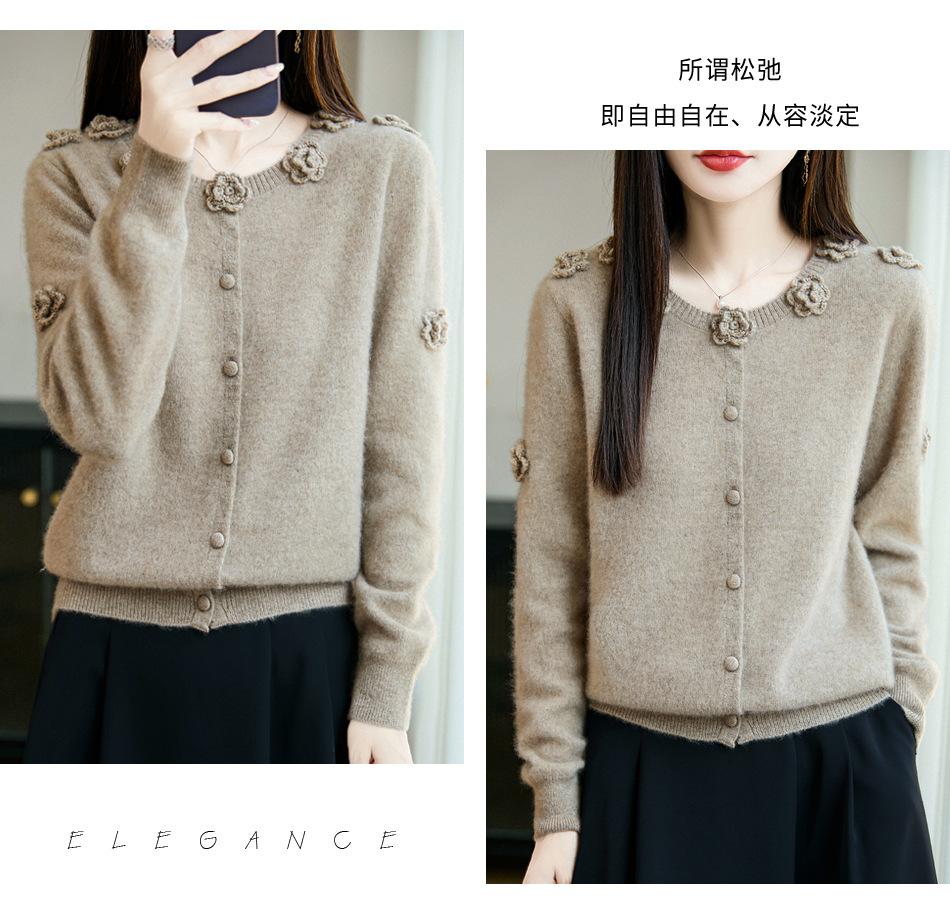 Suéter 100% Lana Pura Cuello Redondo Tejido Cárdigan para Mujer Nueve Rosas Hecho a Mano Crochet Suéter Abrigo Otoño e Invierno Nuevo