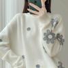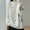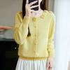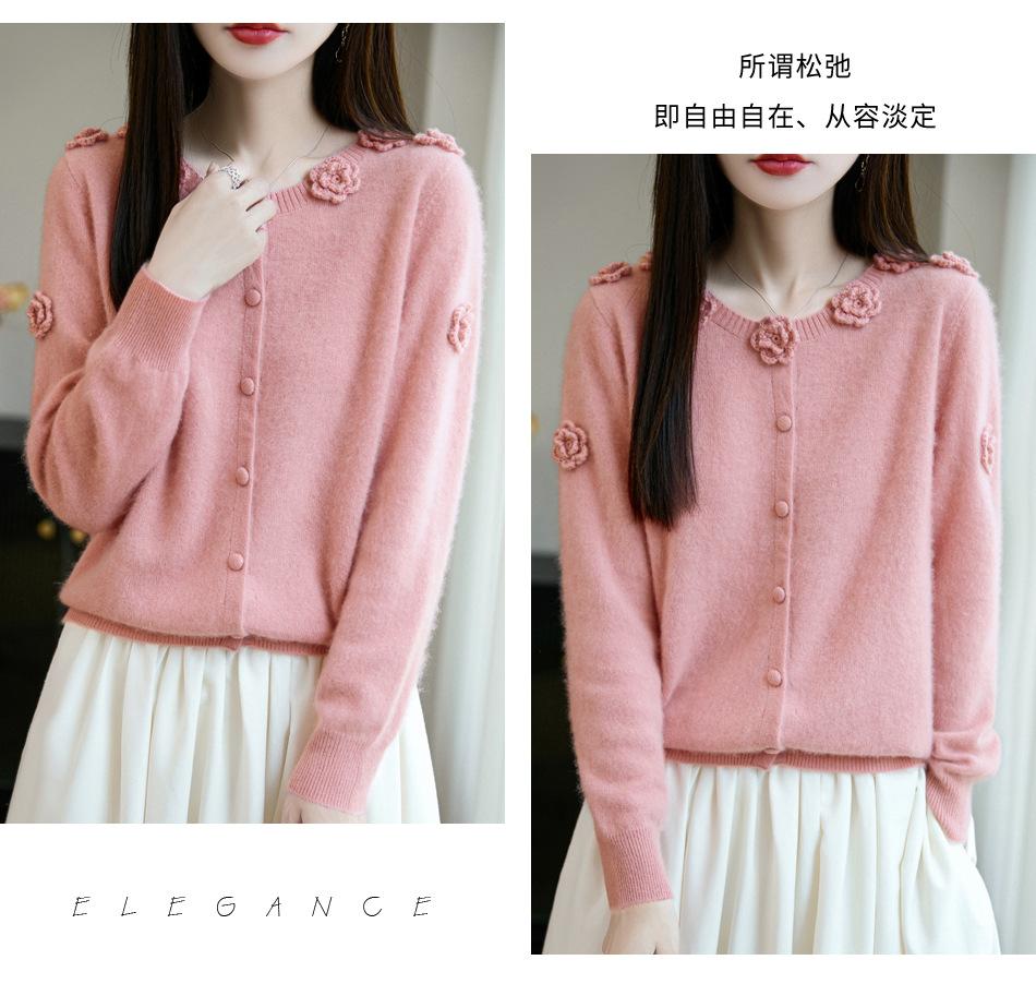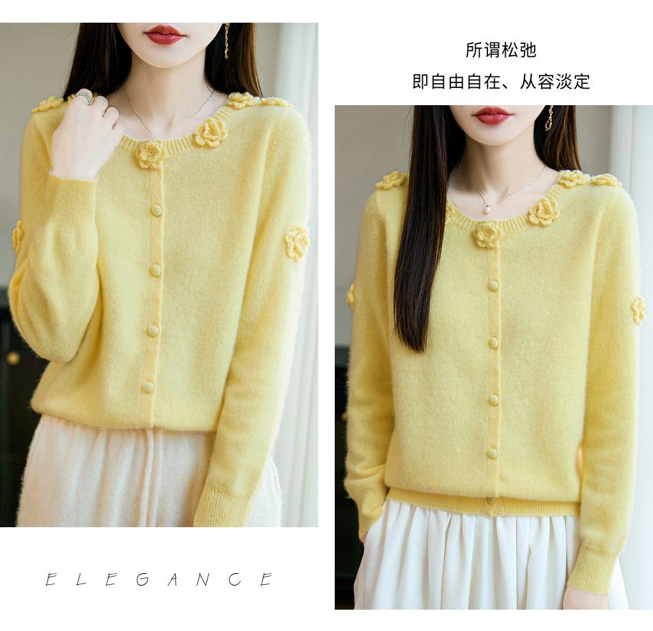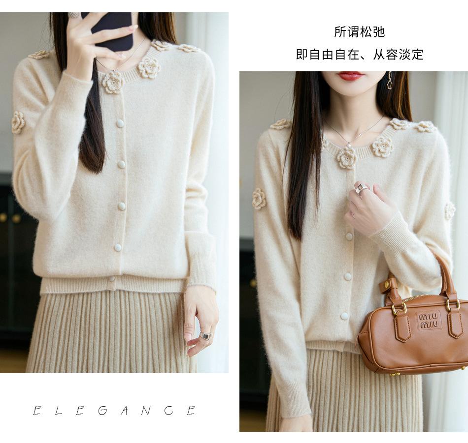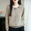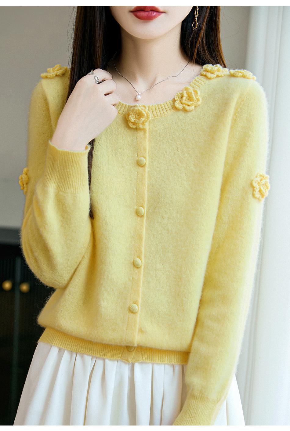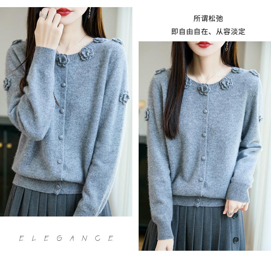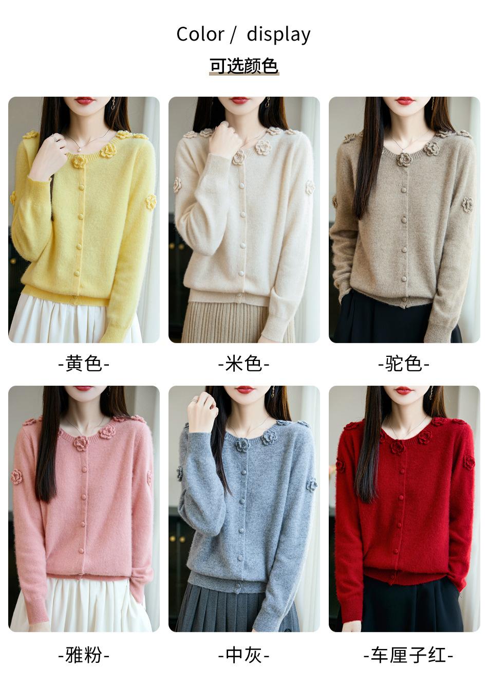 Suéter 100% Lana Pura Cuello Redondo Tejido Cárdigan para Mujer Nueve Rosas Hecho a Mano Crochet Suéter Abrigo Otoño e Invierno Nuevo