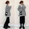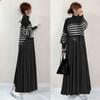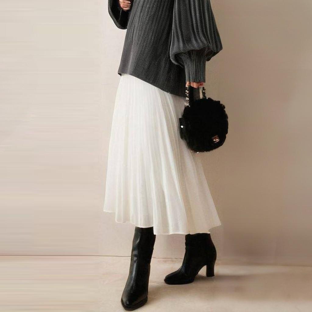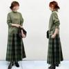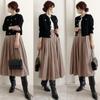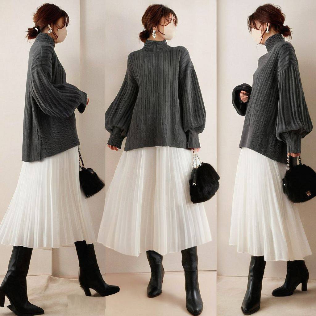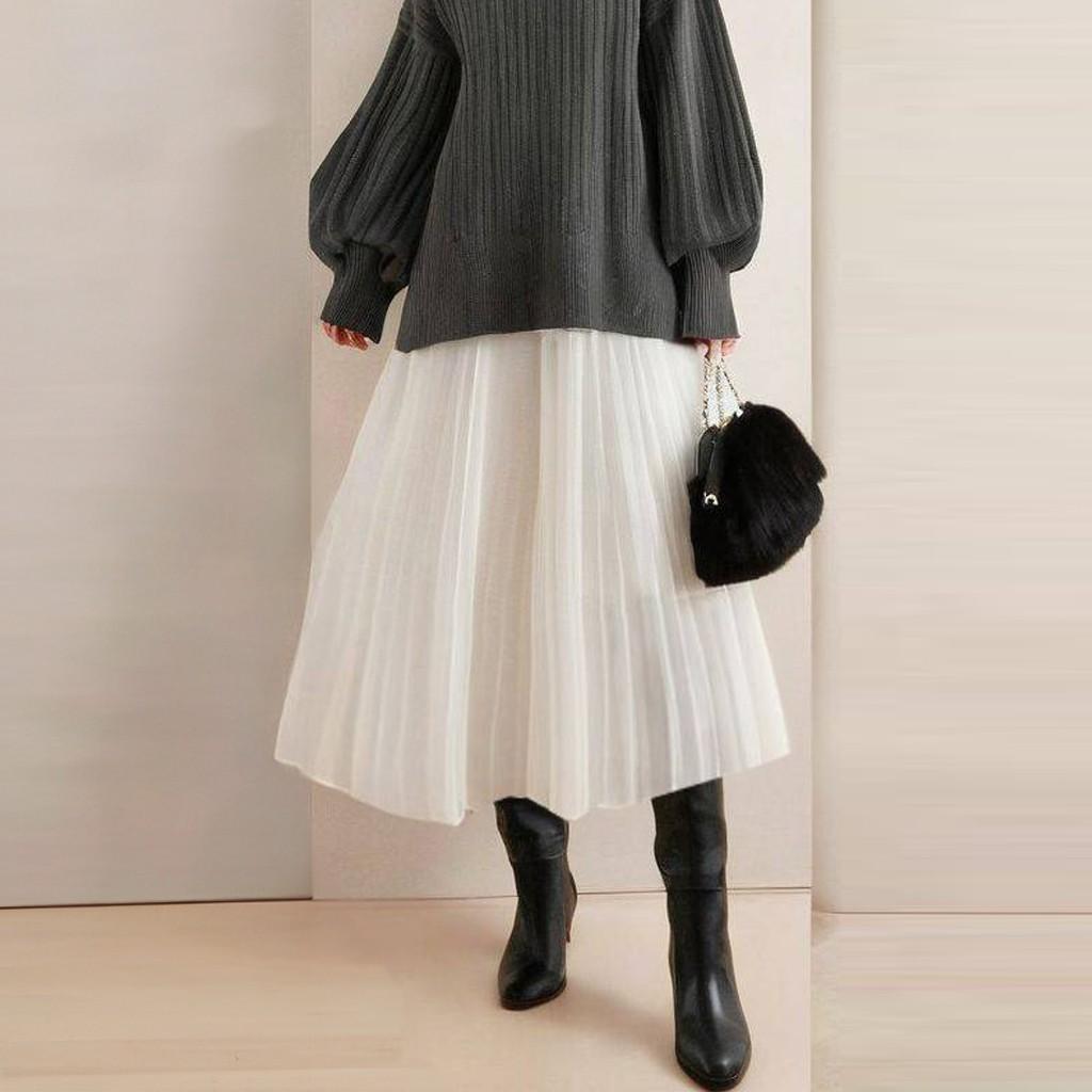 Conjunto de dos piezas de suéter y falda plisada con mangas abullonadas y cuello alto suelto japonés de otoño 2024