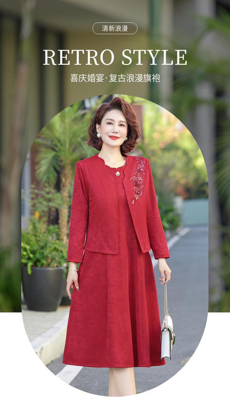 Vestido cheongsam de mediana edad y anciano otoño nuevo vestido de novia conjunto de dos piezas feliz suegra atuendo banquete de boda madre vestido de primavera conjunto de vestido