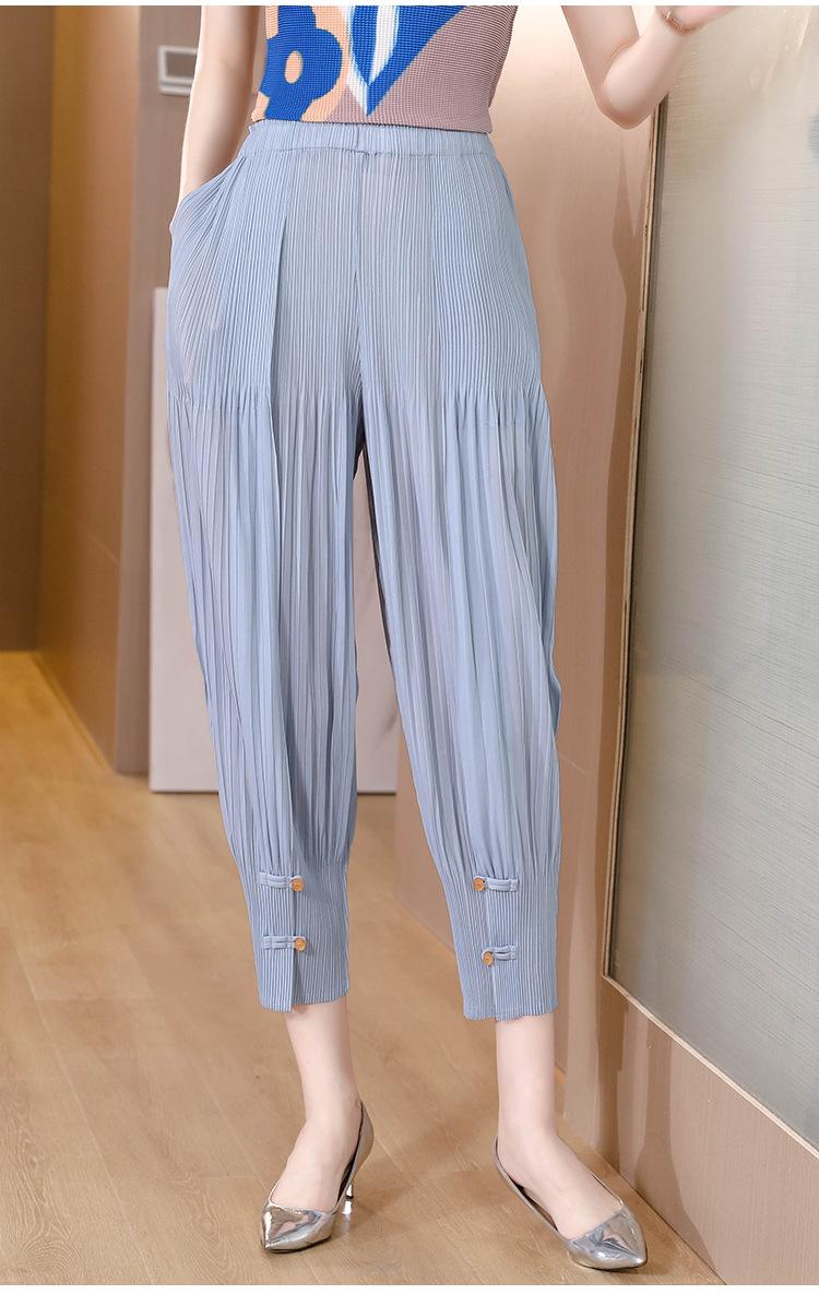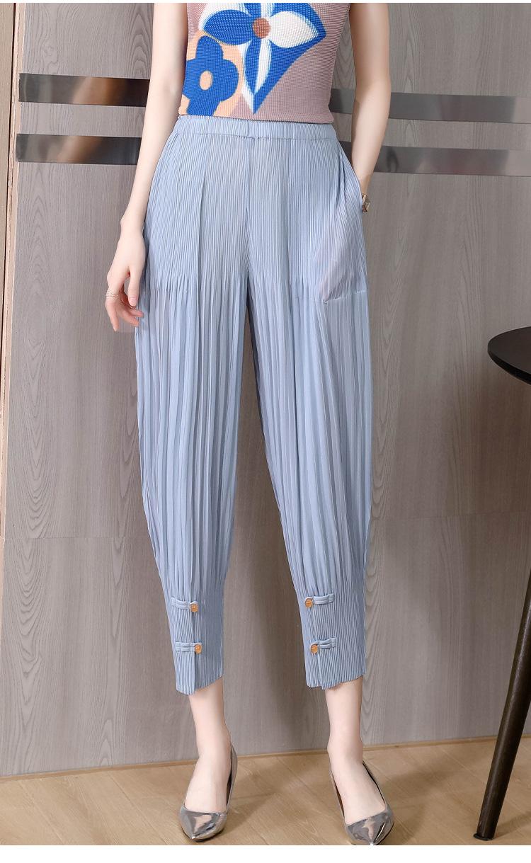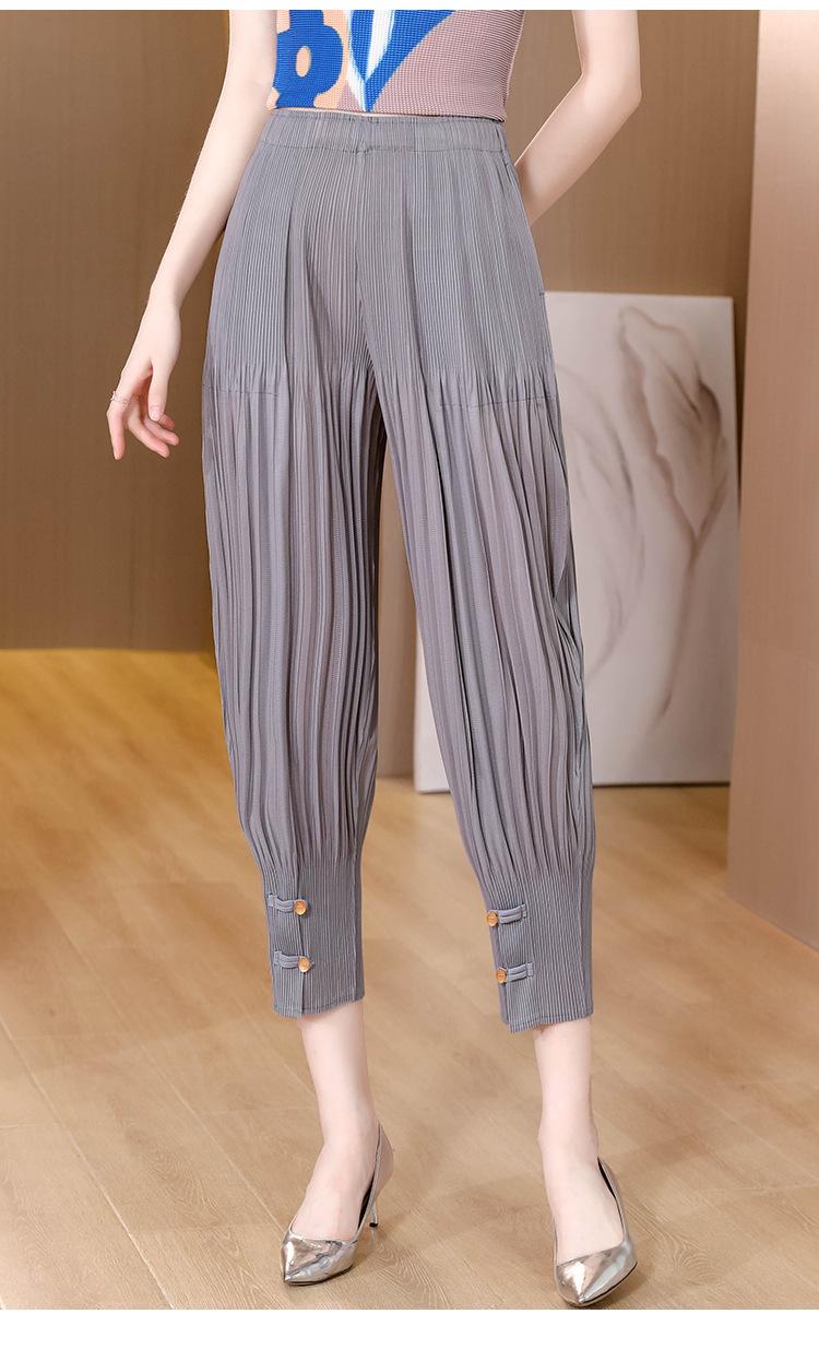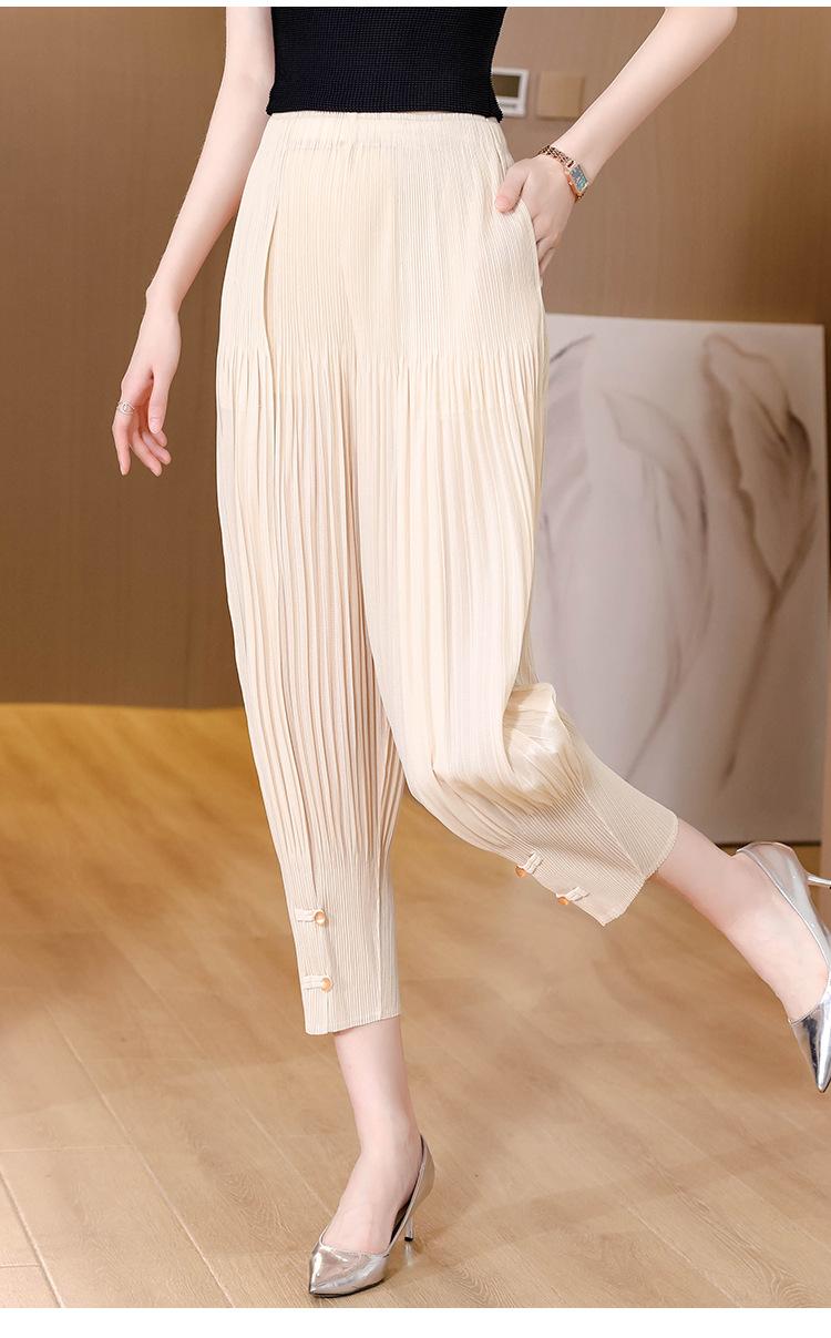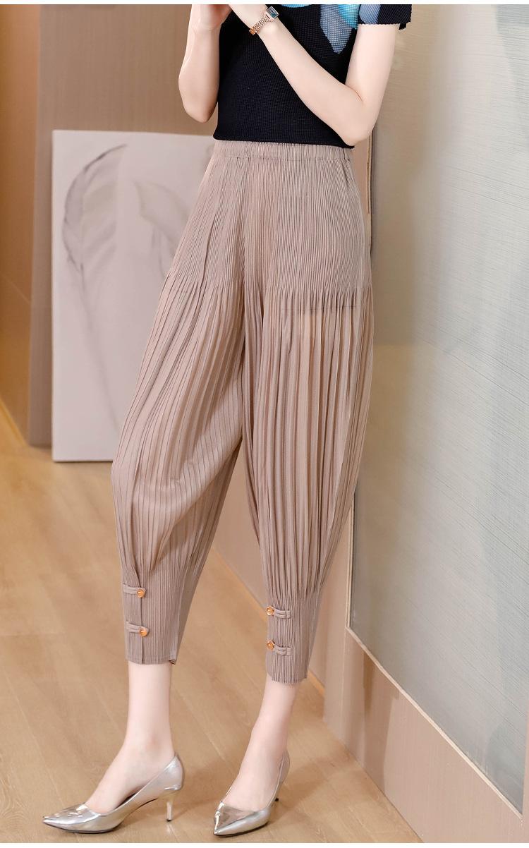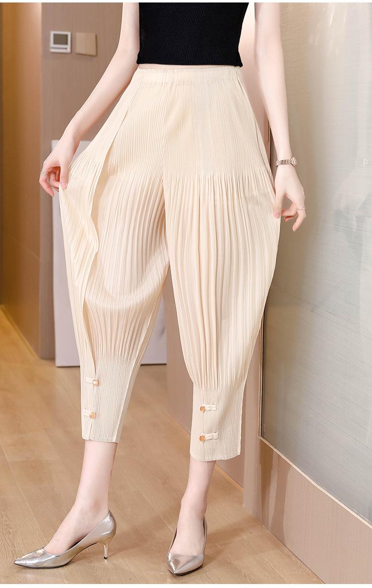 Pantalones plisados 2022 Verano Nuevo Casual Combinable Pantalones de pierna ancha Moderno Elegante Cintura alta Adelgazantes Pantalones plisados