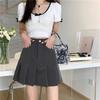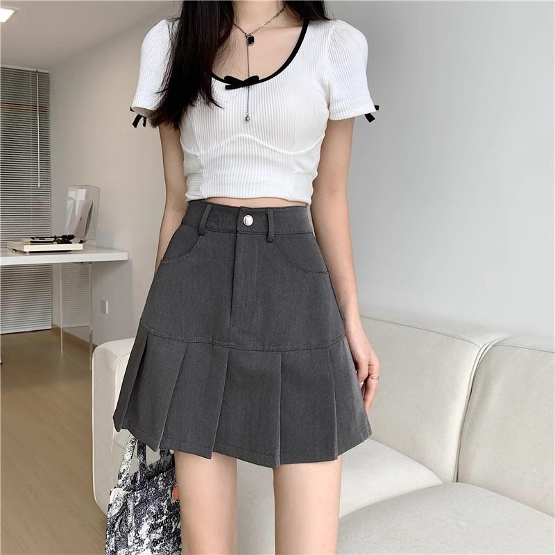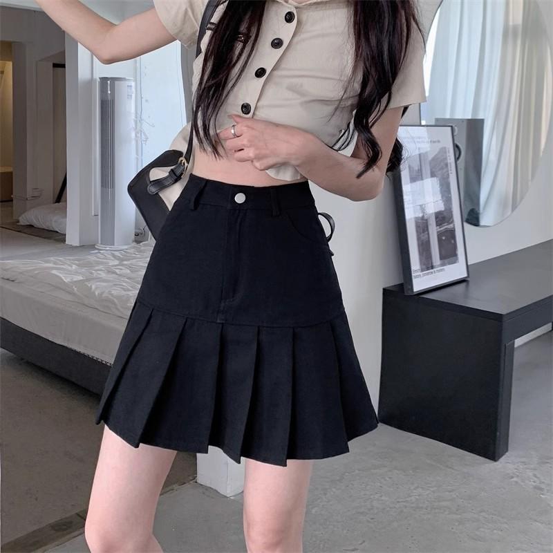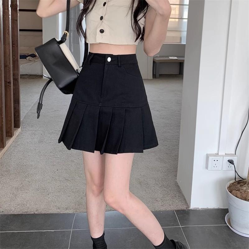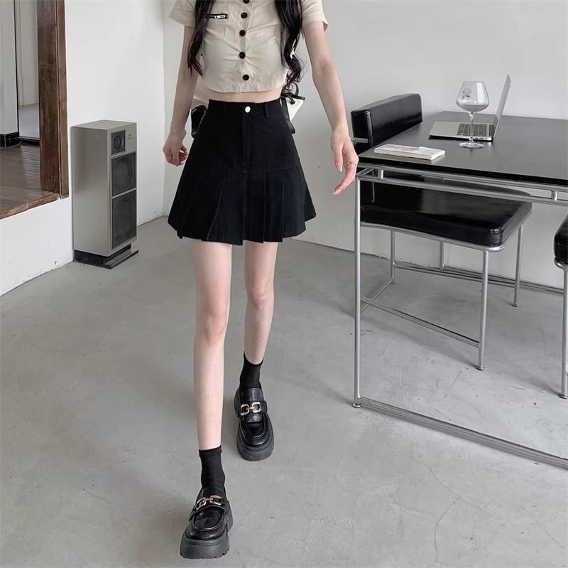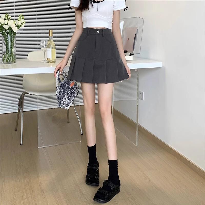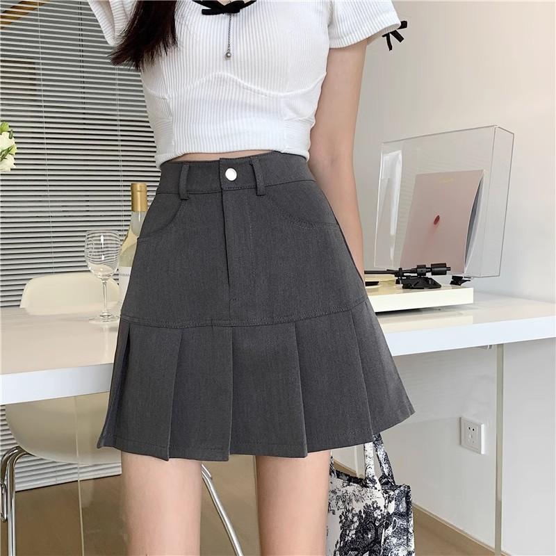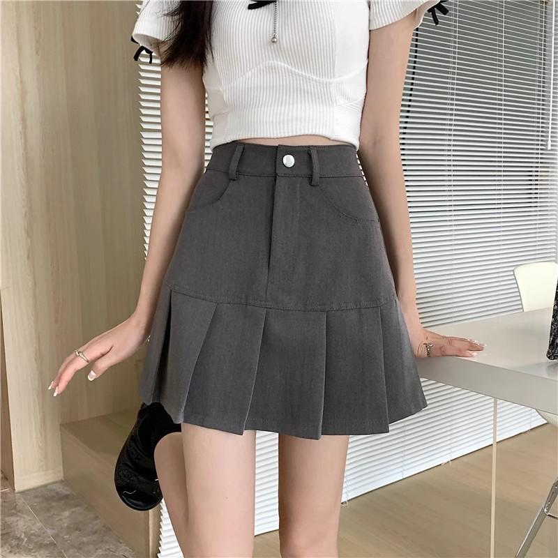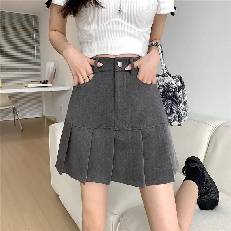 Falda corta de color sólido de cintura alta para mujer 2024 primavera/verano nuevo estilo adelgazante versátil talla grande falda plisada ceñida a la cadera línea A falda midi