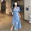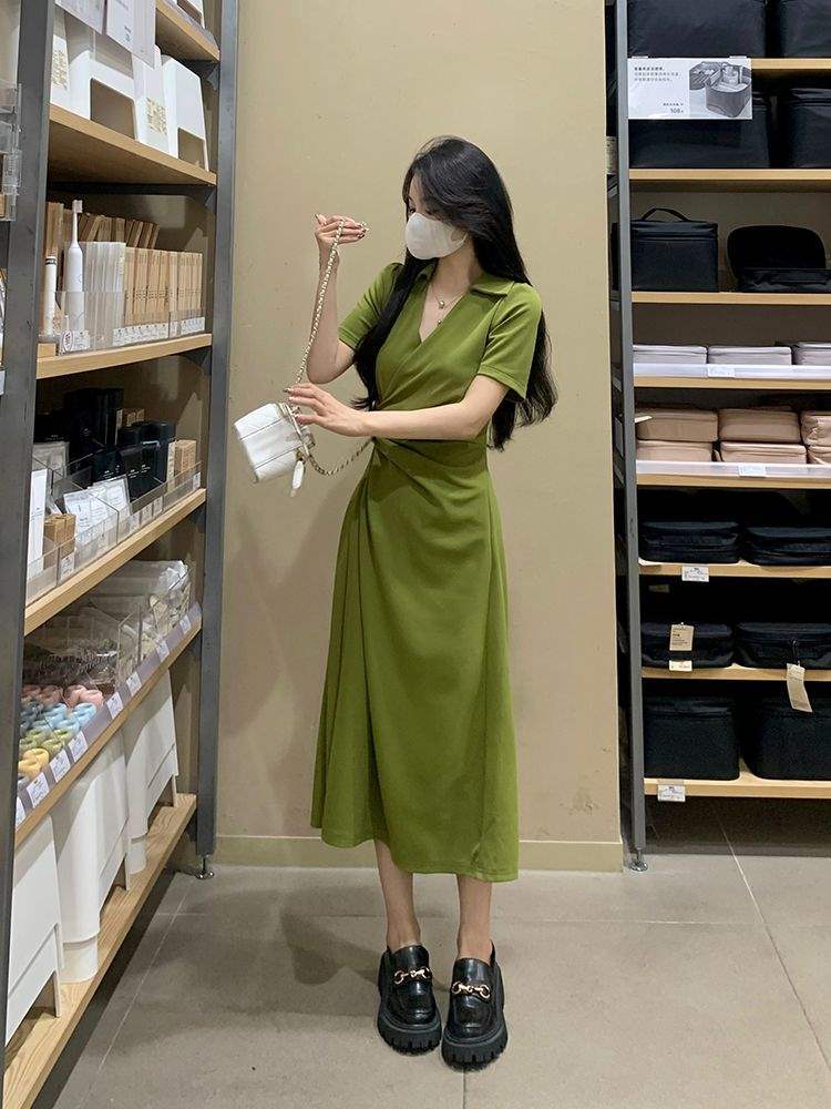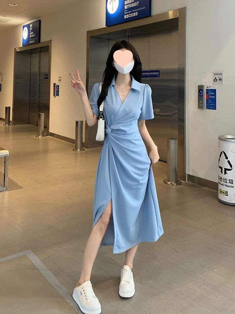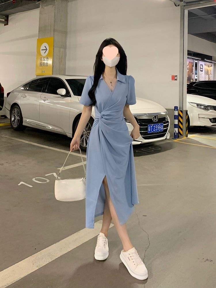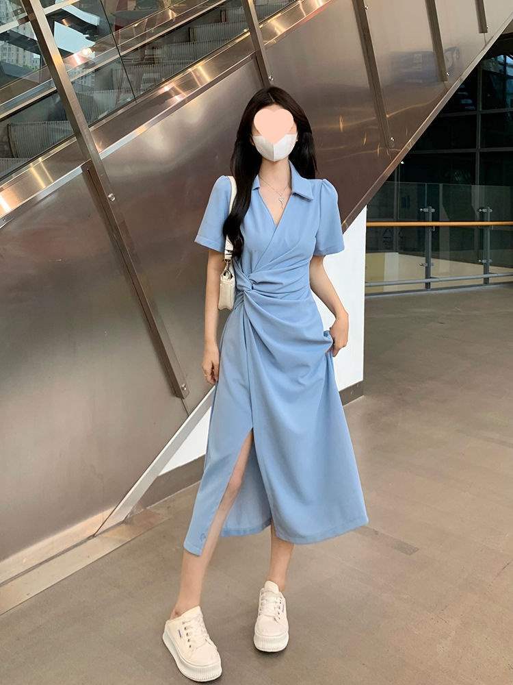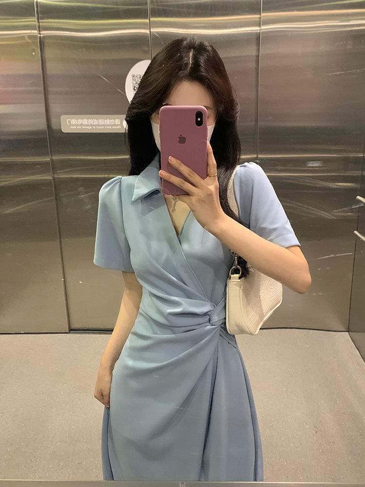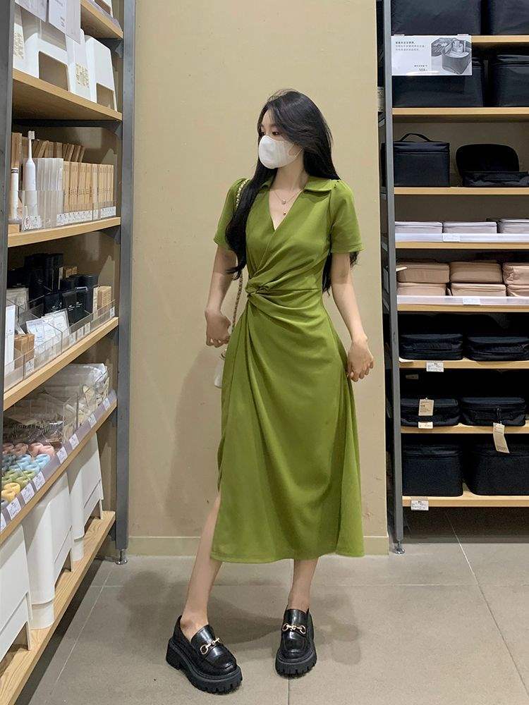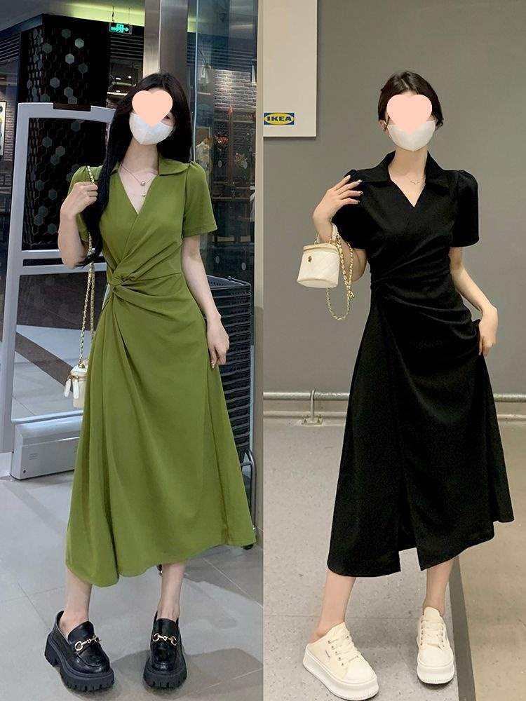 Talla grande Diseño Francés Sentido Nicho Estilo Suave vestido de Verano para Mujer Nuevo Cintura Alta Adelgazante Falda