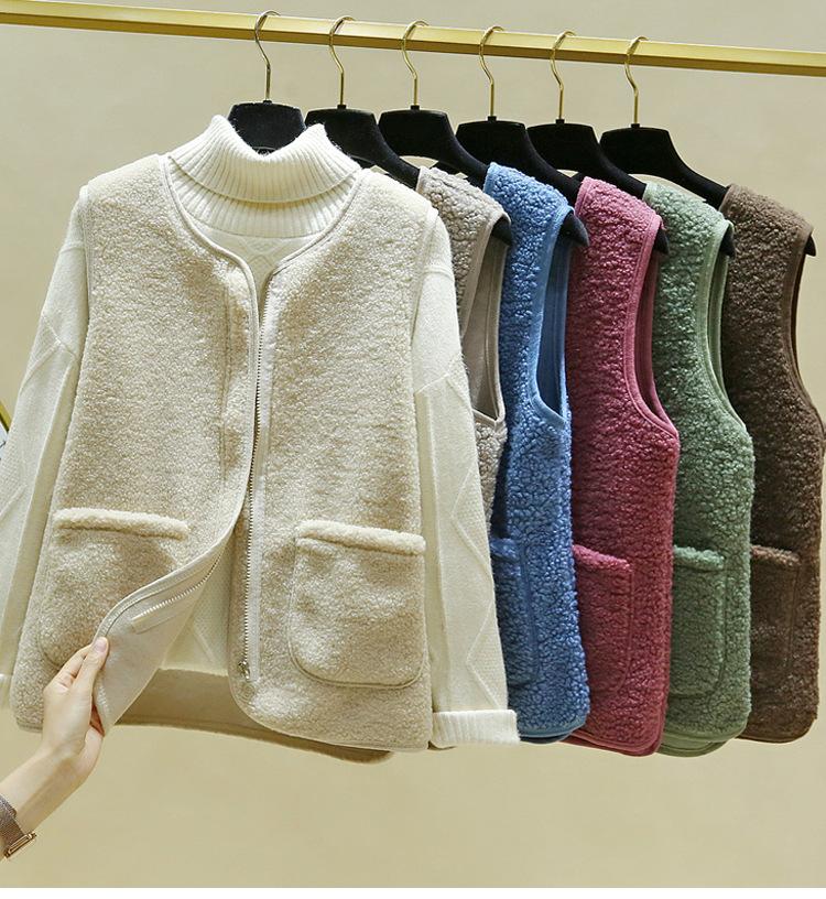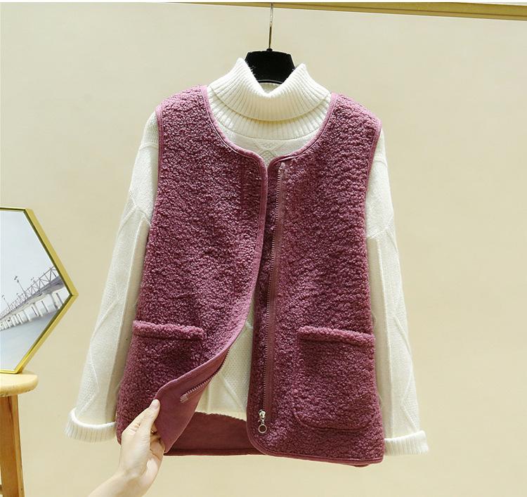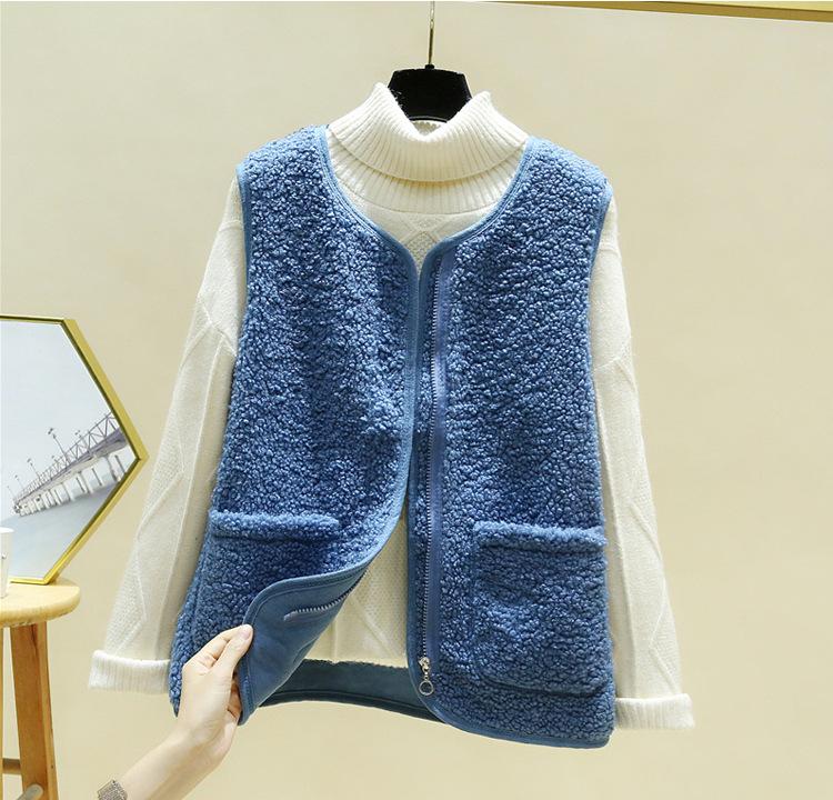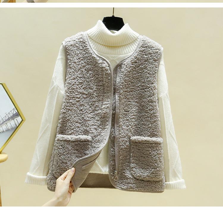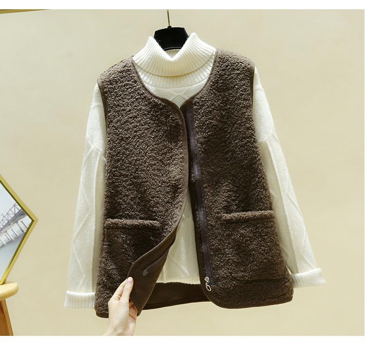 Chaleco de peluche de cordero para mujer 2023 nuevo estilo coreano piel integrada otoño e invierno exterior chaleco chaleco para mujer