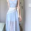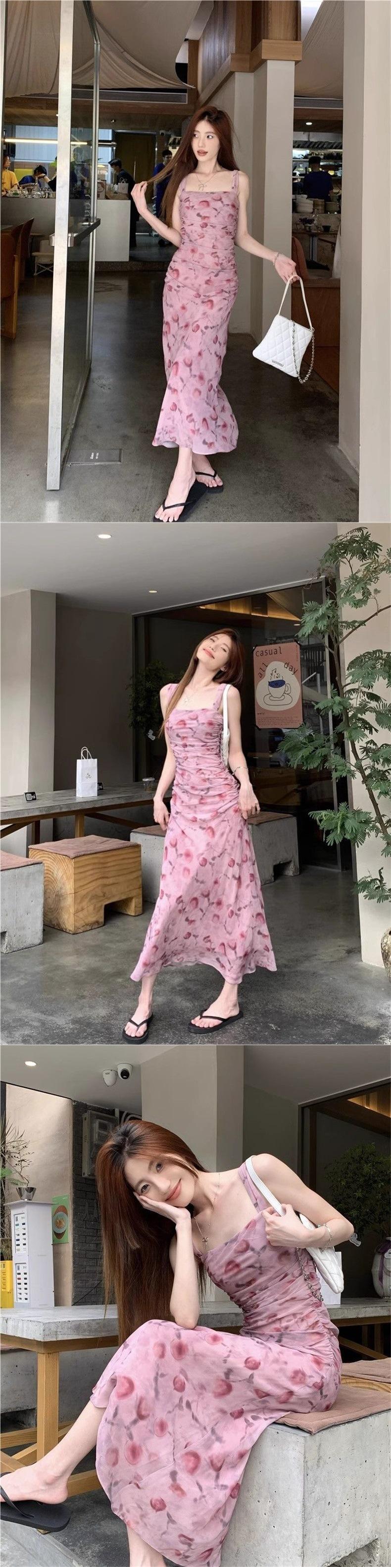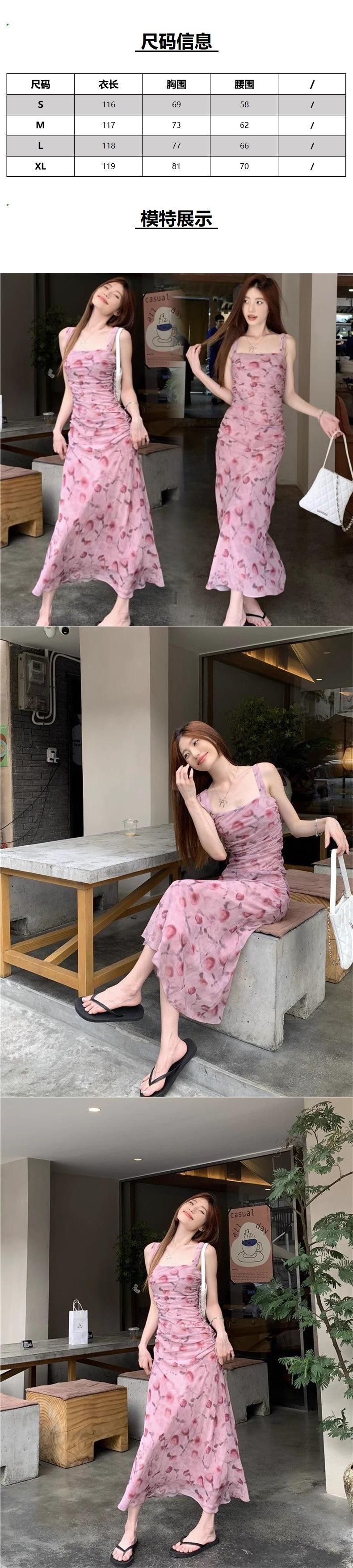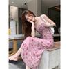 Estilo Vacaciones de Playa Hora del Té Vestido Largo de Tirantes Espagueti Floral Francés Temperamento Sentido de Alta Gama Adelgazante Absolutamente Hermoso Vestido Verano