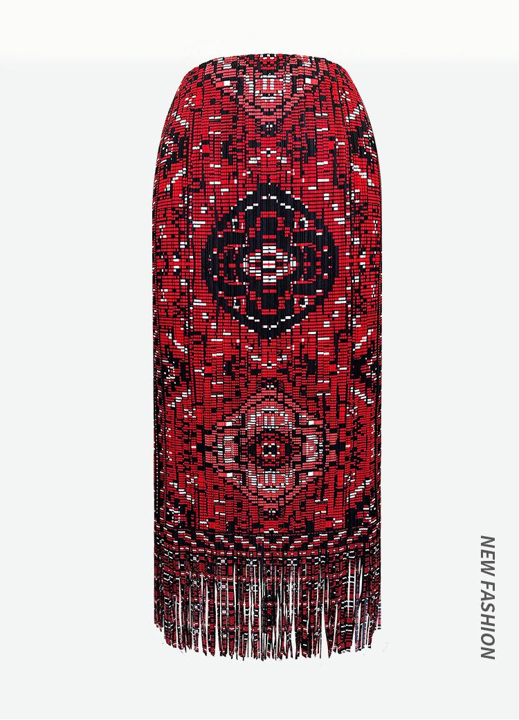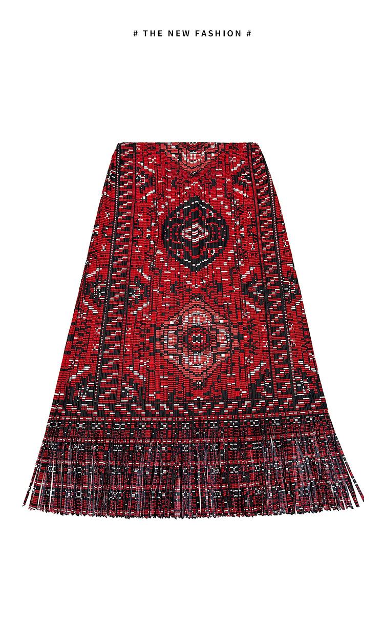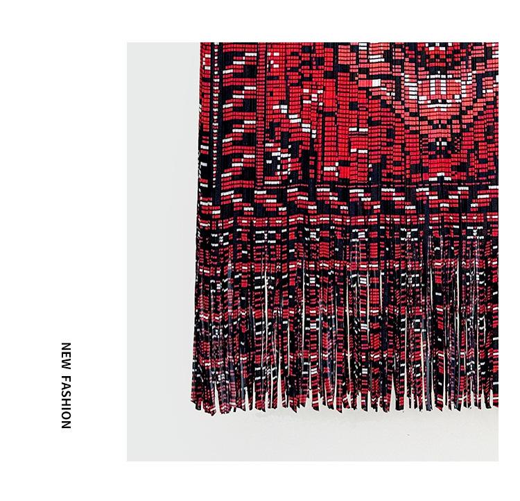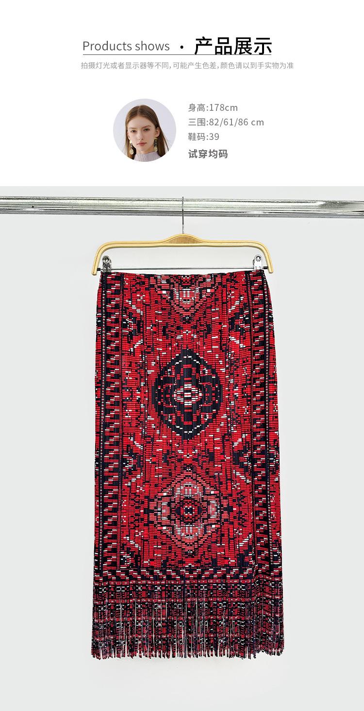 Verano 2025 Temperamento Retro Media Falda Suelta Plisada Nueva Adelgazante Estampado Media Falda con Flecos de Largo Medio para Mujer