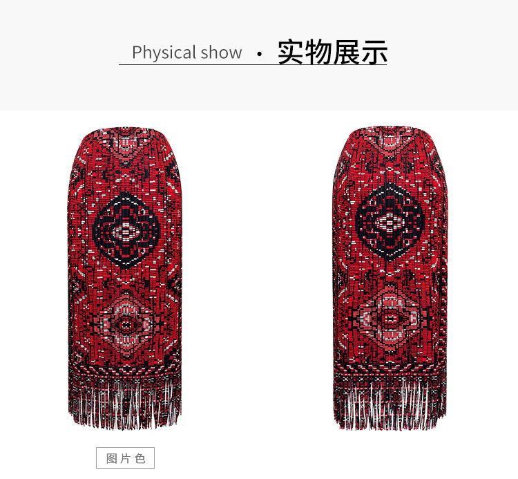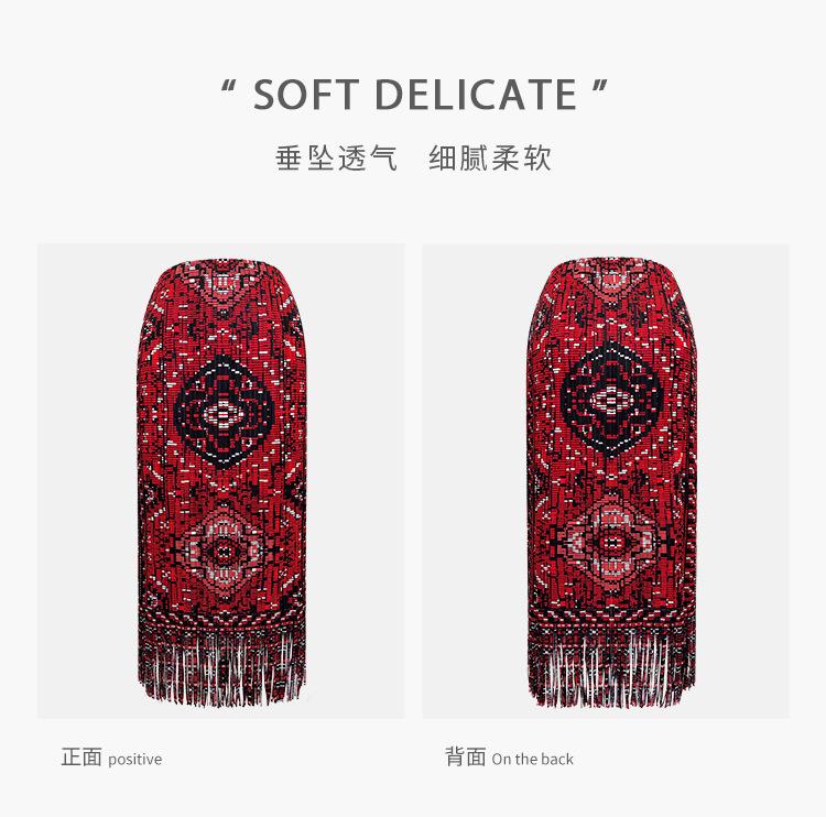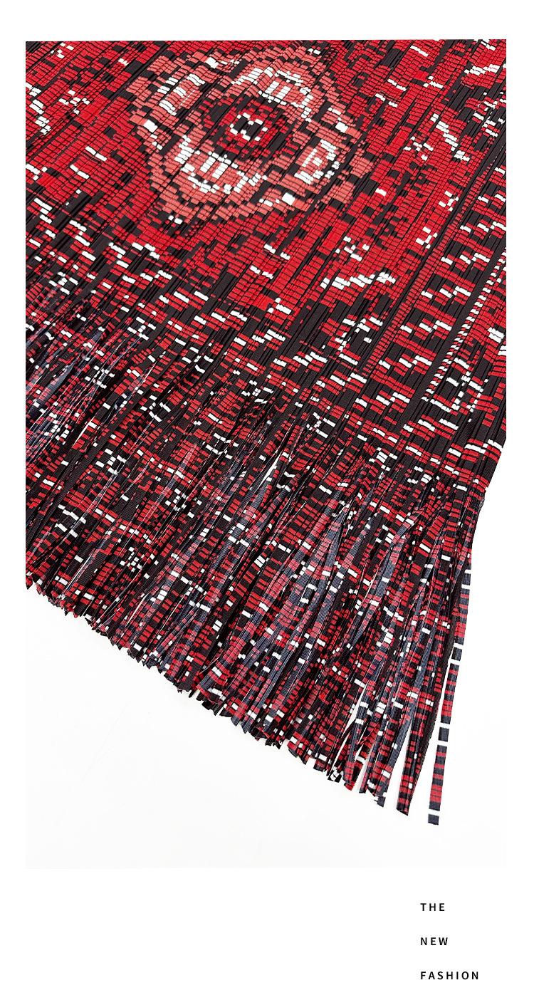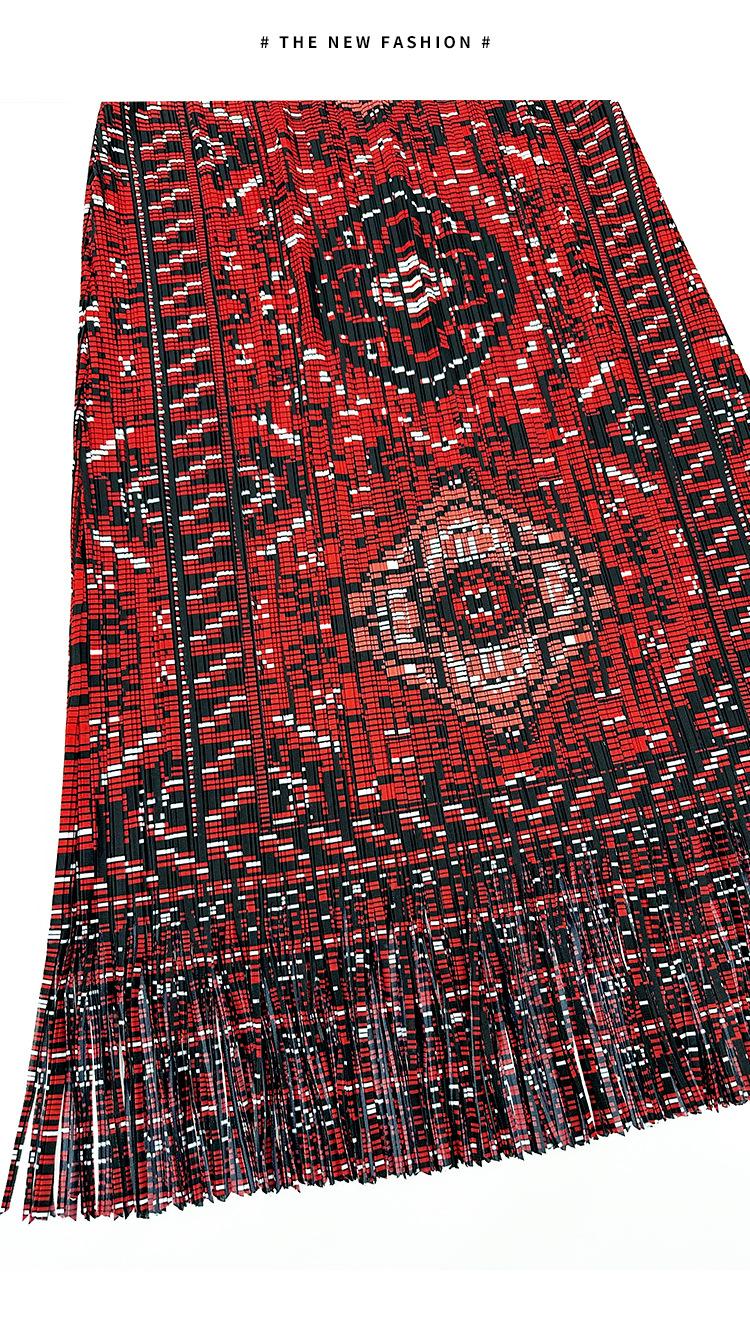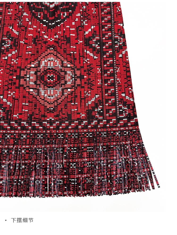 Verano 2025 Temperamento Retro Media Falda Suelta Plisada Nueva Adelgazante Estampado Media Falda con Flecos de Largo Medio para Mujer