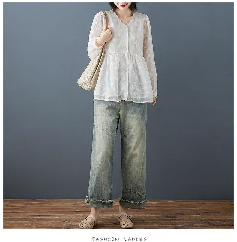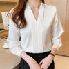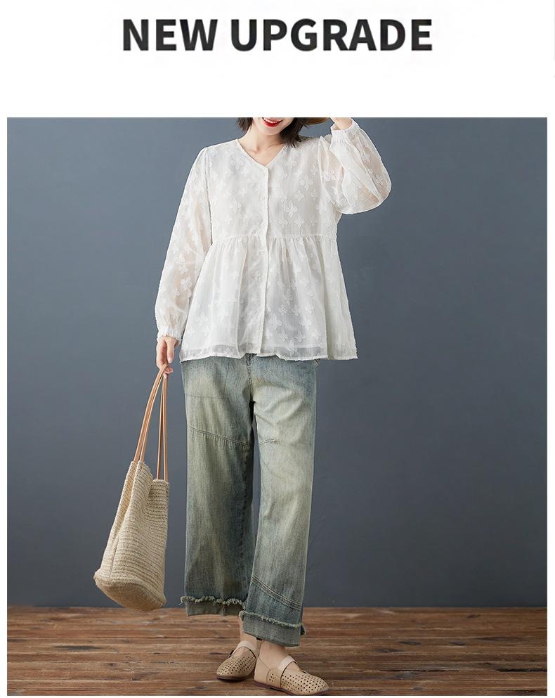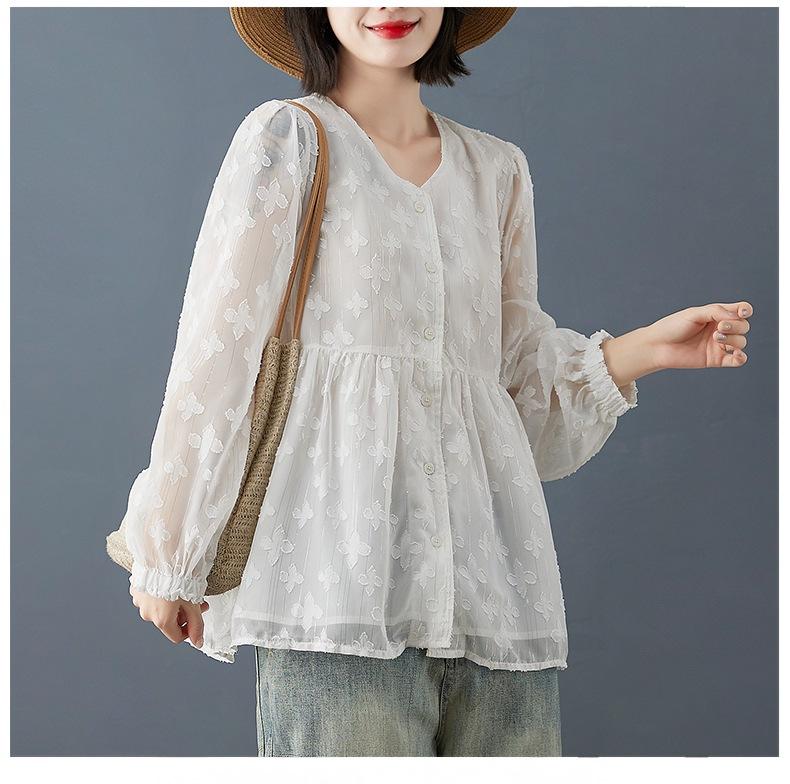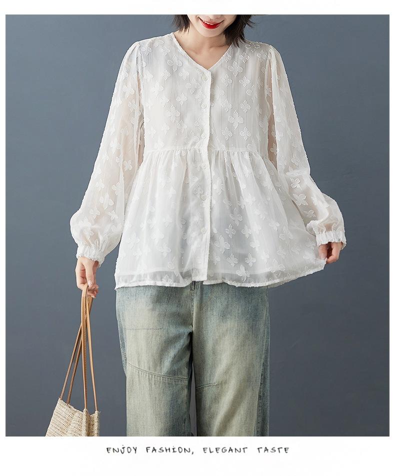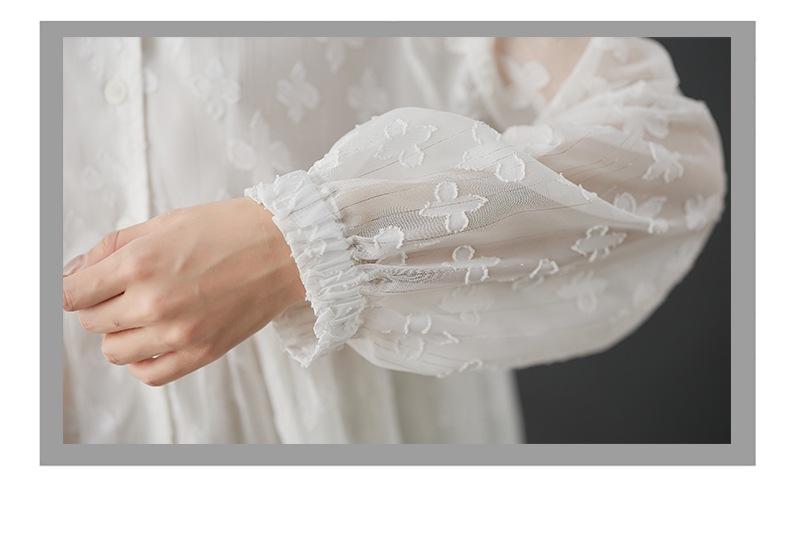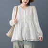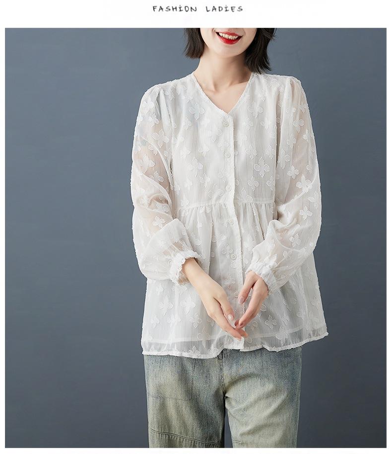Otoño 2025 Nueva Moda Femenina Elegante Temperamento Bordado Cuello en V Manga Larga Camisa de Encaje Top Versátil para Mujer