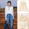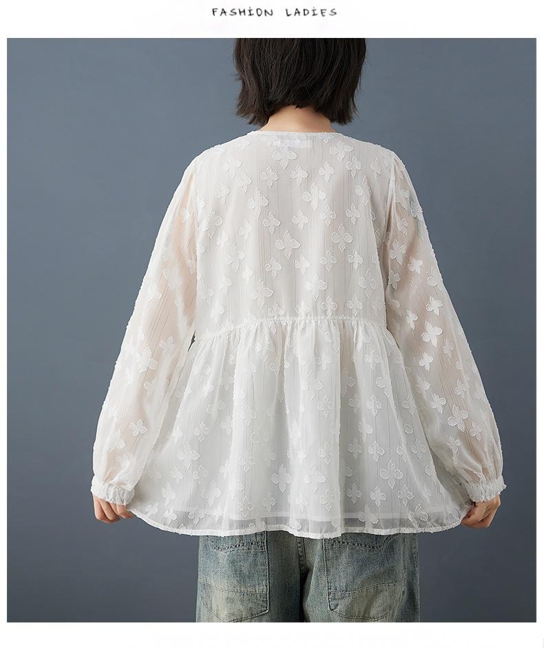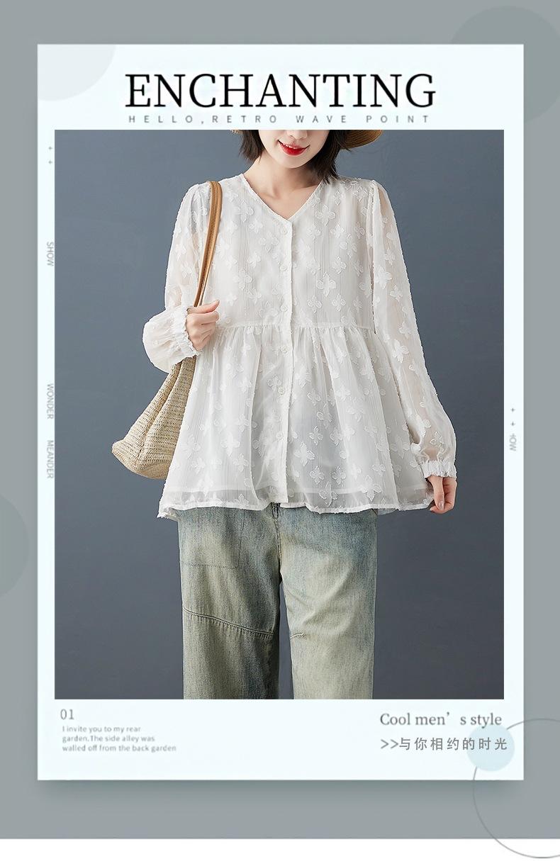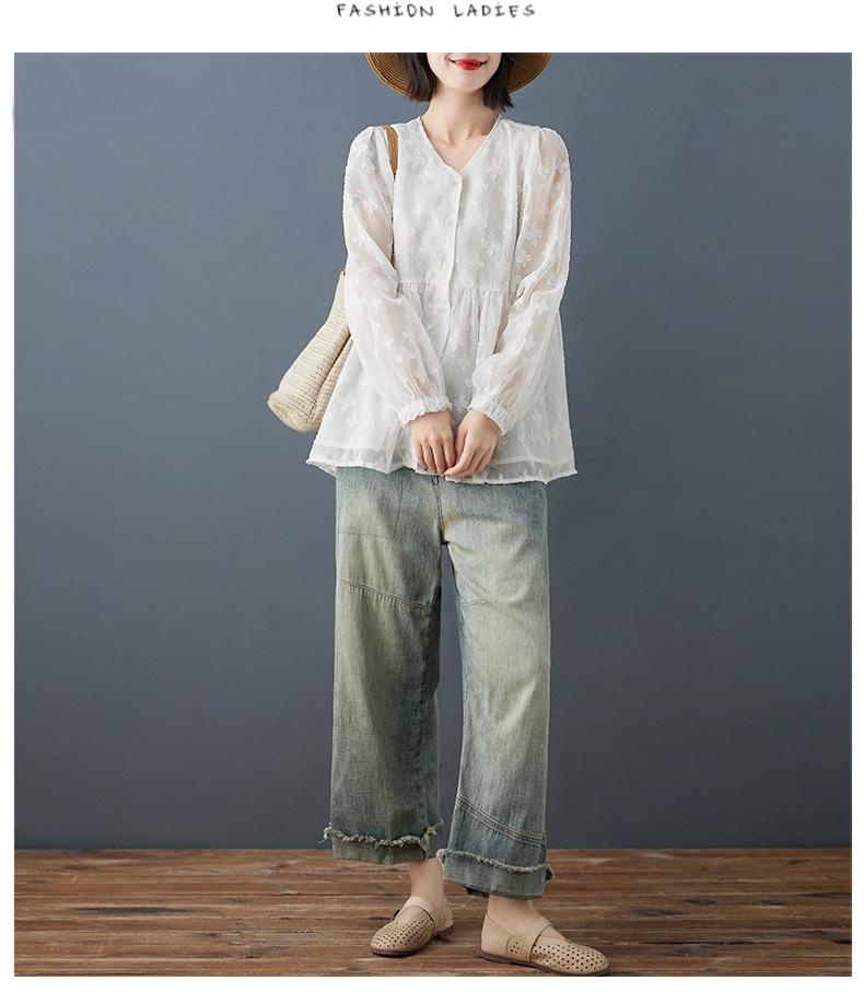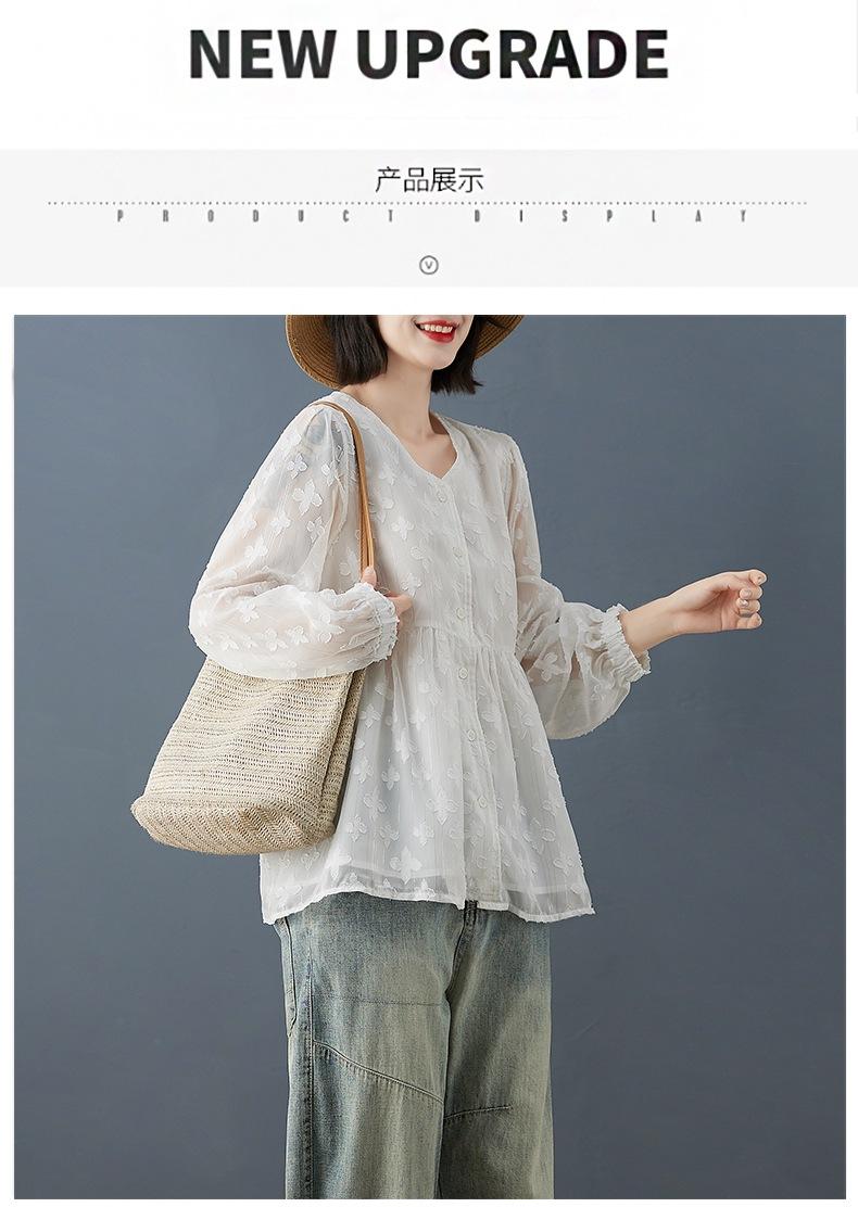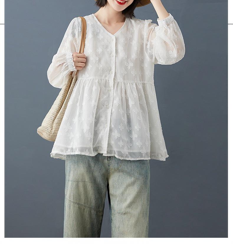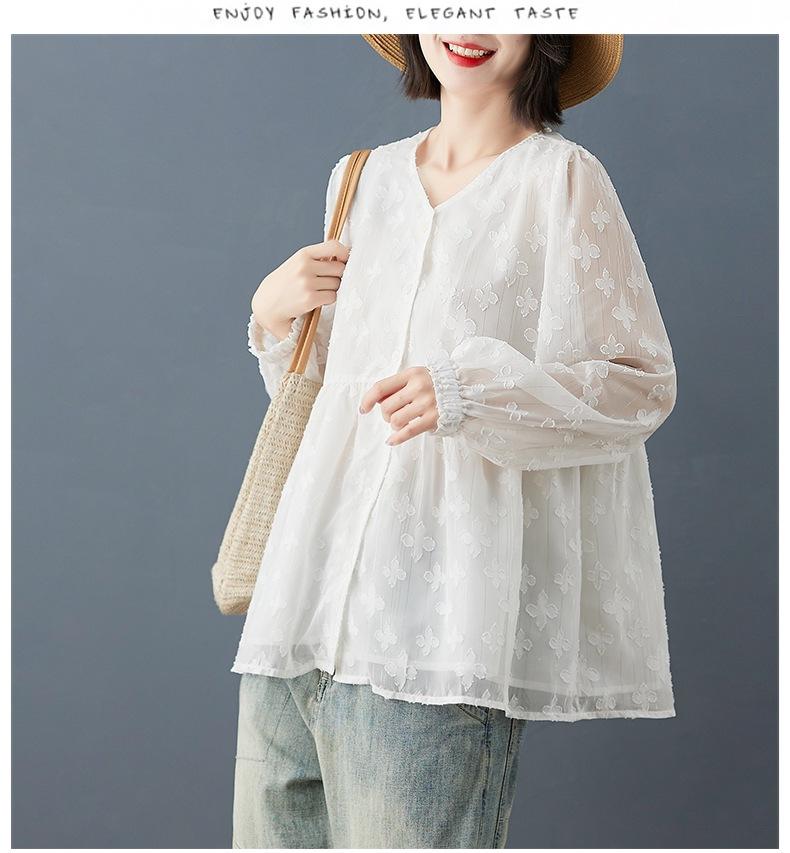 Otoño 2025 Nueva Moda Femenina Elegante Temperamento Bordado Cuello en V Manga Larga Camisa de Encaje Top Versátil para Mujer