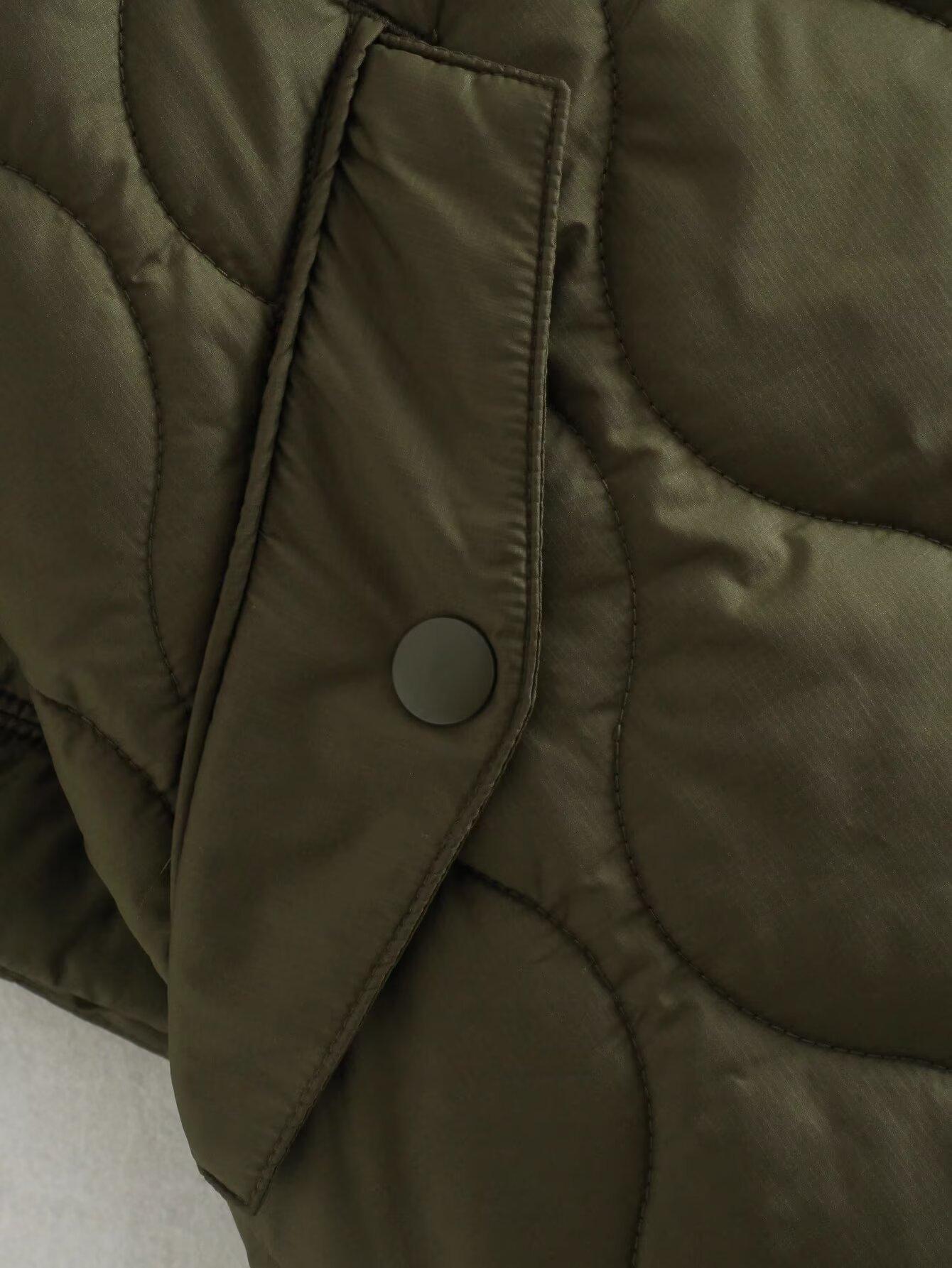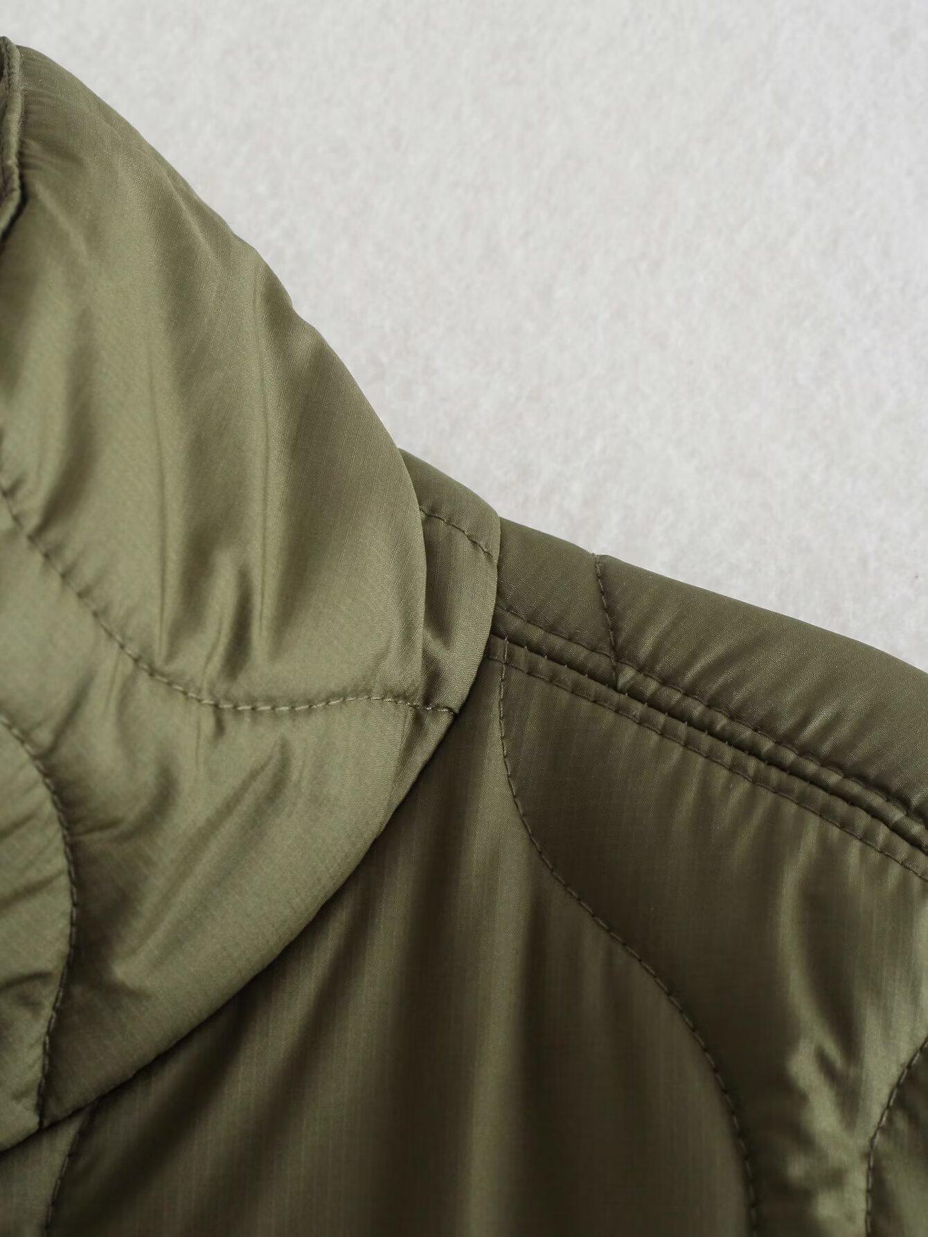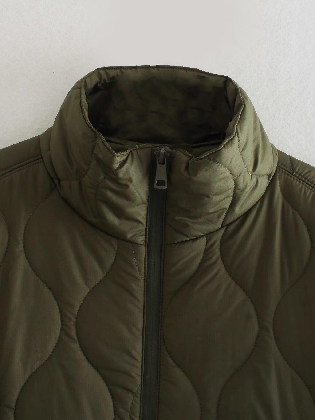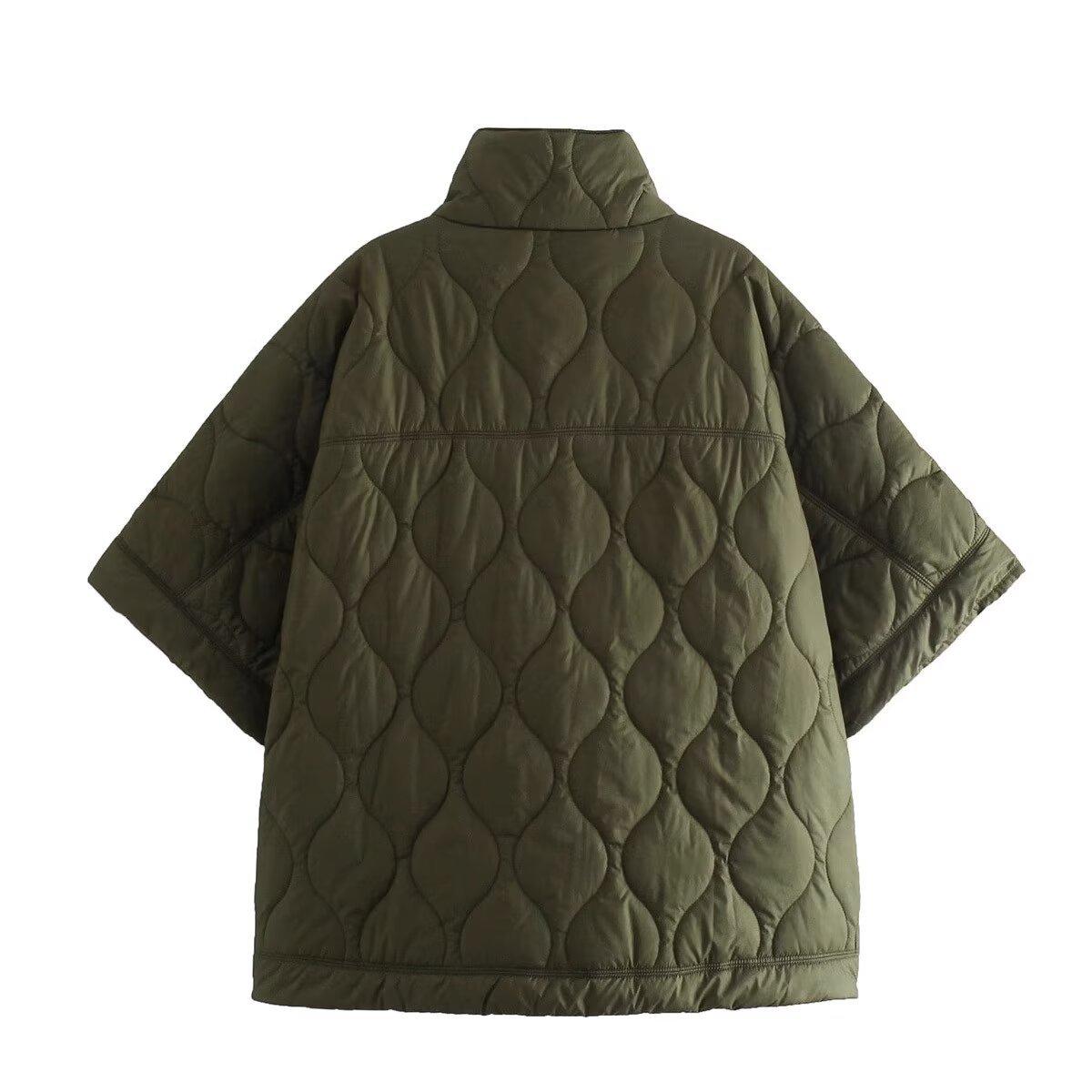 2025 Nueva Ropa de Otoño para Mujer Estilo Europeo y Americano Moda Chaqueta Capa con Media Cremallera Cuello Alto Abrigo Cálido de Algodón