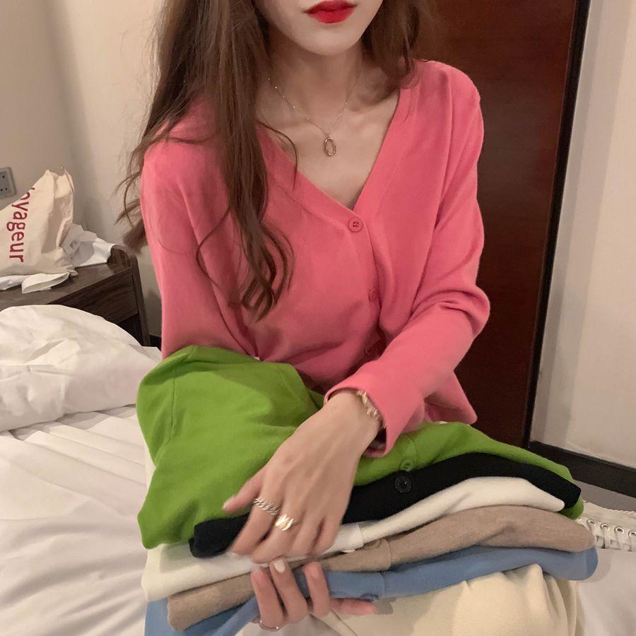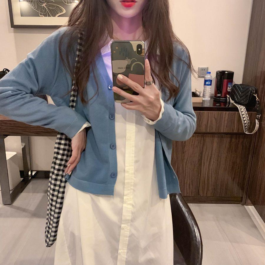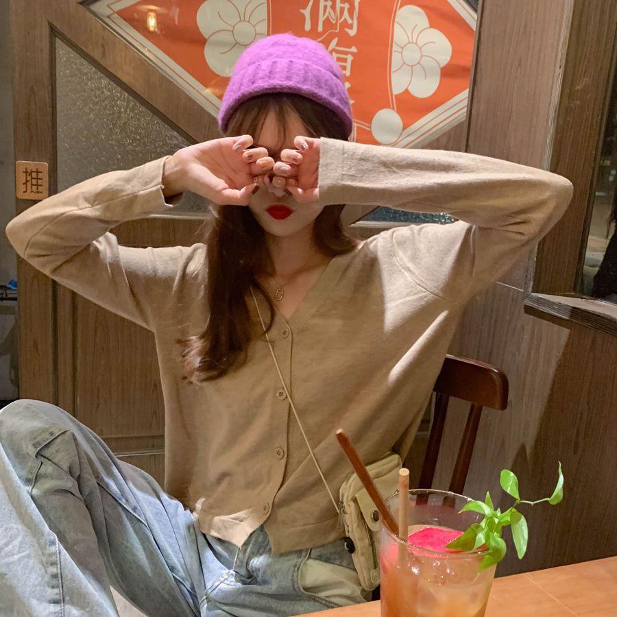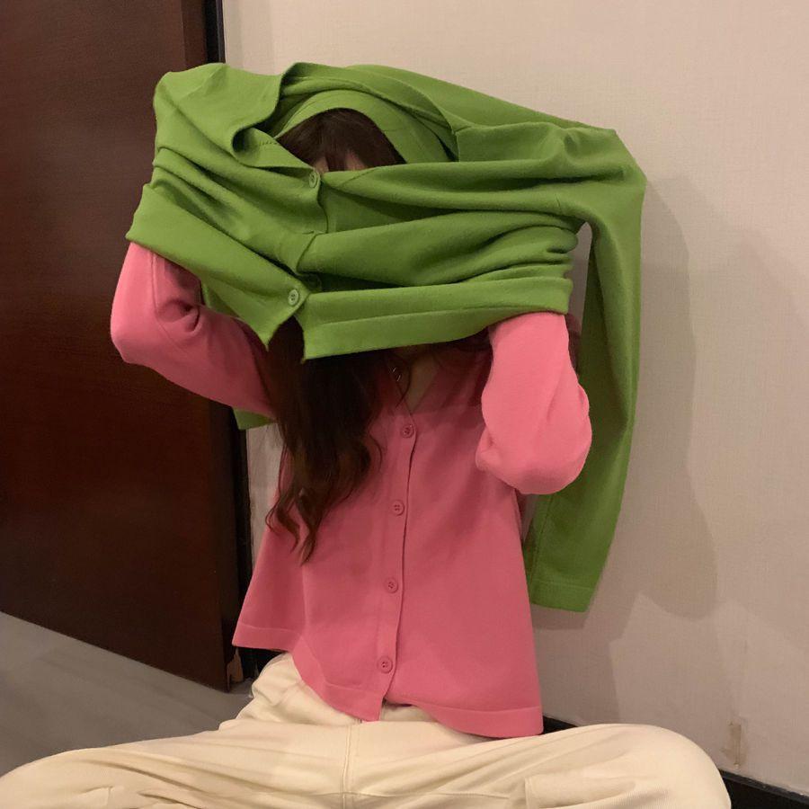 Camisa Nueva Abrigo de Mujer Versátil Nuevo Primavera y Otoño Nuevo Ropa Exterior Suelta Estilo Lazy Cuello Regular Cárdigan Manga Larga Top