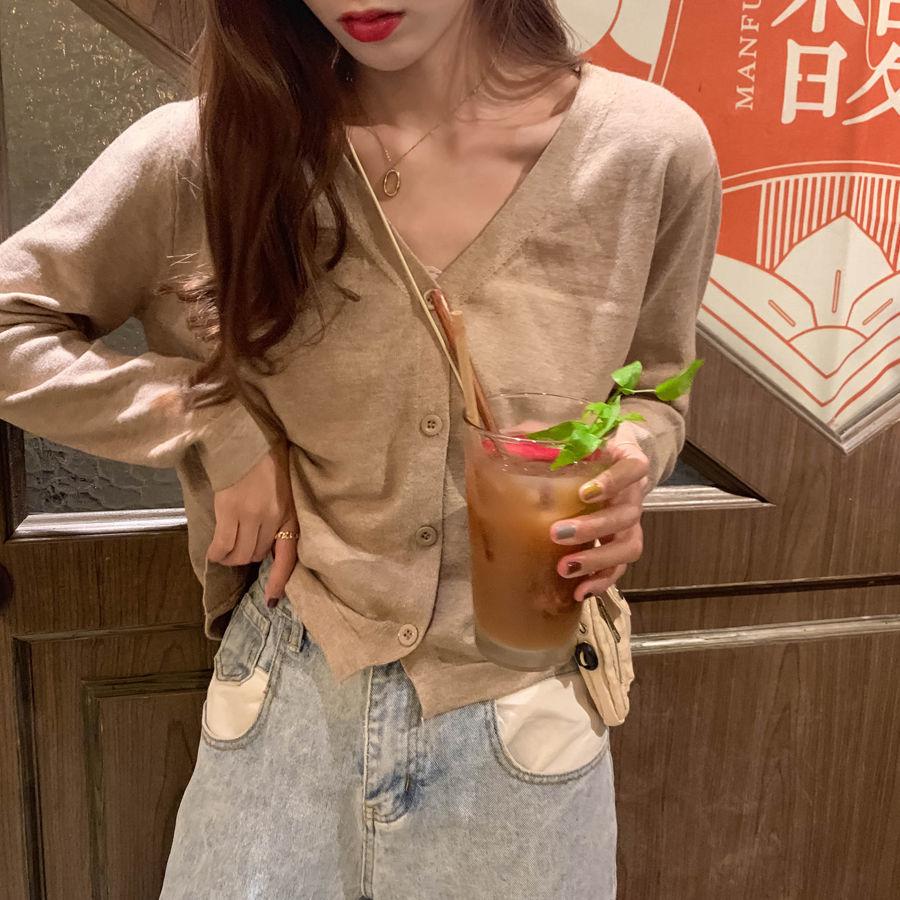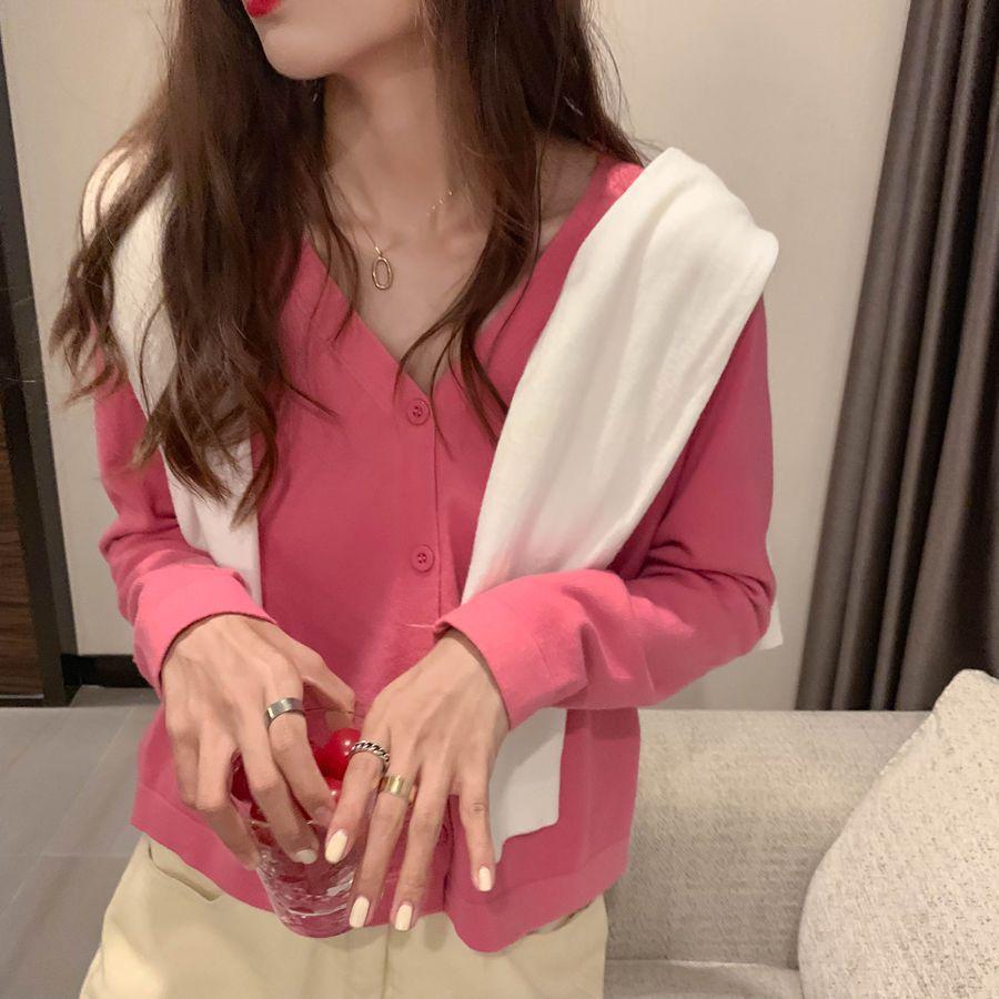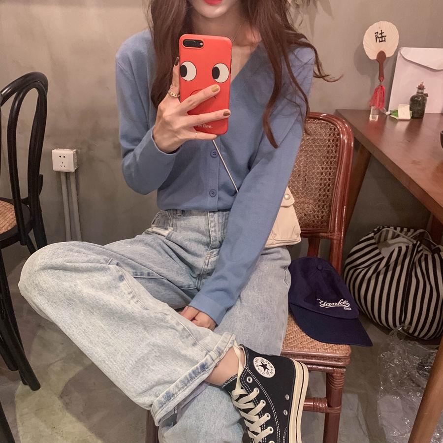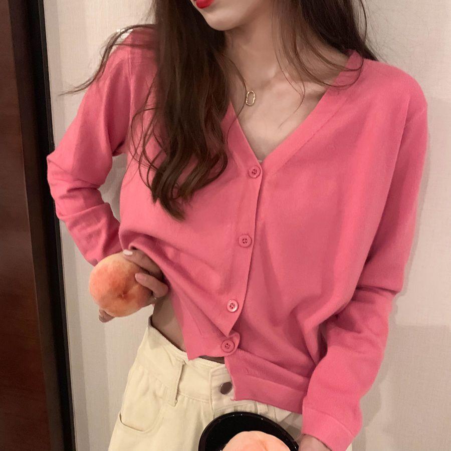 Camisa Nueva Abrigo de Mujer Versátil Nuevo Primavera y Otoño Nuevo Ropa Exterior Suelta Estilo Lazy Cuello Regular Cárdigan Manga Larga Top