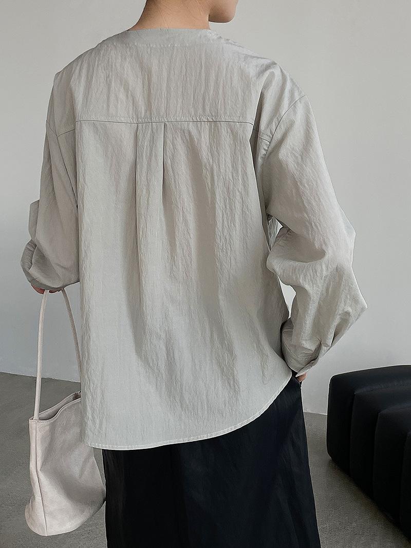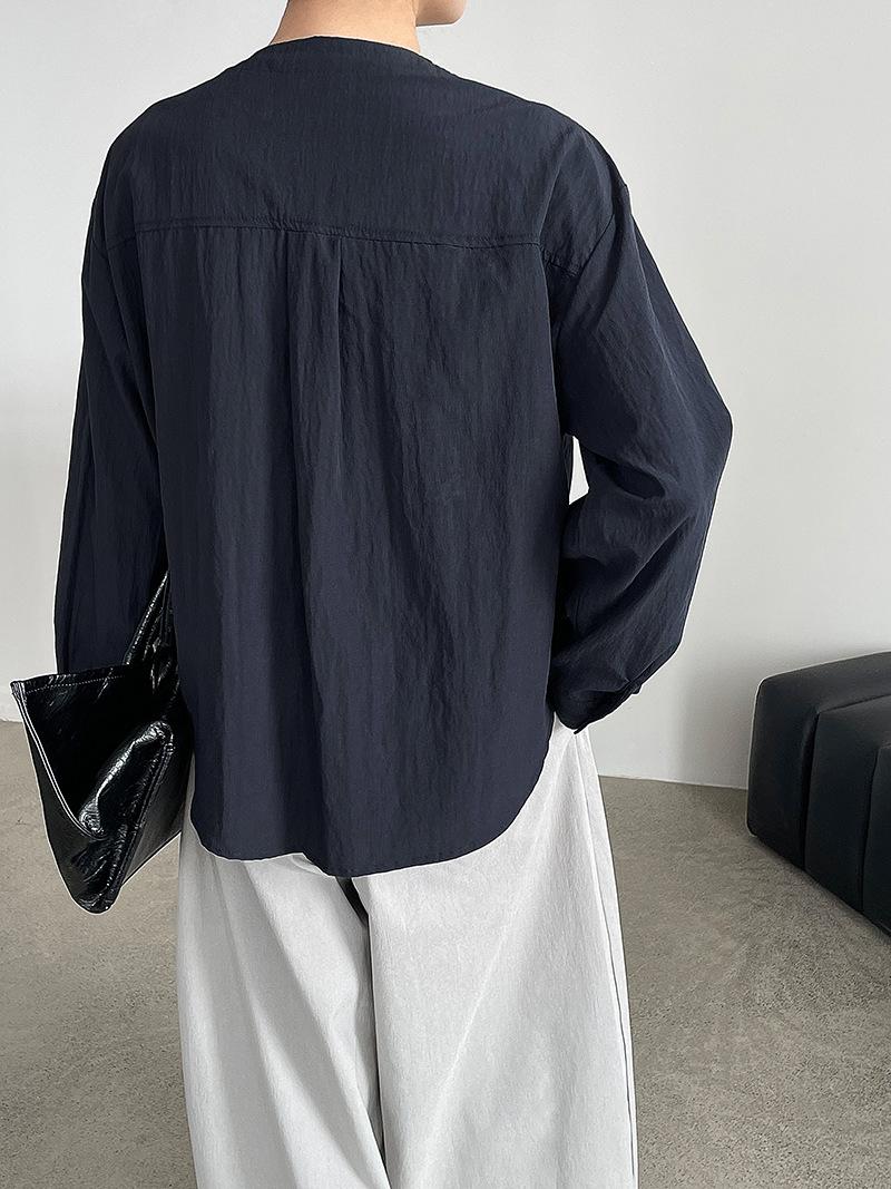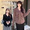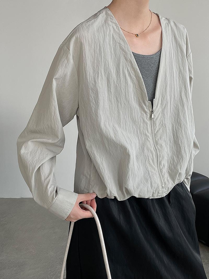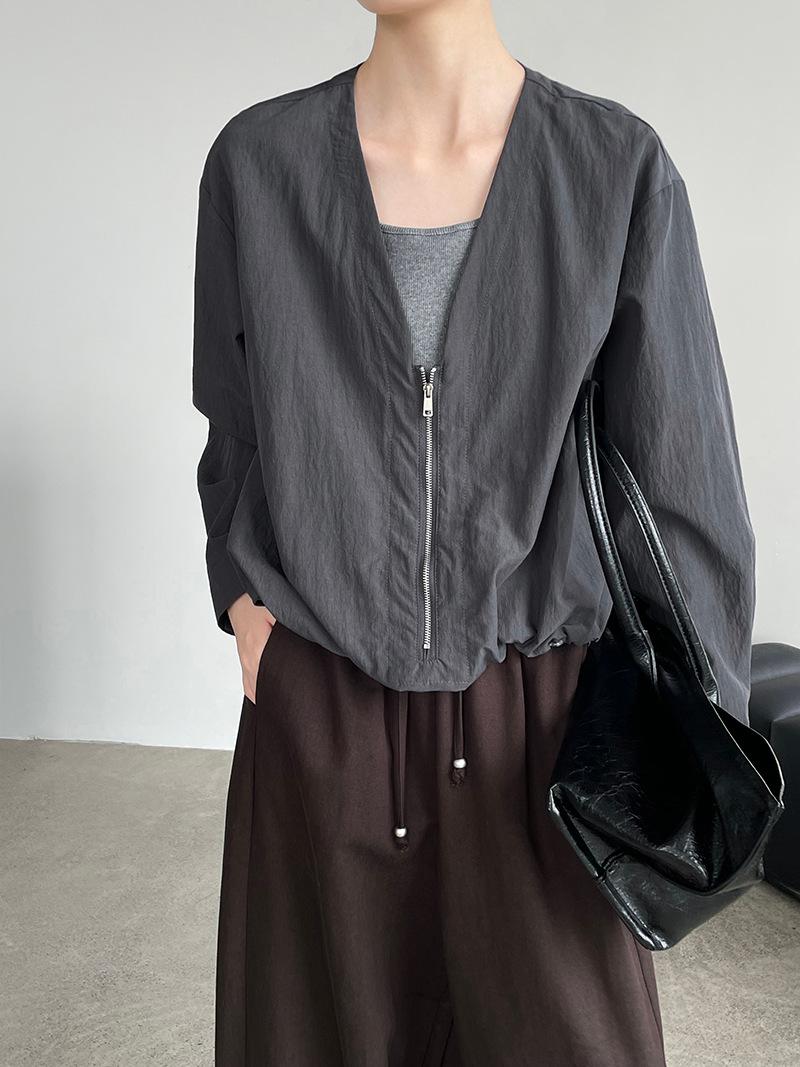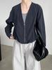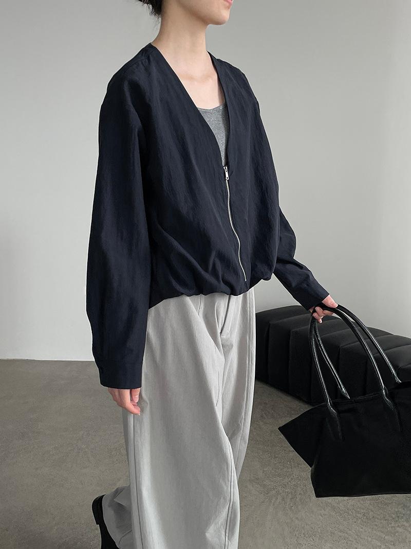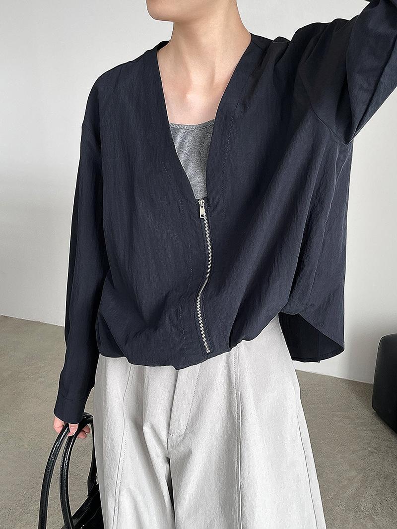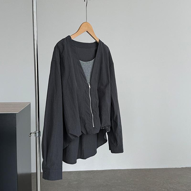 Taochuan Camisa coreana de estilo falso de dos piezas con cuello en V y bloques de color con cremallera para mujer 25 otoño nicho sentido de alta gama top 2807