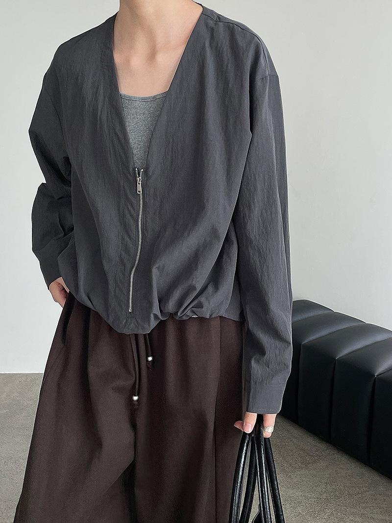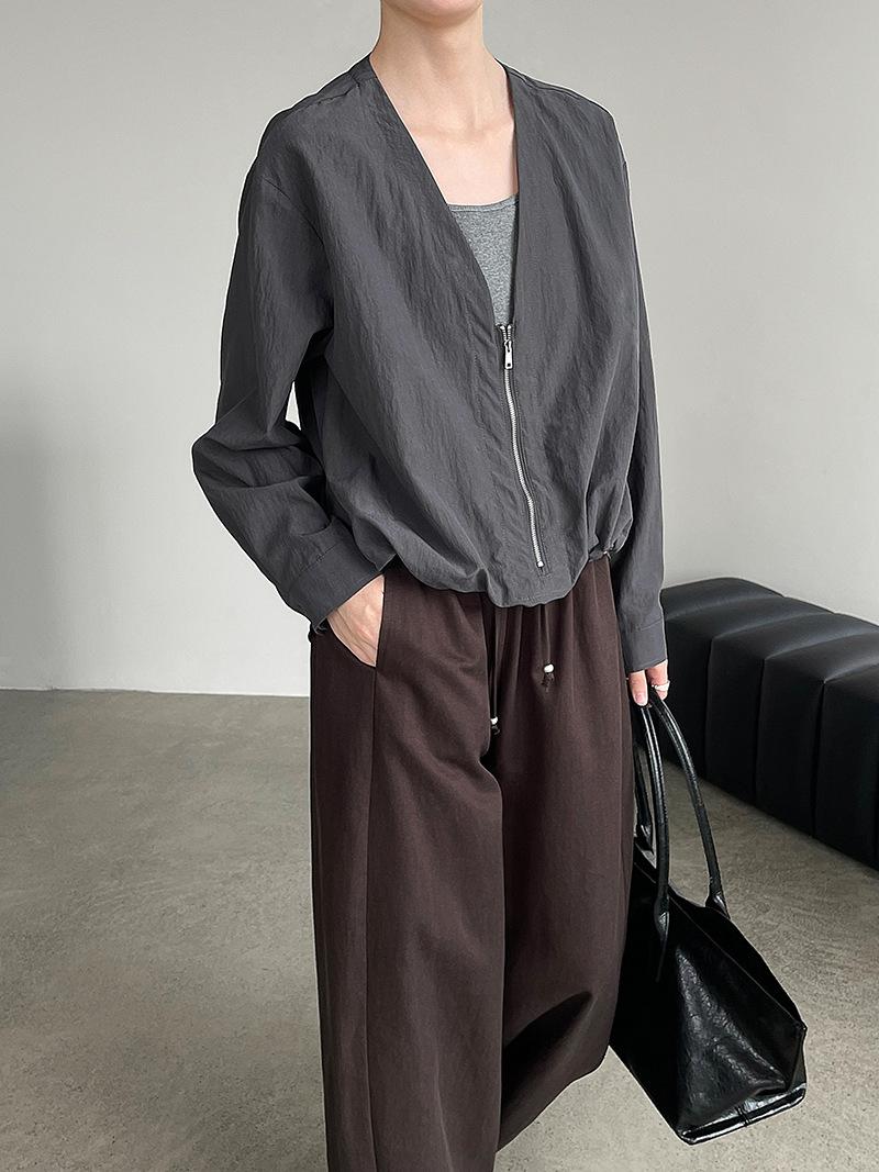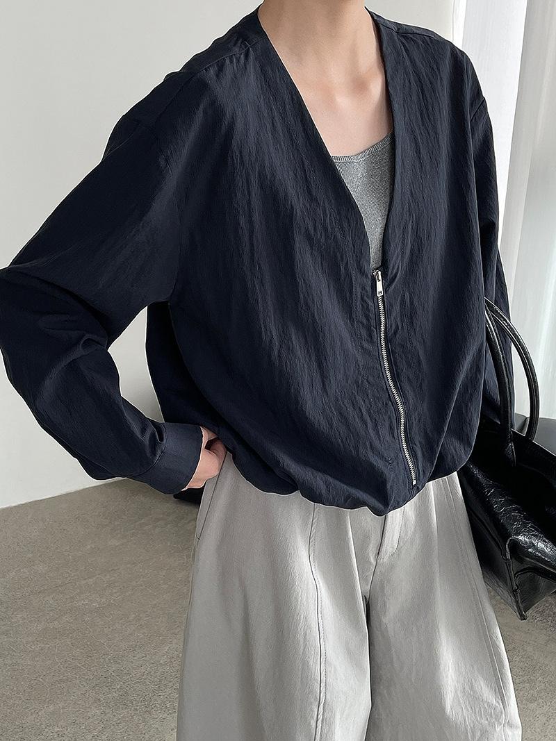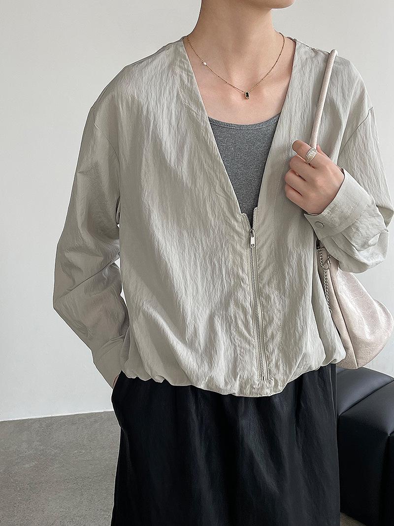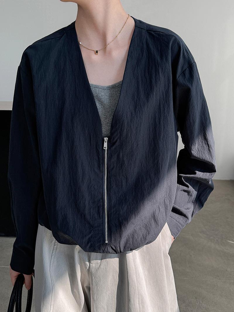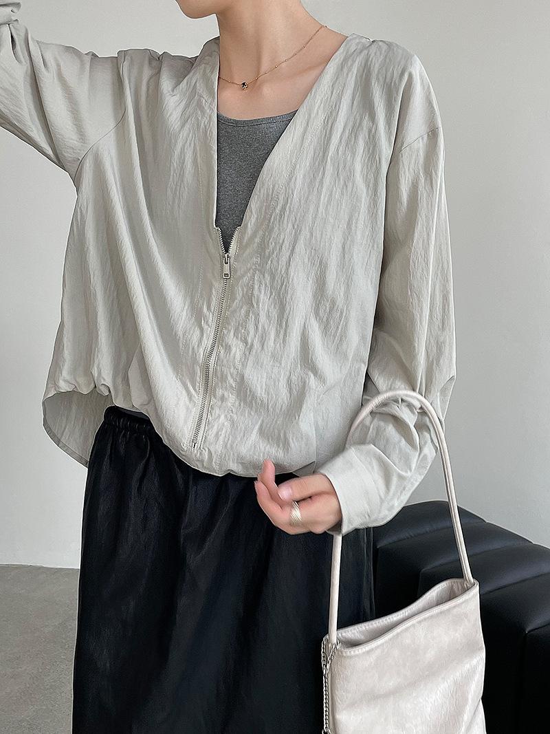 Taochuan Camisa coreana de estilo falso de dos piezas con cuello en V y bloques de color con cremallera para mujer 25 otoño nicho sentido de alta gama top 2807