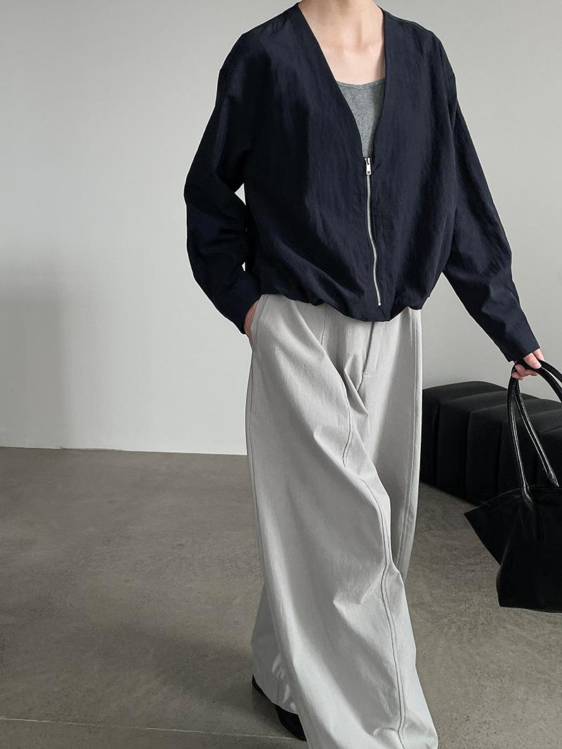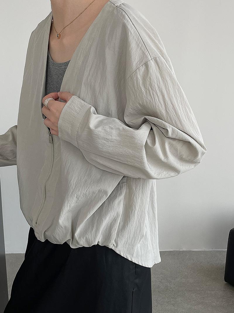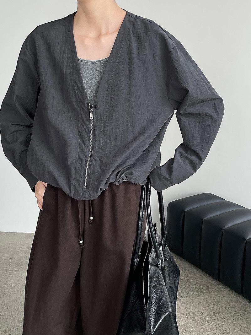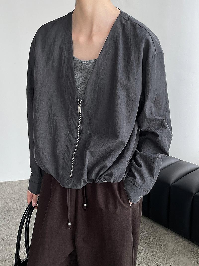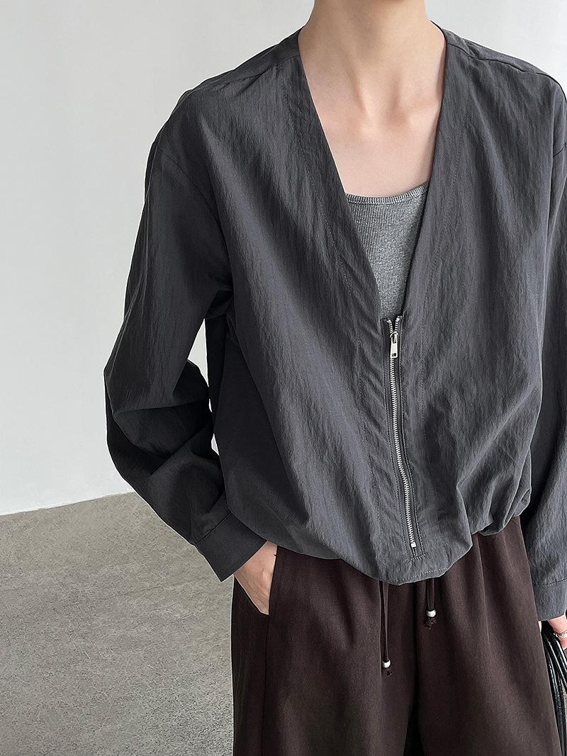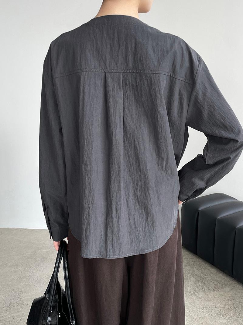 Taochuan Camisa coreana de estilo falso de dos piezas con cuello en V y bloques de color con cremallera para mujer 25 otoño nicho sentido de alta gama top 2807