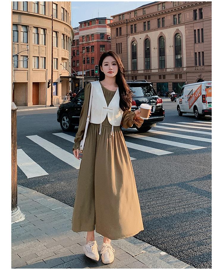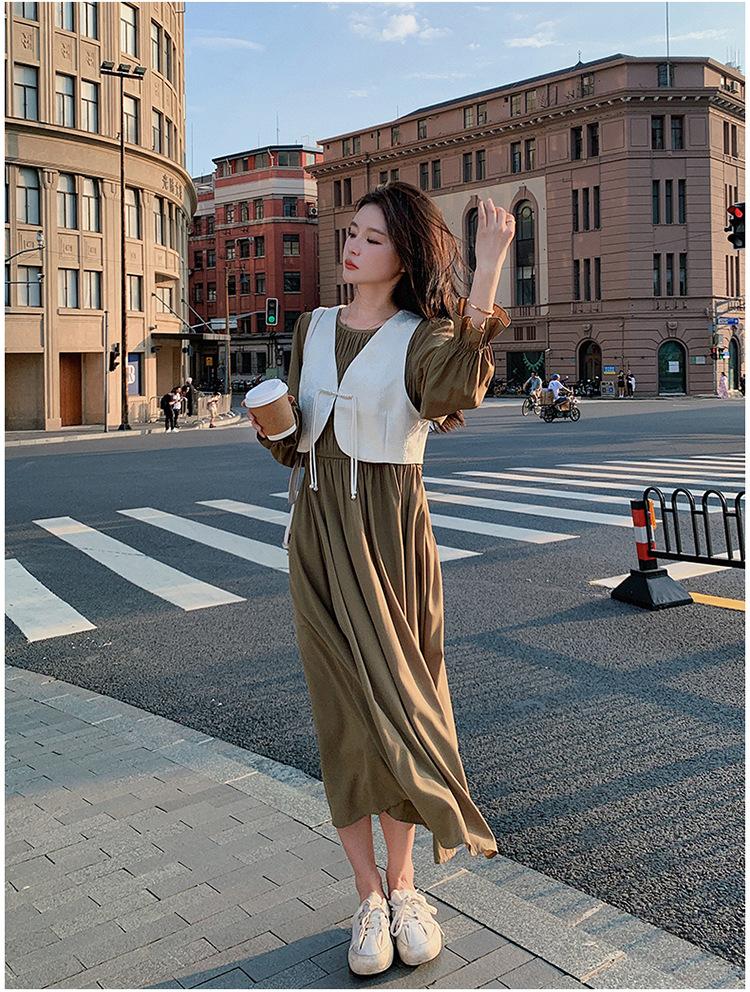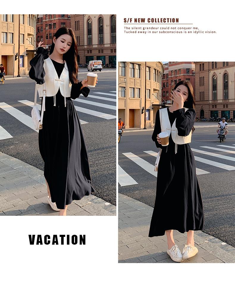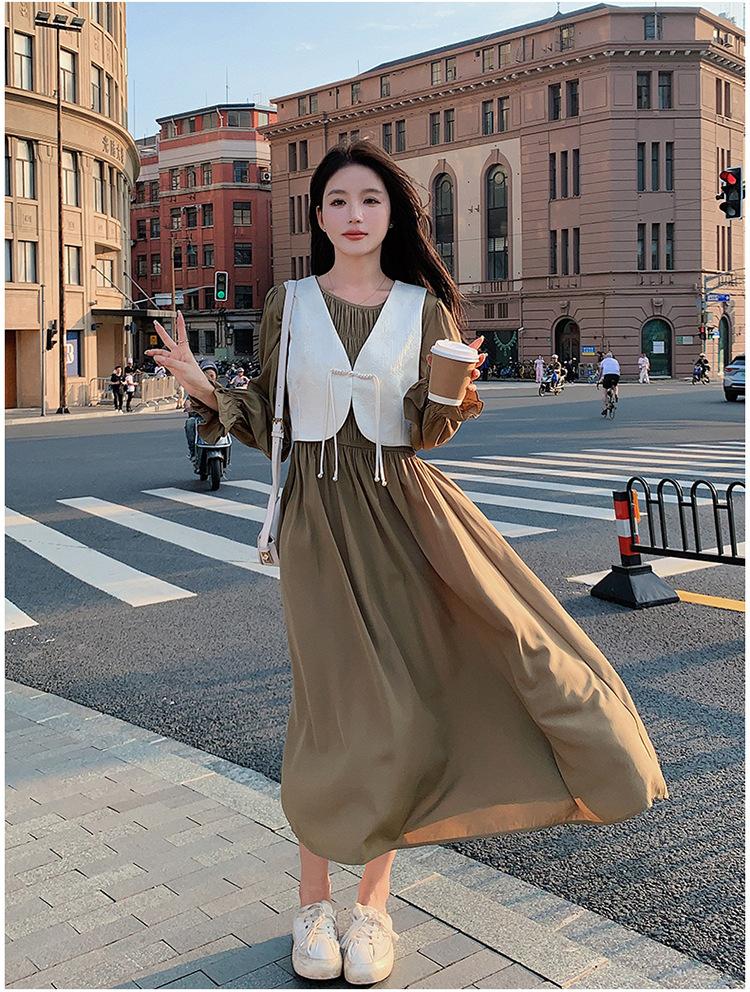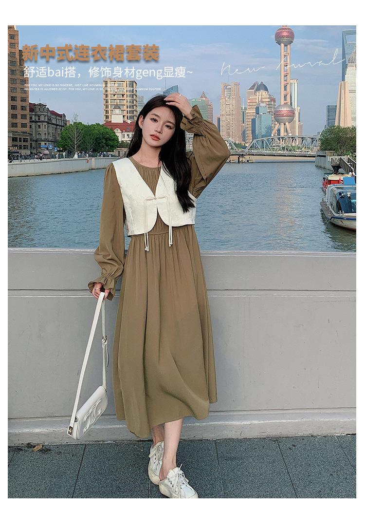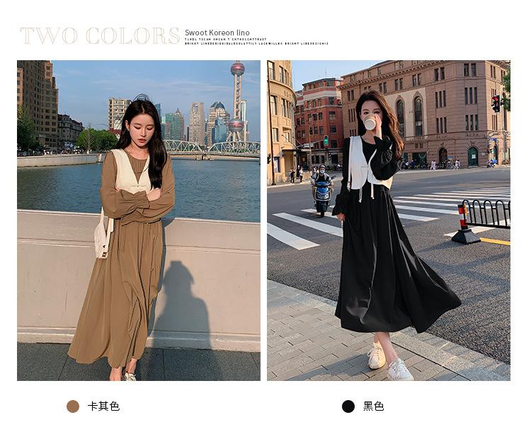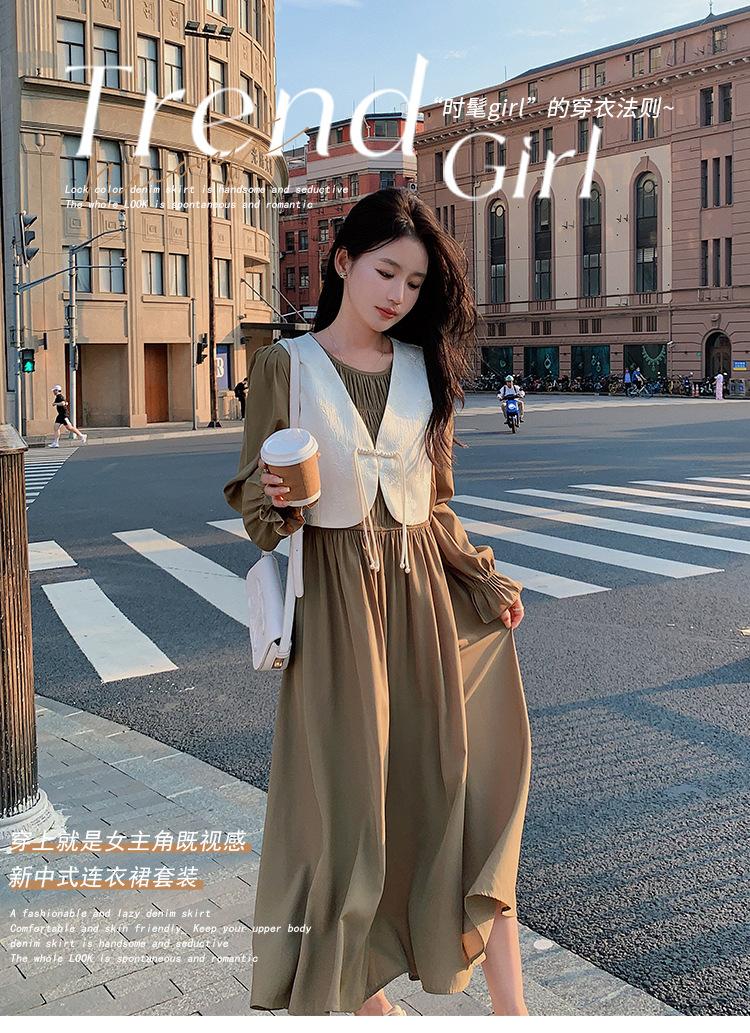 Vestido de dos piezas para mujer primavera y otoño 2025 nuevo estilo reductor de edad versátil cómodo respetuoso con la piel conjunto de vestido chaleco tendencia