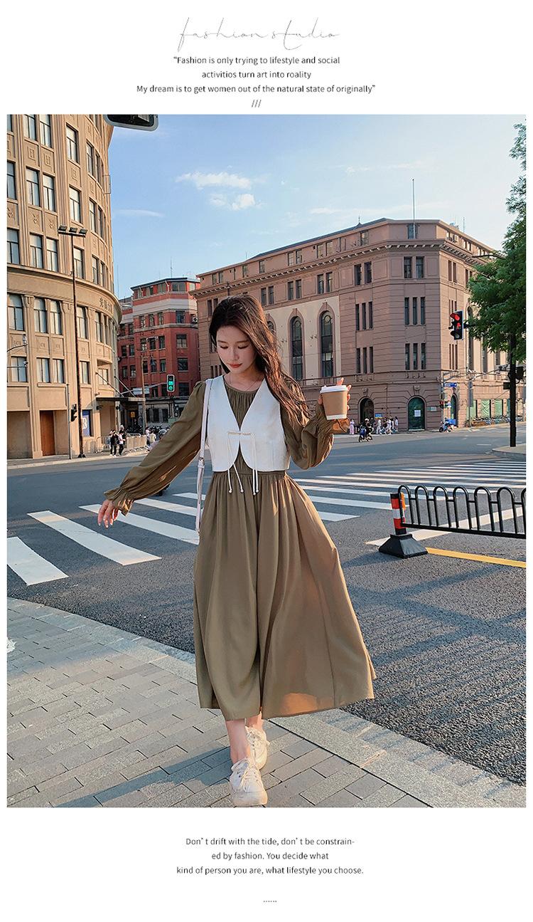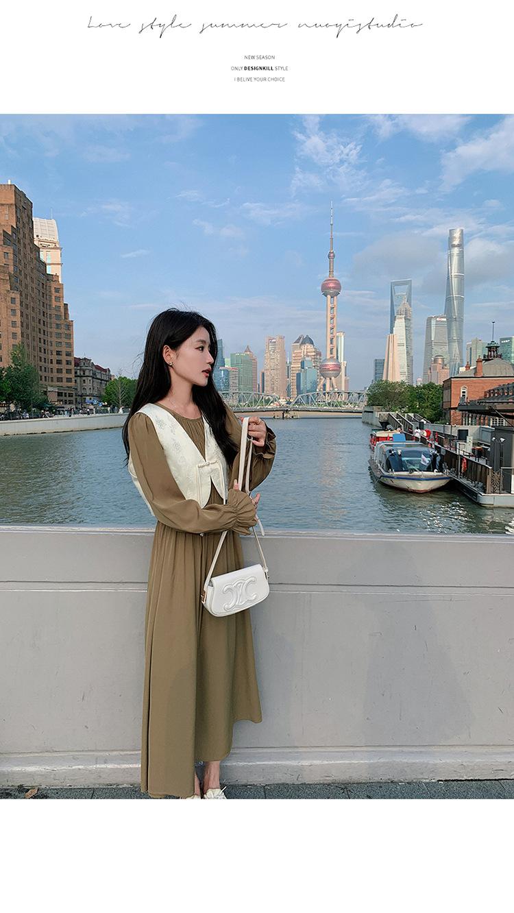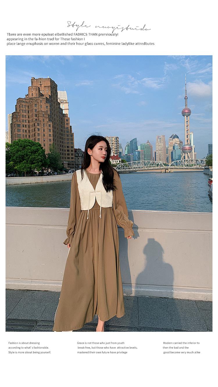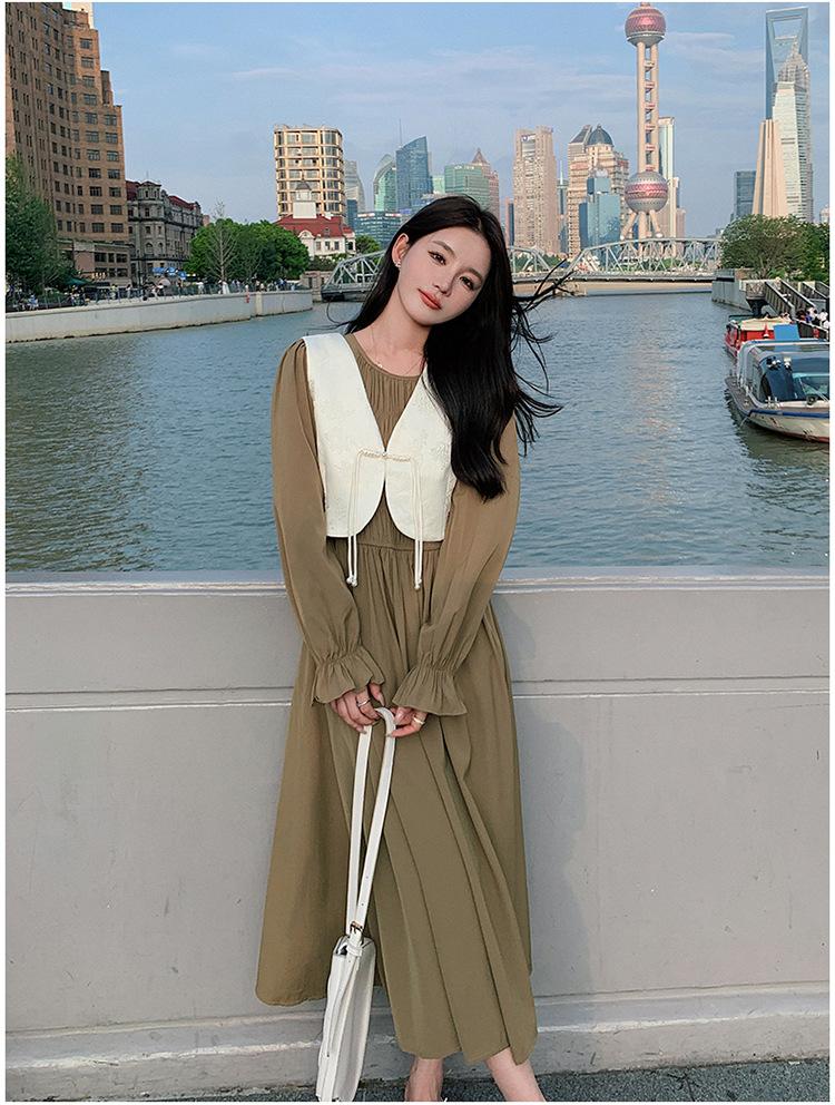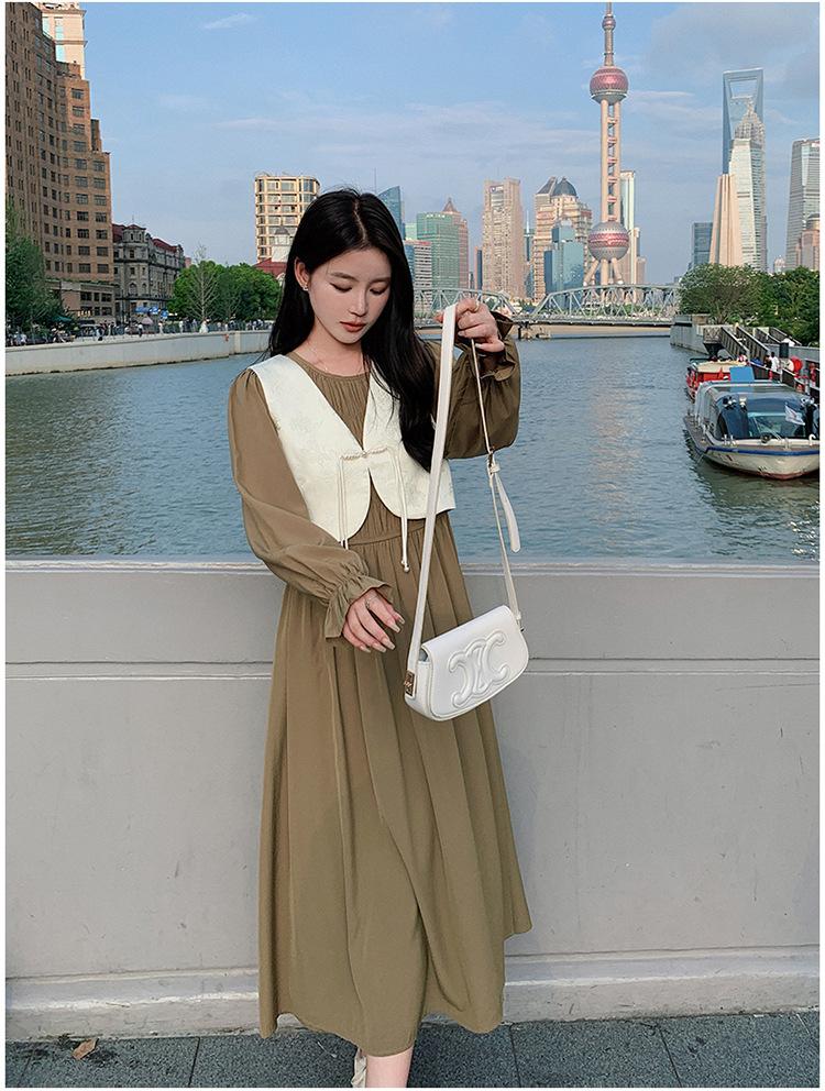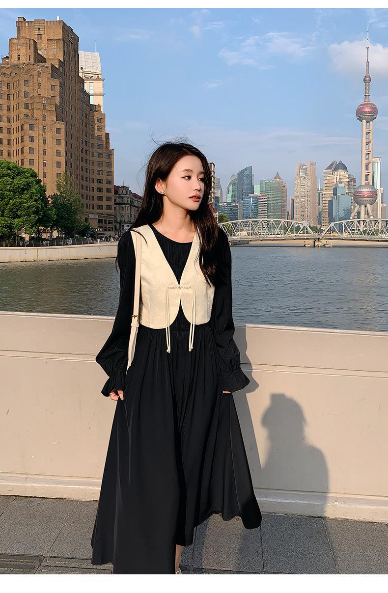 Vestido de dos piezas para mujer primavera y otoño 2025 nuevo estilo reductor de edad versátil cómodo respetuoso con la piel conjunto de vestido chaleco tendencia