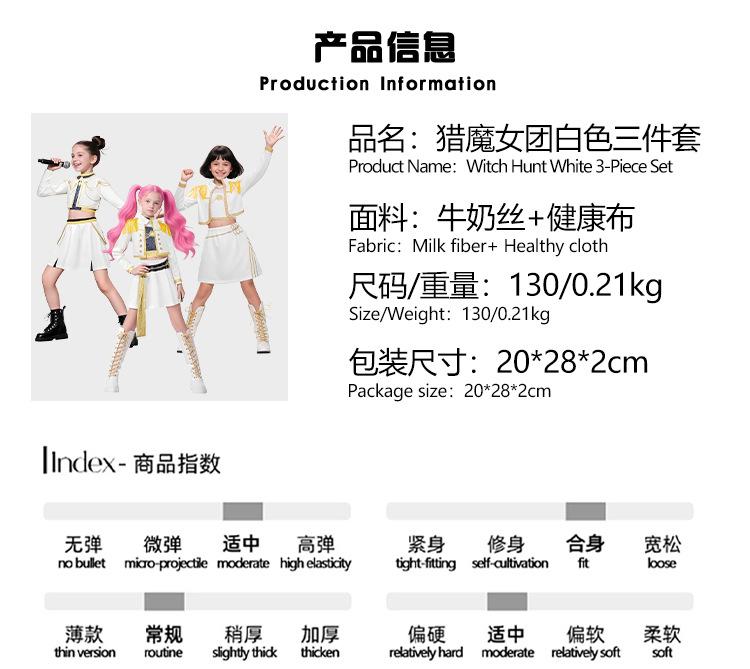 W3K-POP Traje de Cosplay de Grupo de Chicas Cazademonios Blanco Traje de Escenario Rumi Mila Zoe Halloween Disfraz de Actuación Escénica para Niños