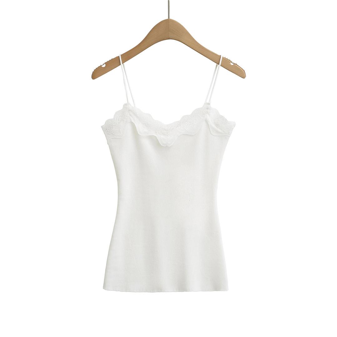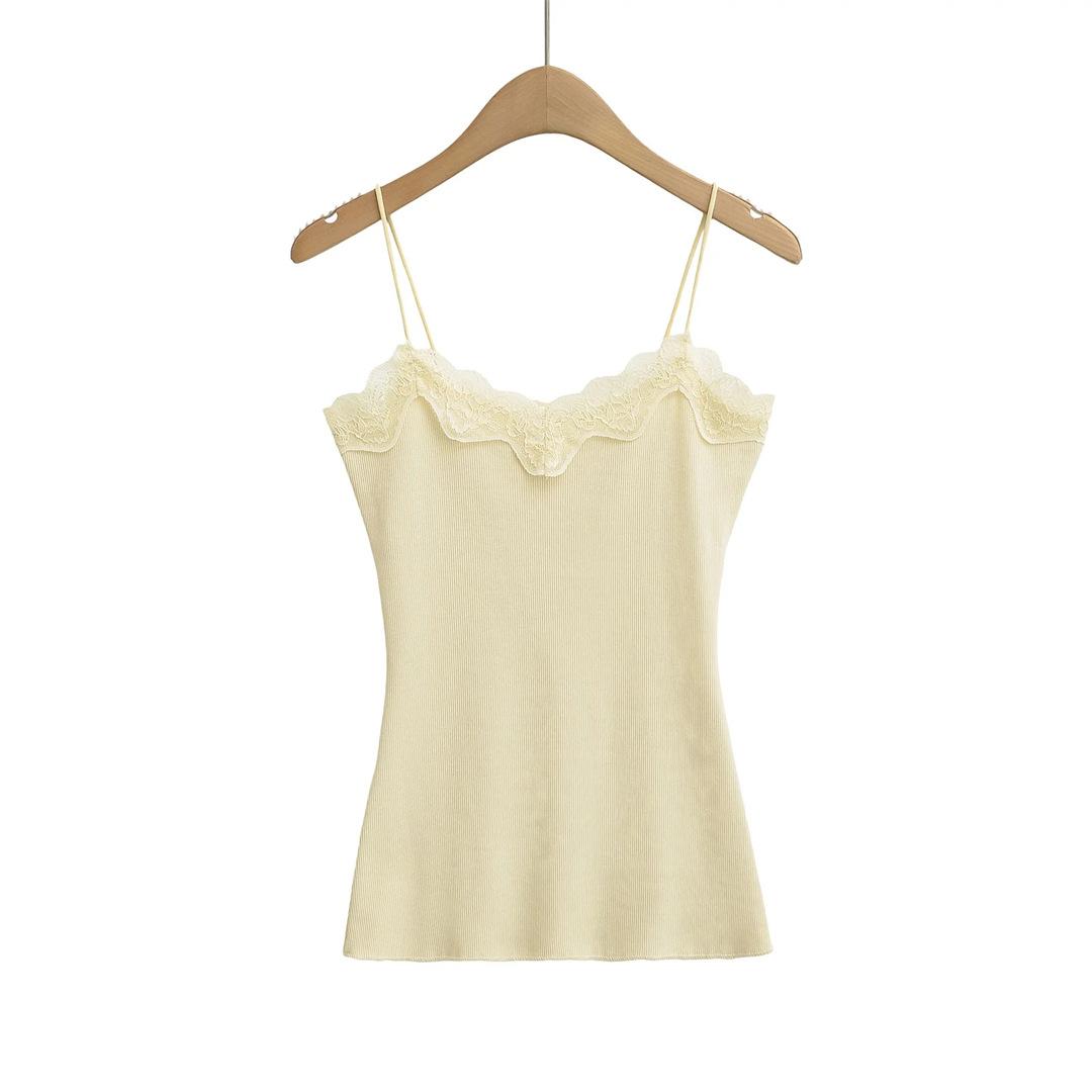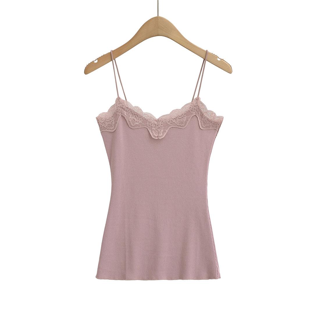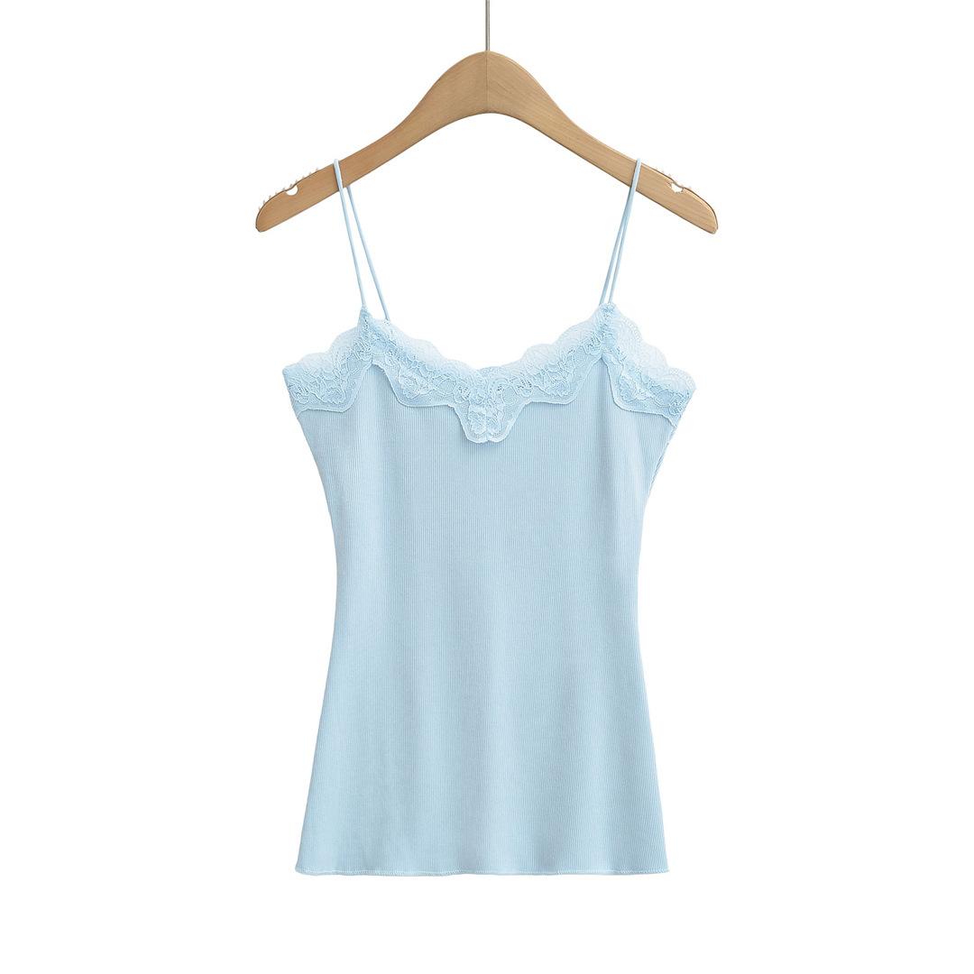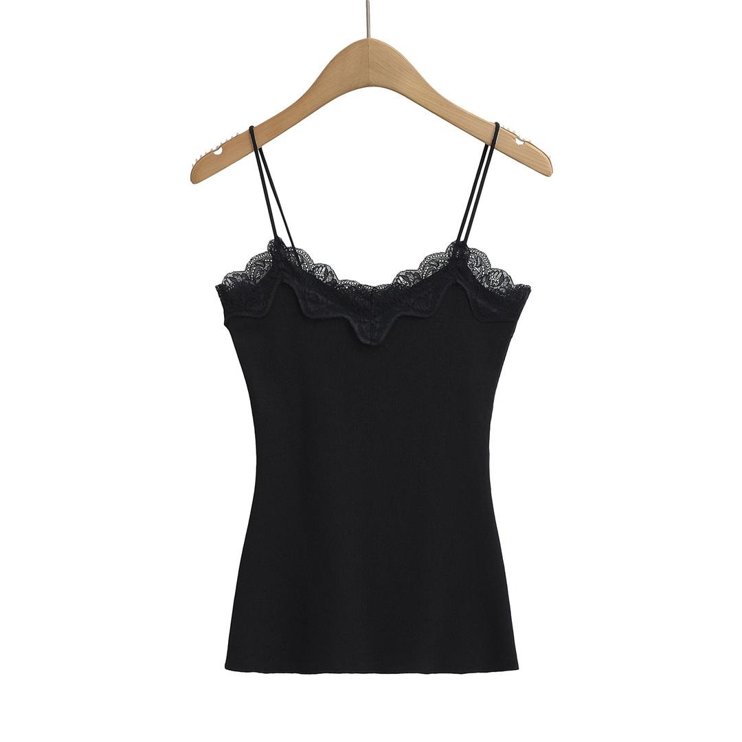 Camisola de Encaje Estilo Lujuria Pura para Mujer, Ajustada, Sexy, Color Puro, para Usar Debajo, Exterior, Top Corto