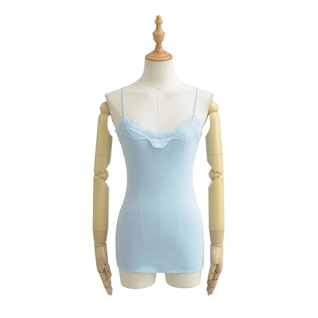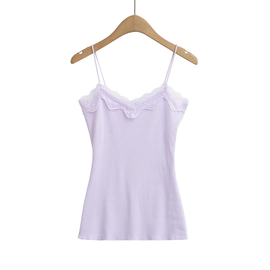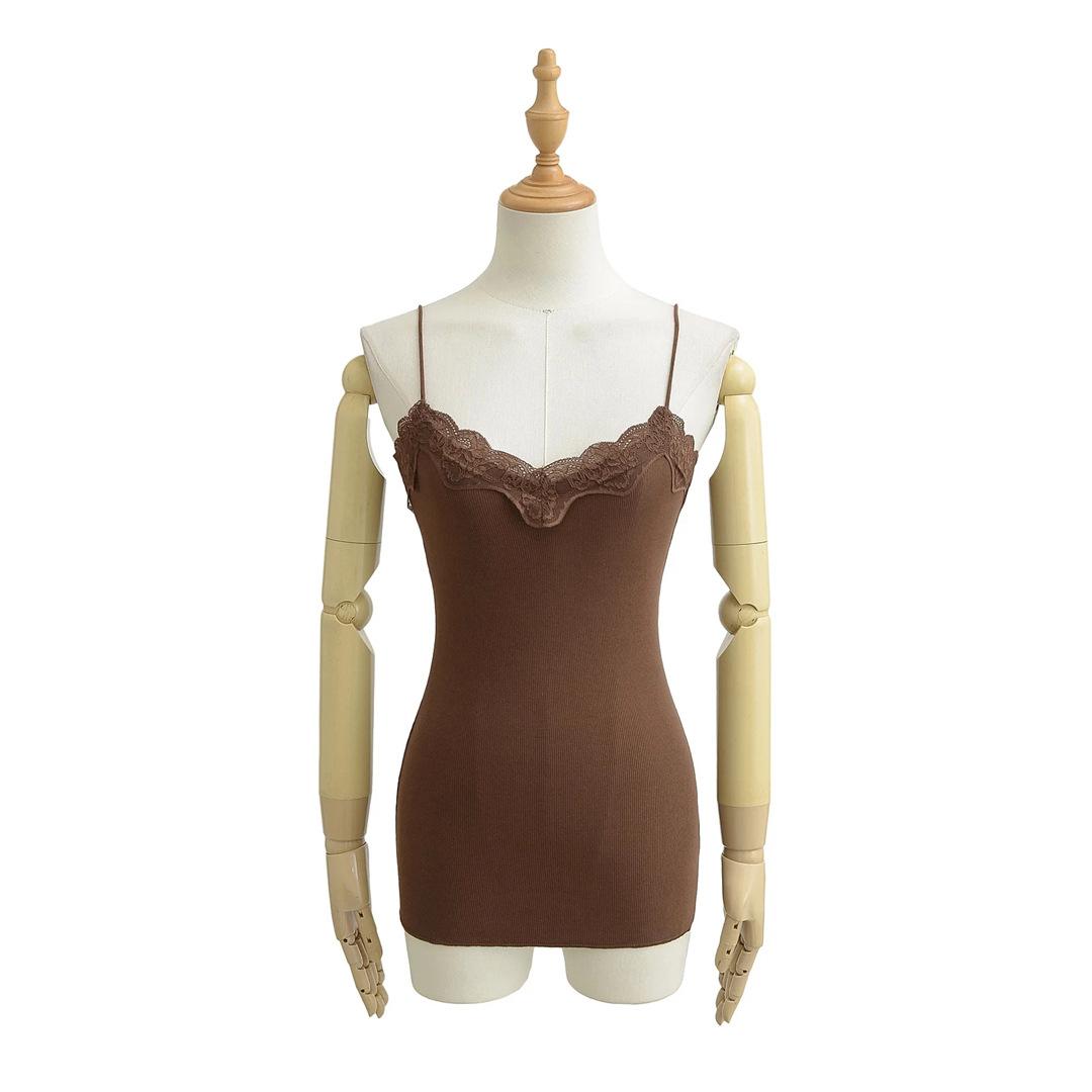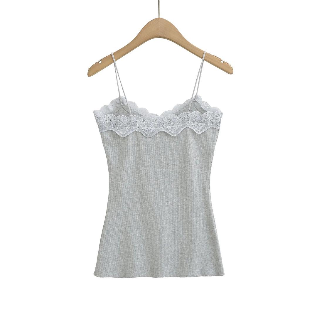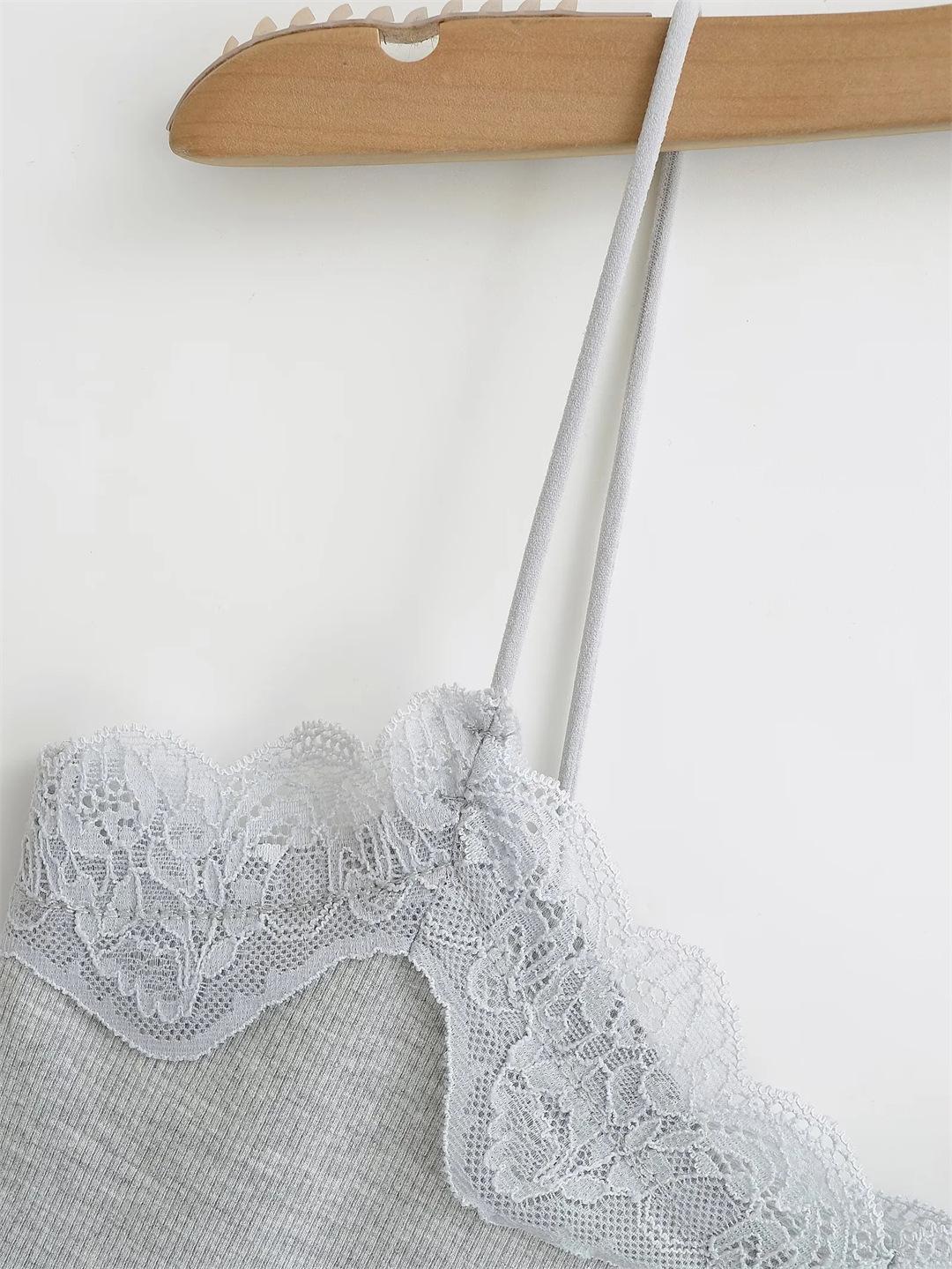 Camisola de Encaje Estilo Lujuria Pura para Mujer, Ajustada, Sexy, Color Puro, para Usar Debajo, Exterior, Top Corto