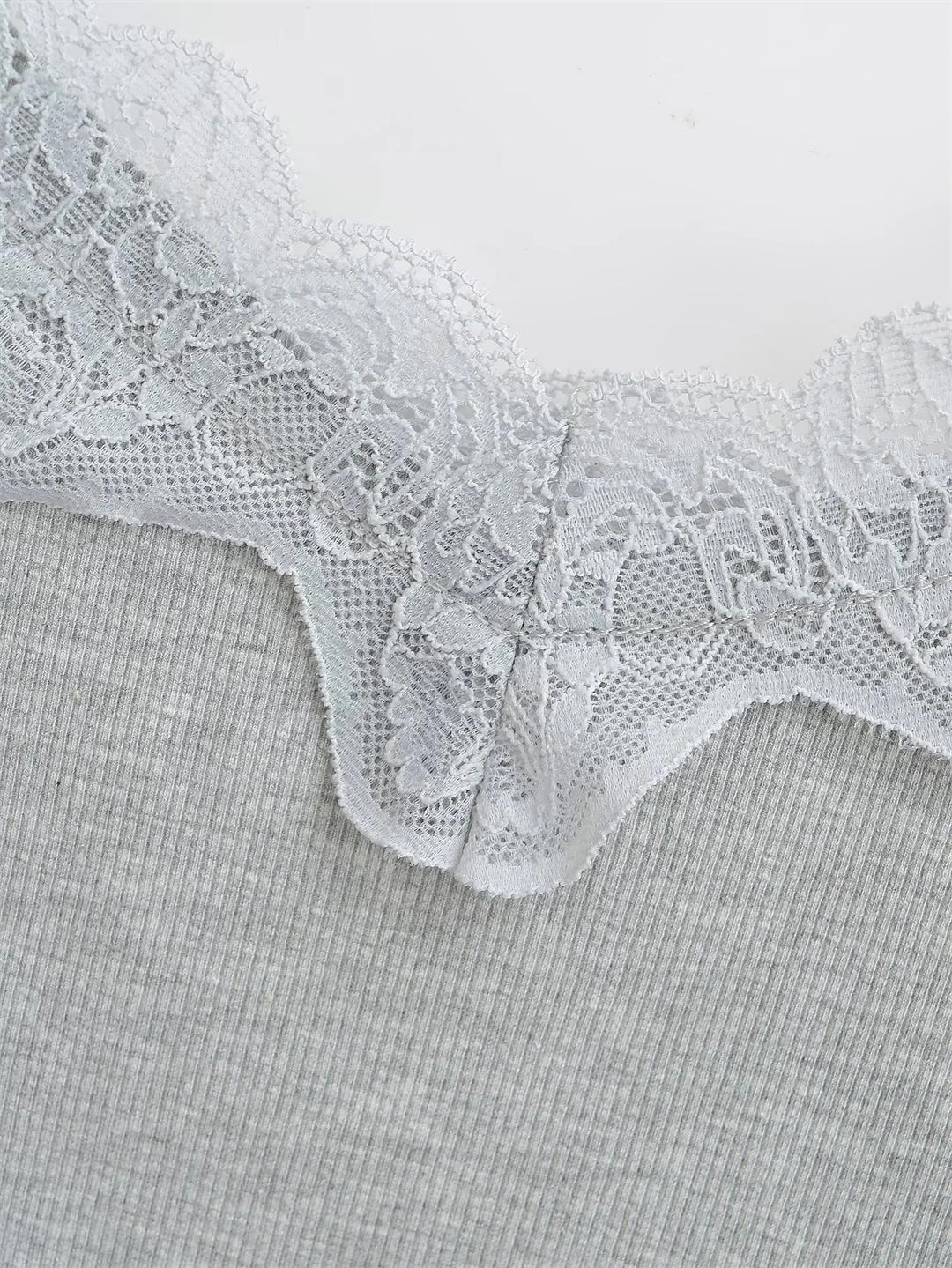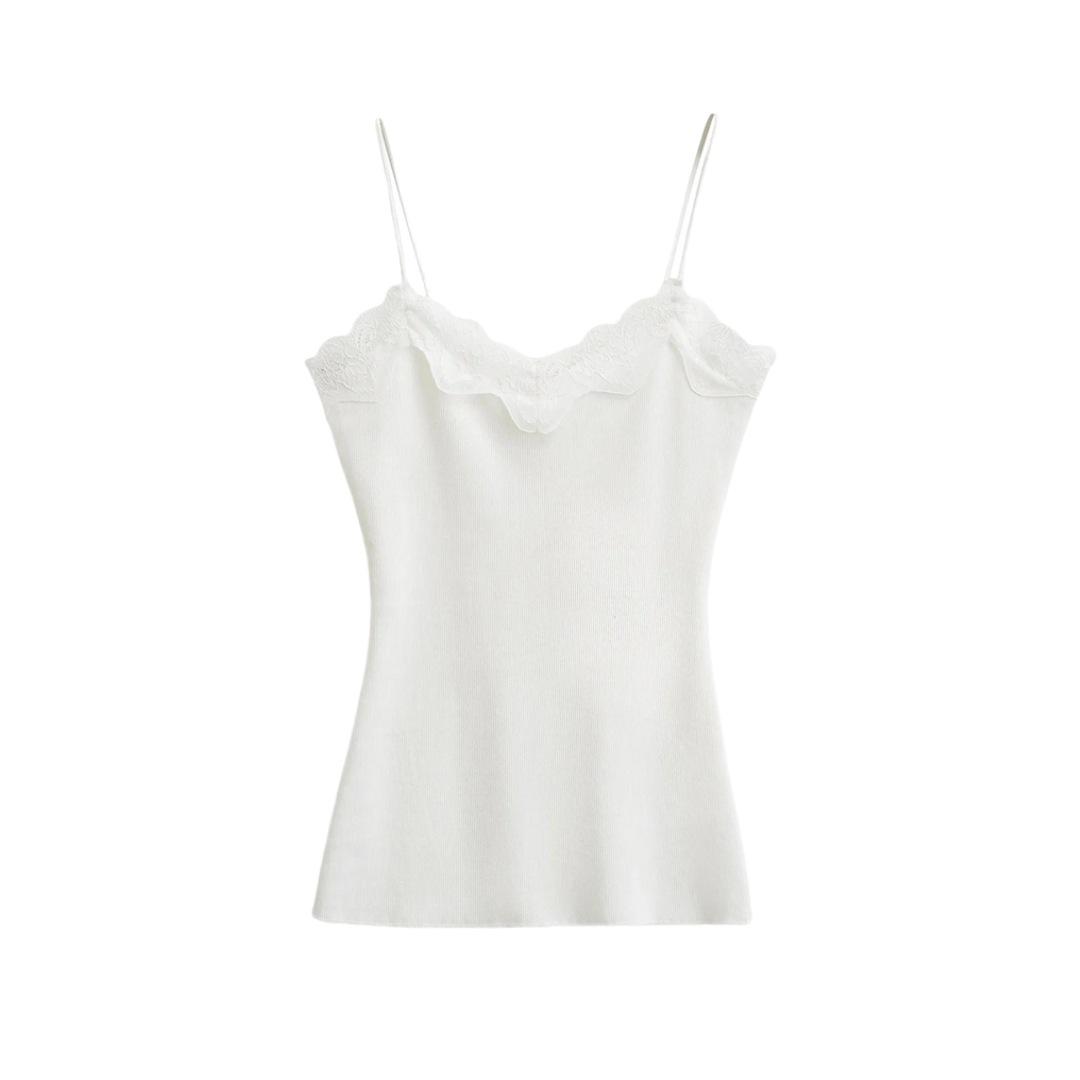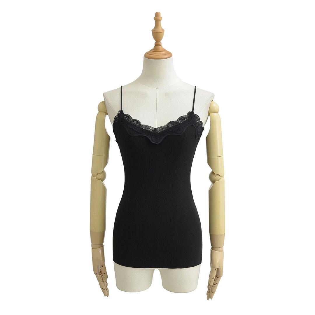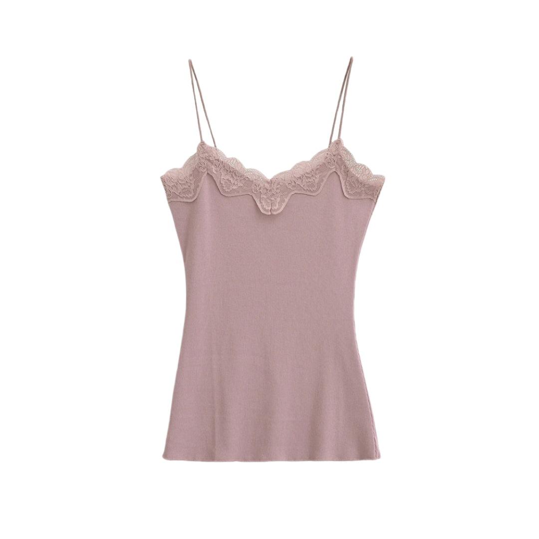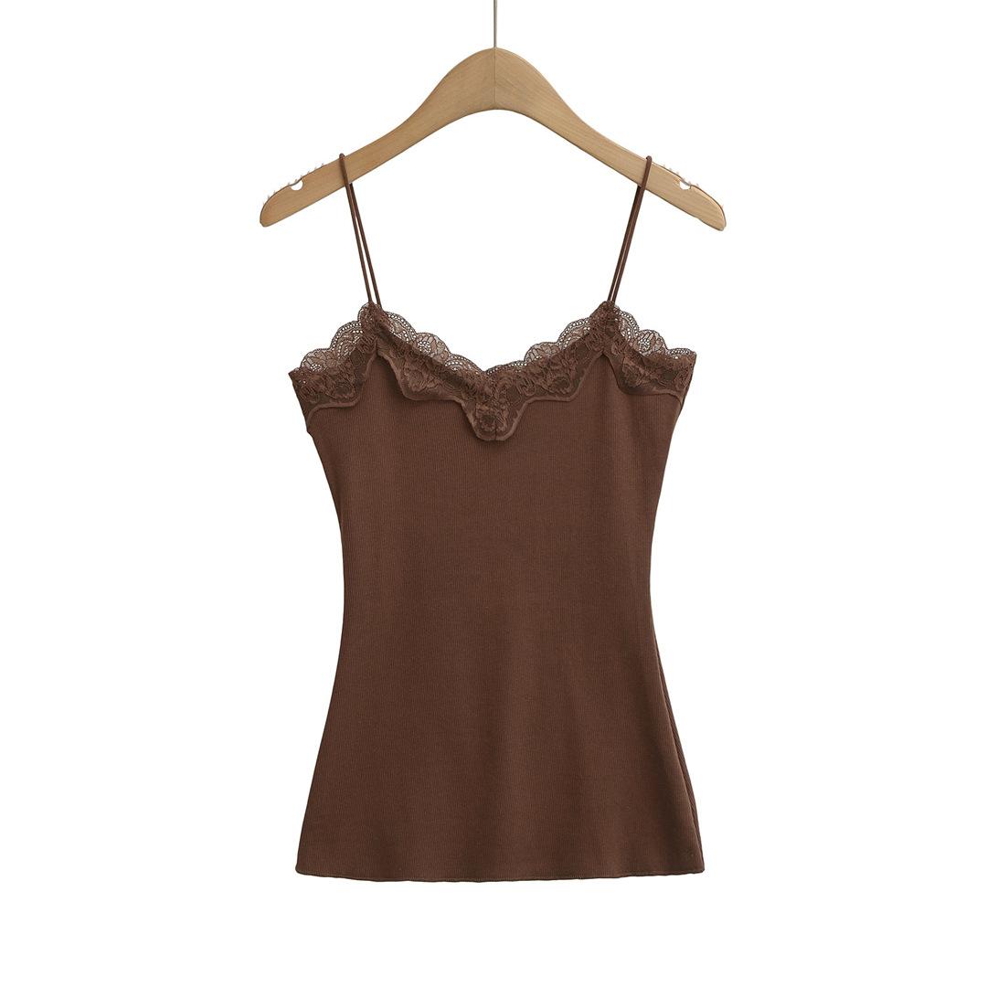Camisola de Encaje Estilo Lujuria Pura para Mujer, Ajustada, Sexy, Color Puro, para Usar Debajo, Exterior, Top Corto